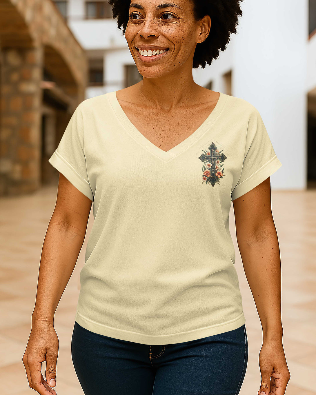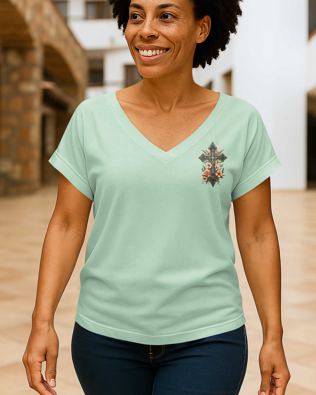 A Praying Mom is a Powerful Force V-neck Dolman Sleeves Shirt