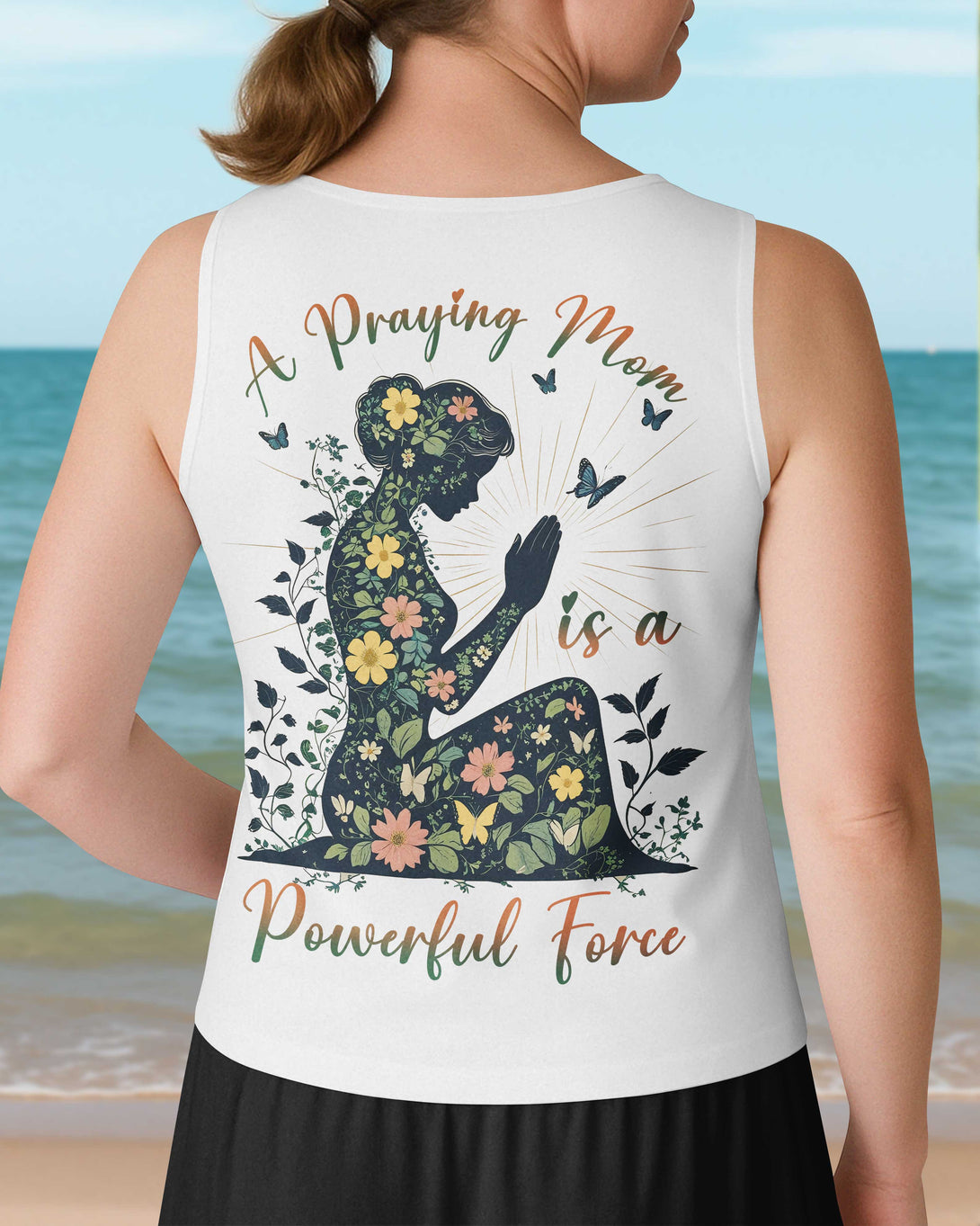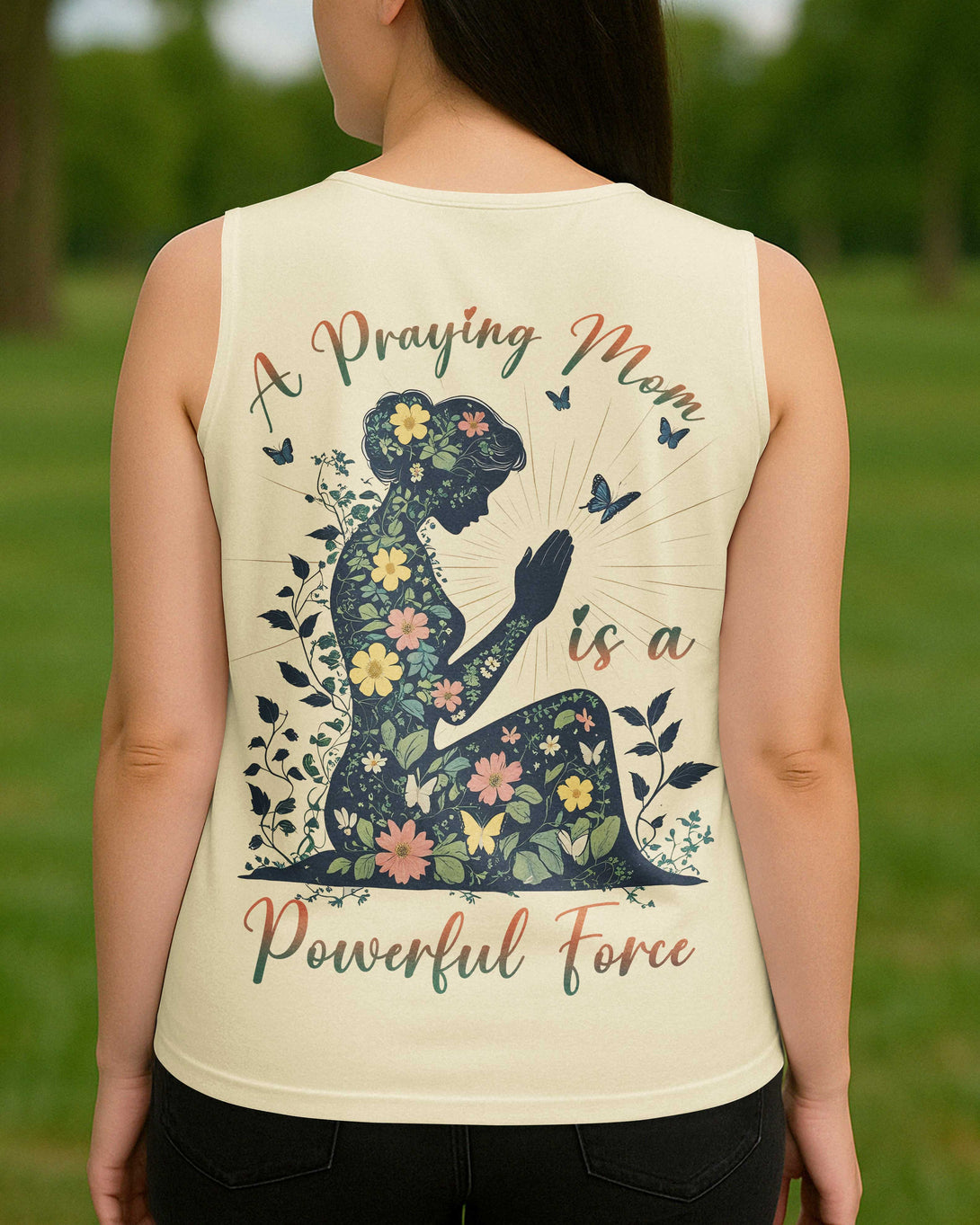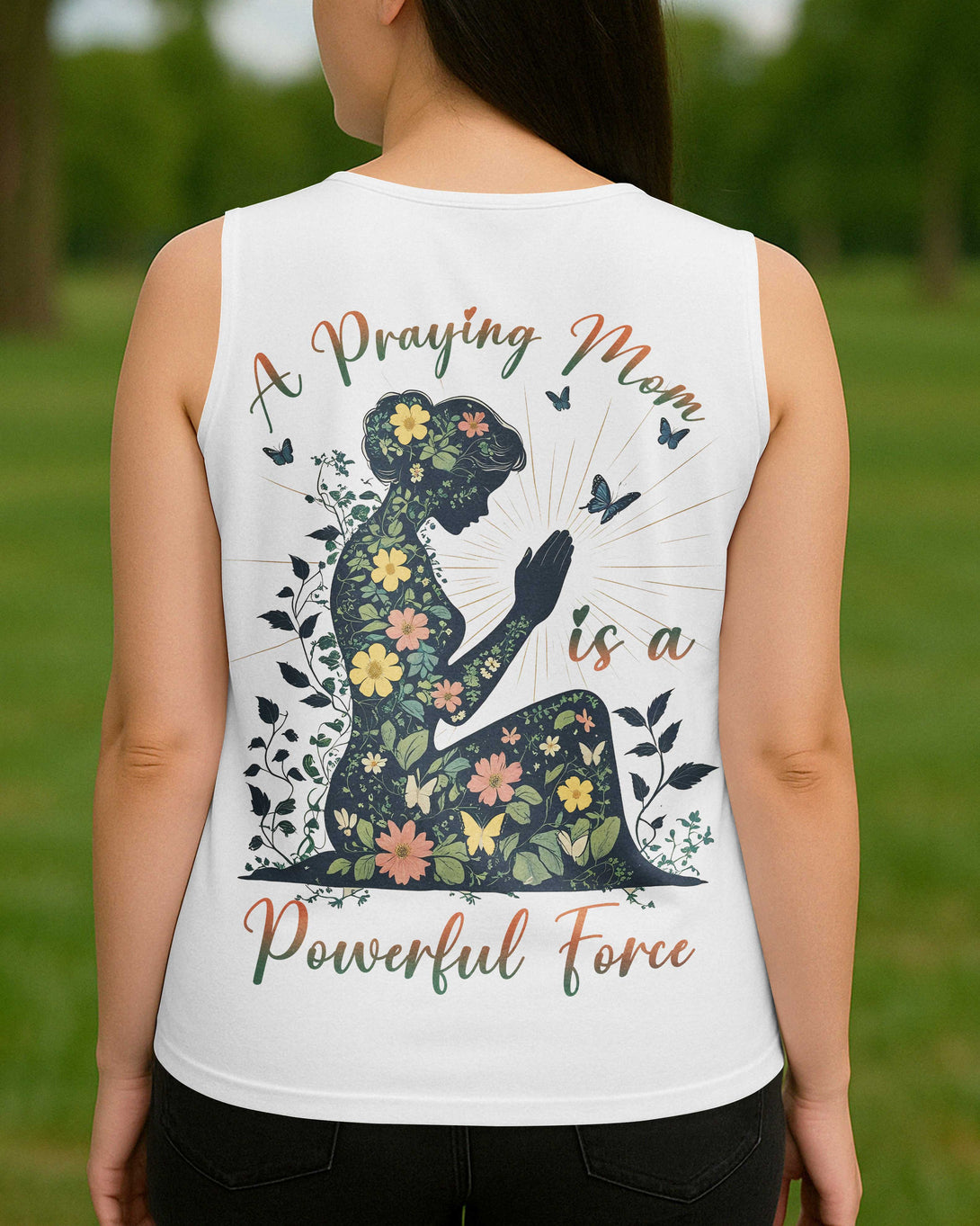 A Praying Mom is a Powerful Force V-neck Tank Top