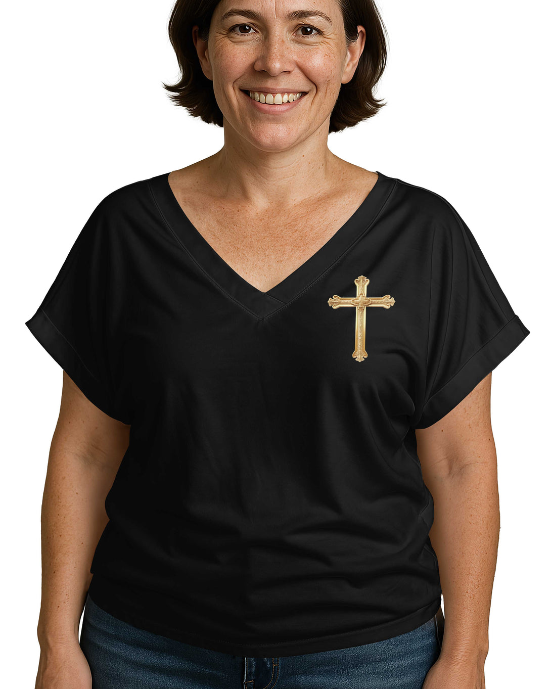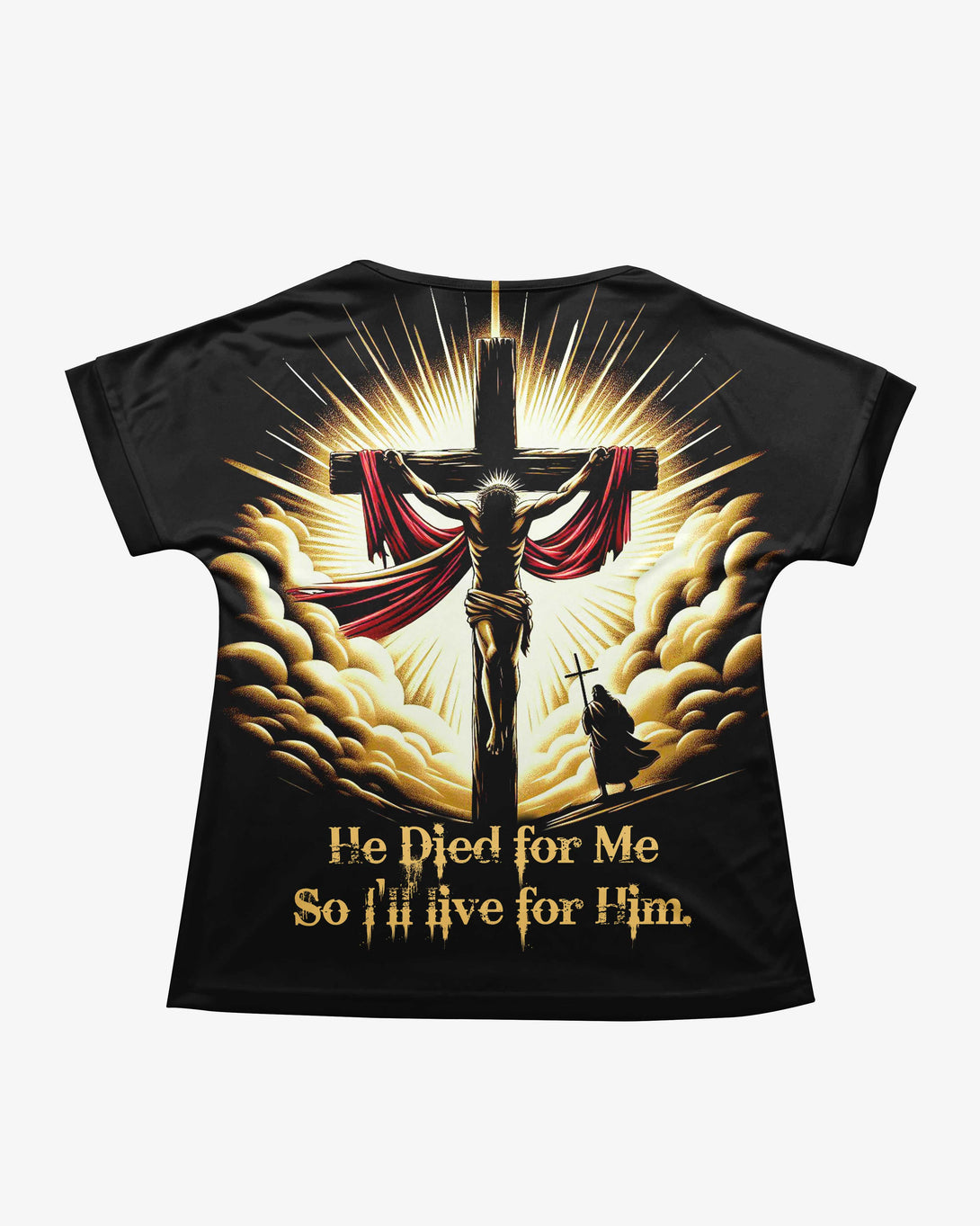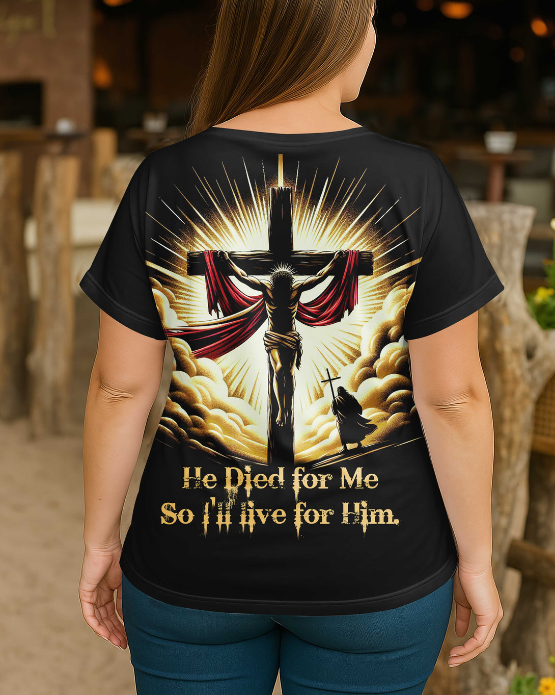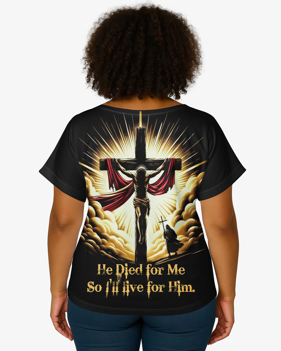 As He Lived For Me So I'll Live For Him All Over Print V-neck Dolman Sleeves Shirt