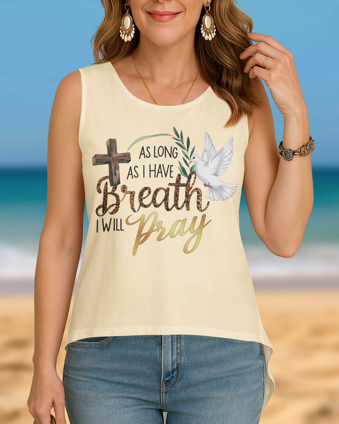 As Long As I Have Breath I Will Pray Cut Out Wrap Back Tank Top
