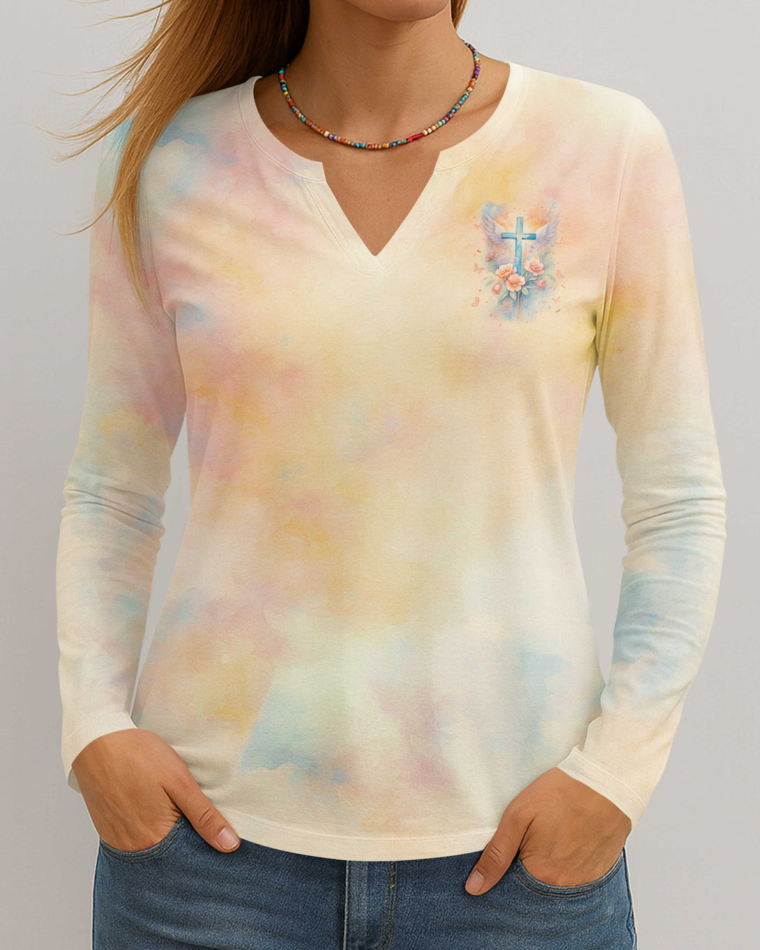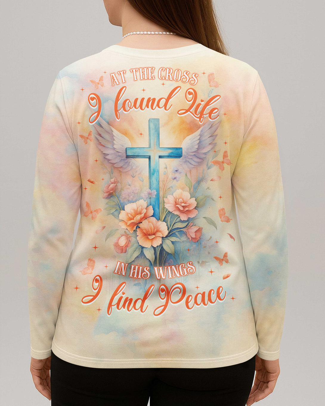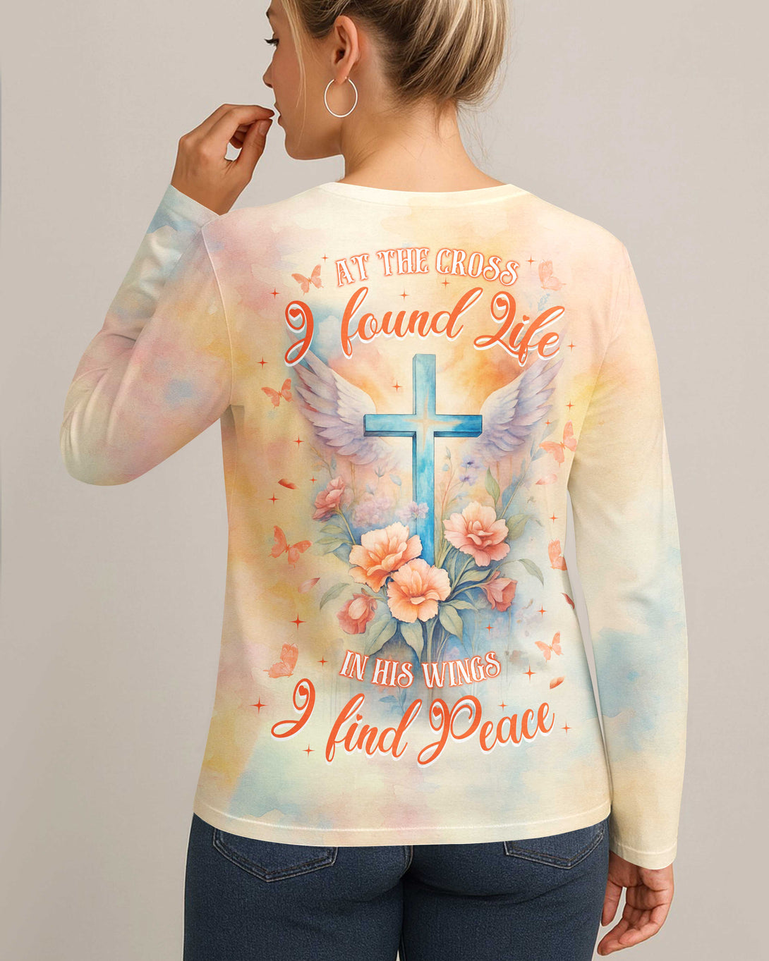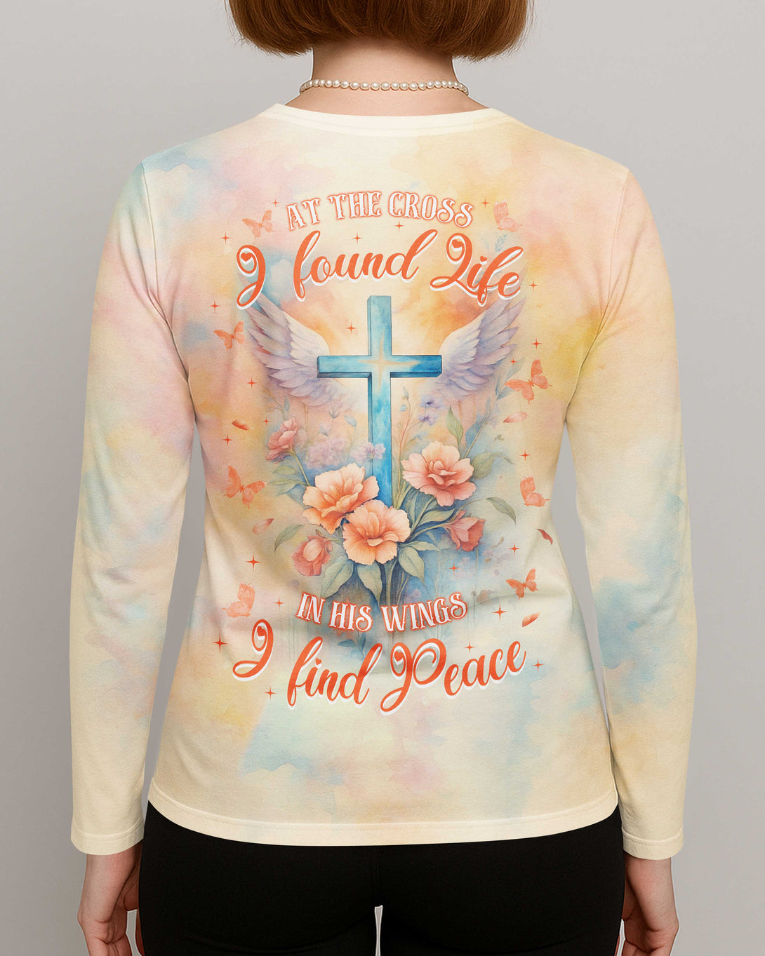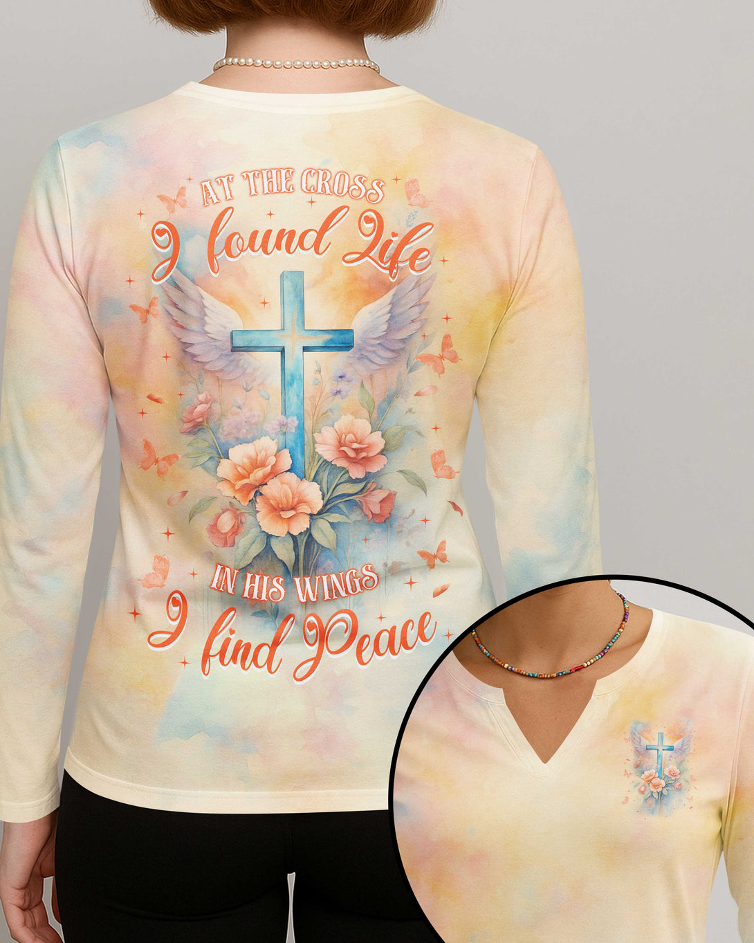 At The Cross I Found Life In His Wings I Find Peace V-neck Long Sleeves Shirt