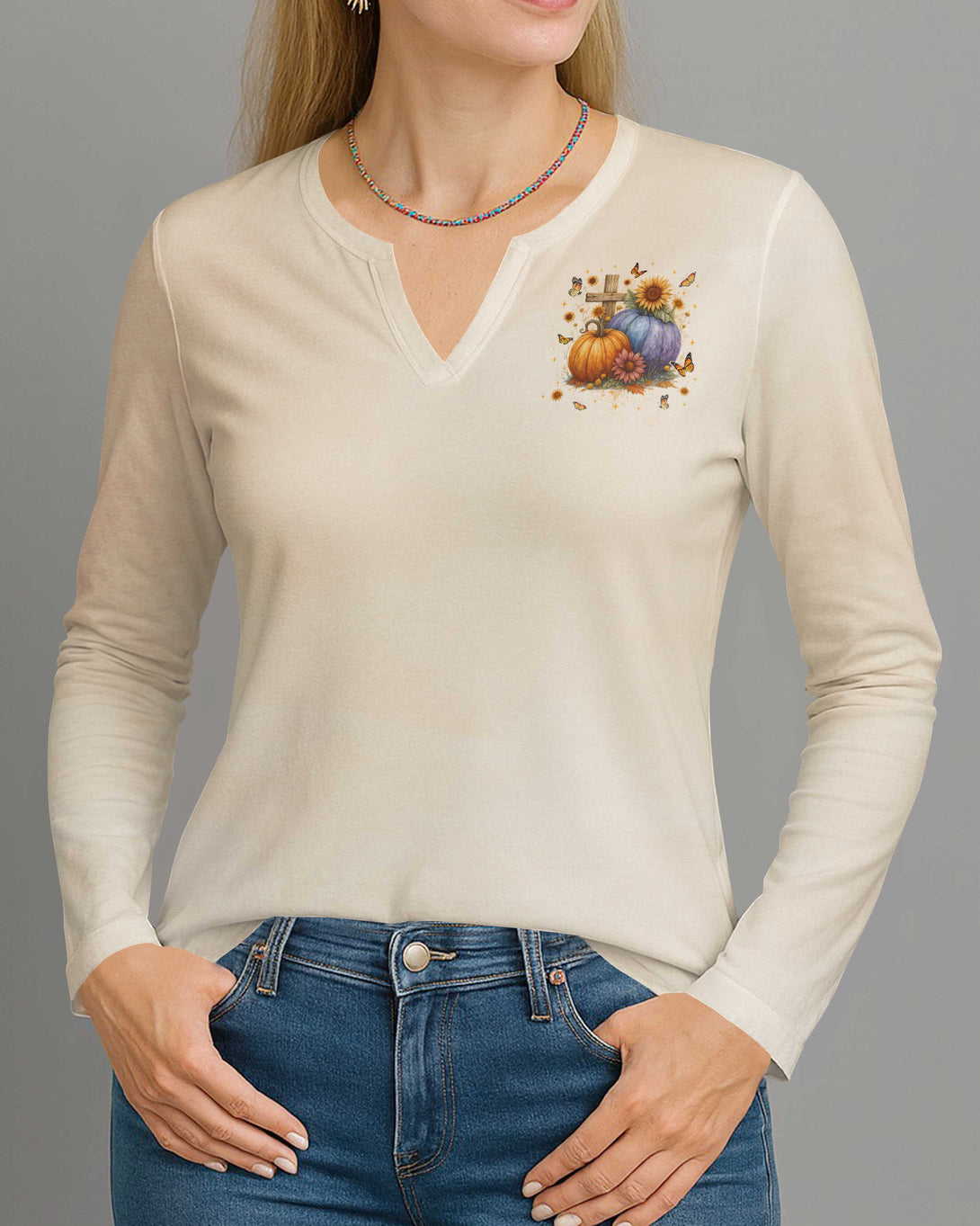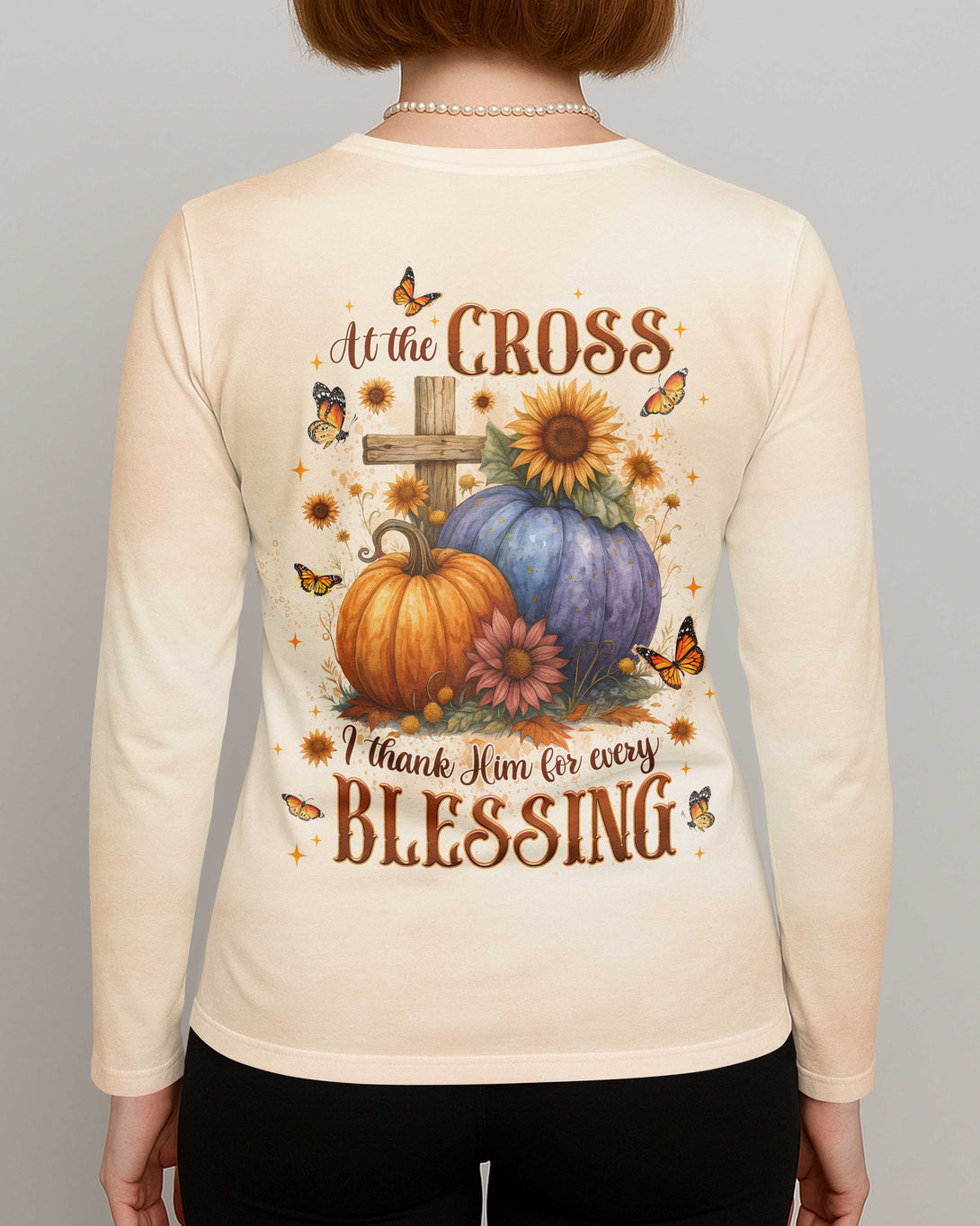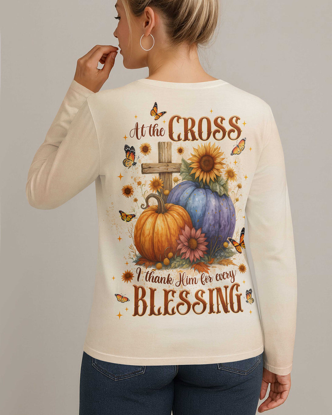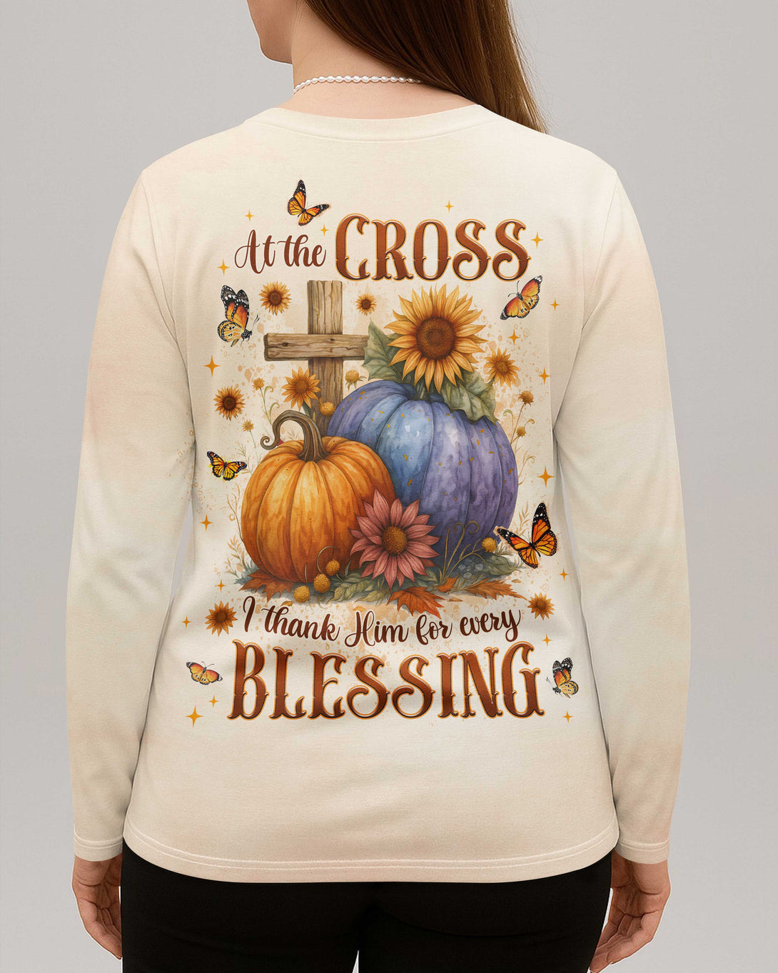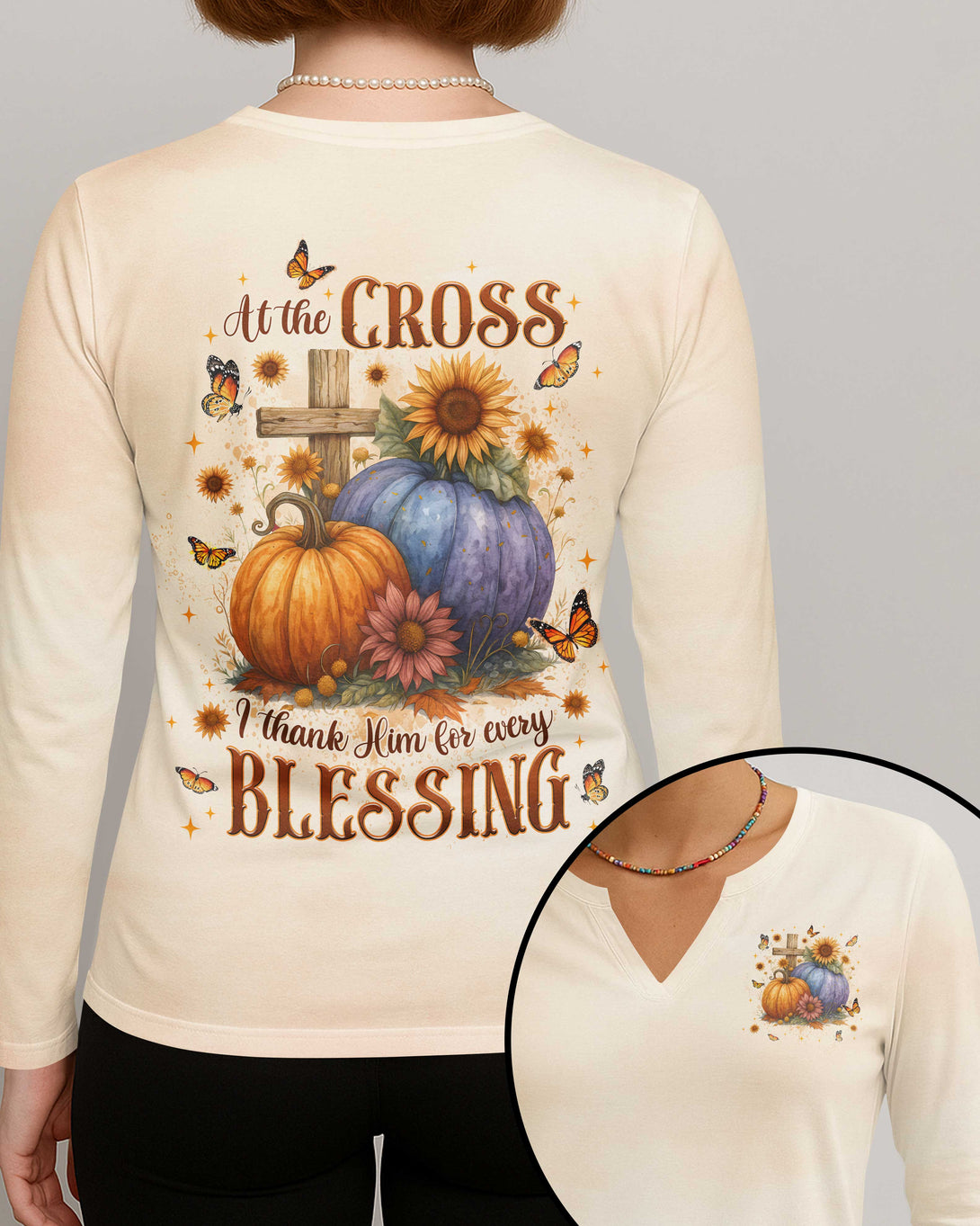 At The Cross I Thank Him For Every Blessing V-neck Long Sleeves Shirt