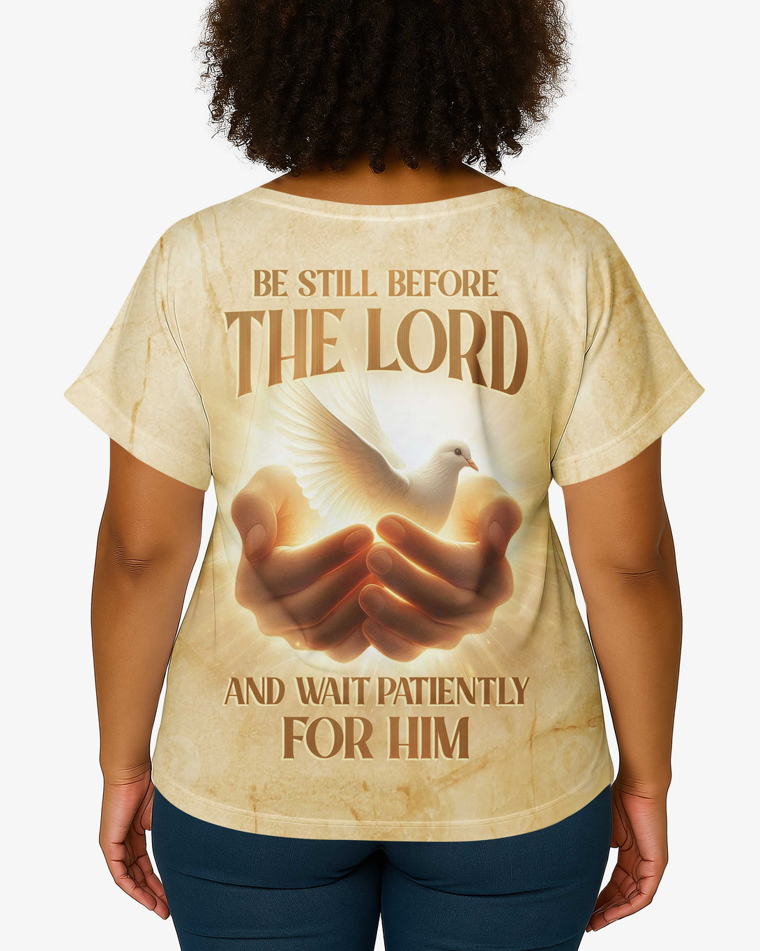 Be Still Before The Lord All Over Print V-neck Dolman Sleeves Shirt
