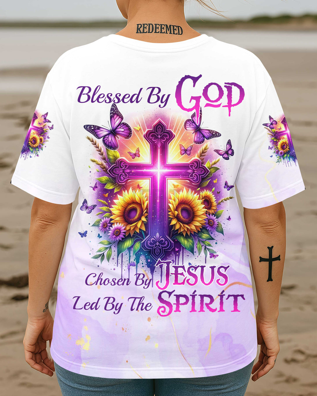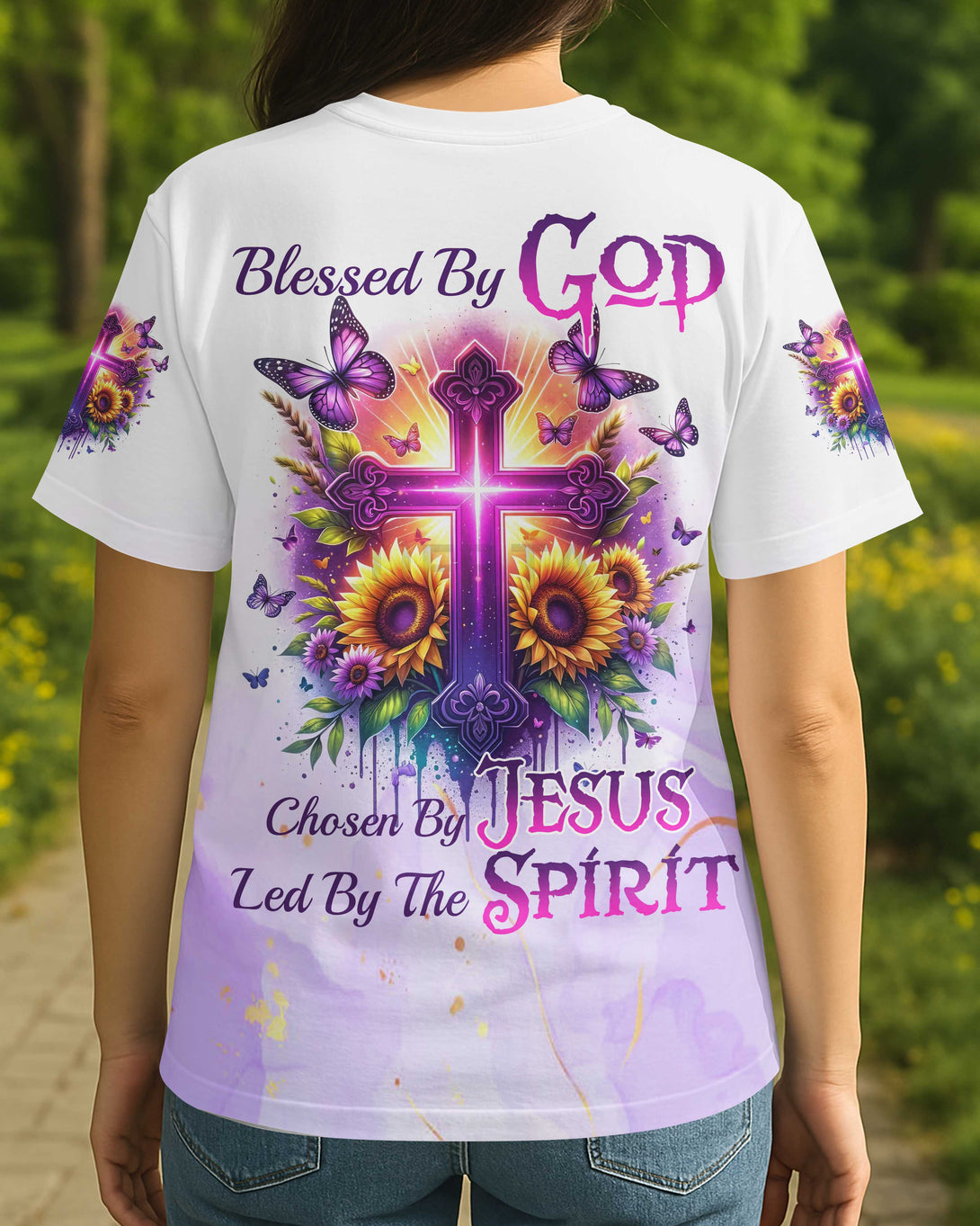 Blessed By God Chosen By Jesus Led By The Spirit All Over Print T-Shirt