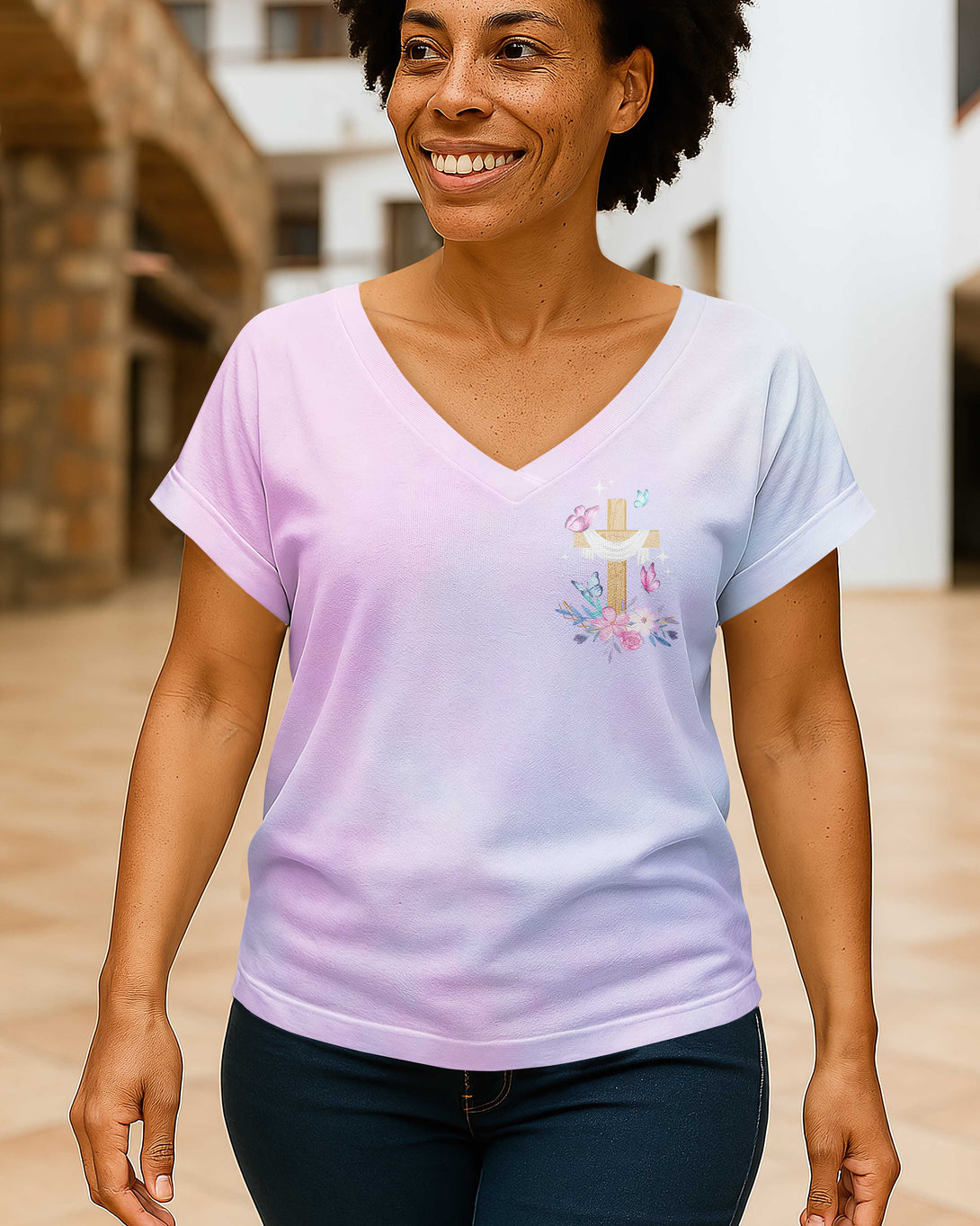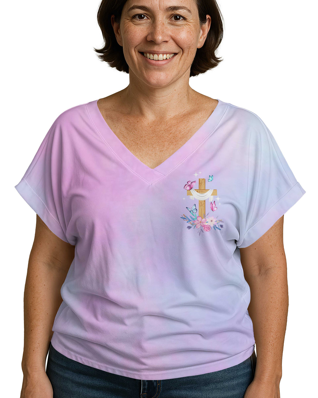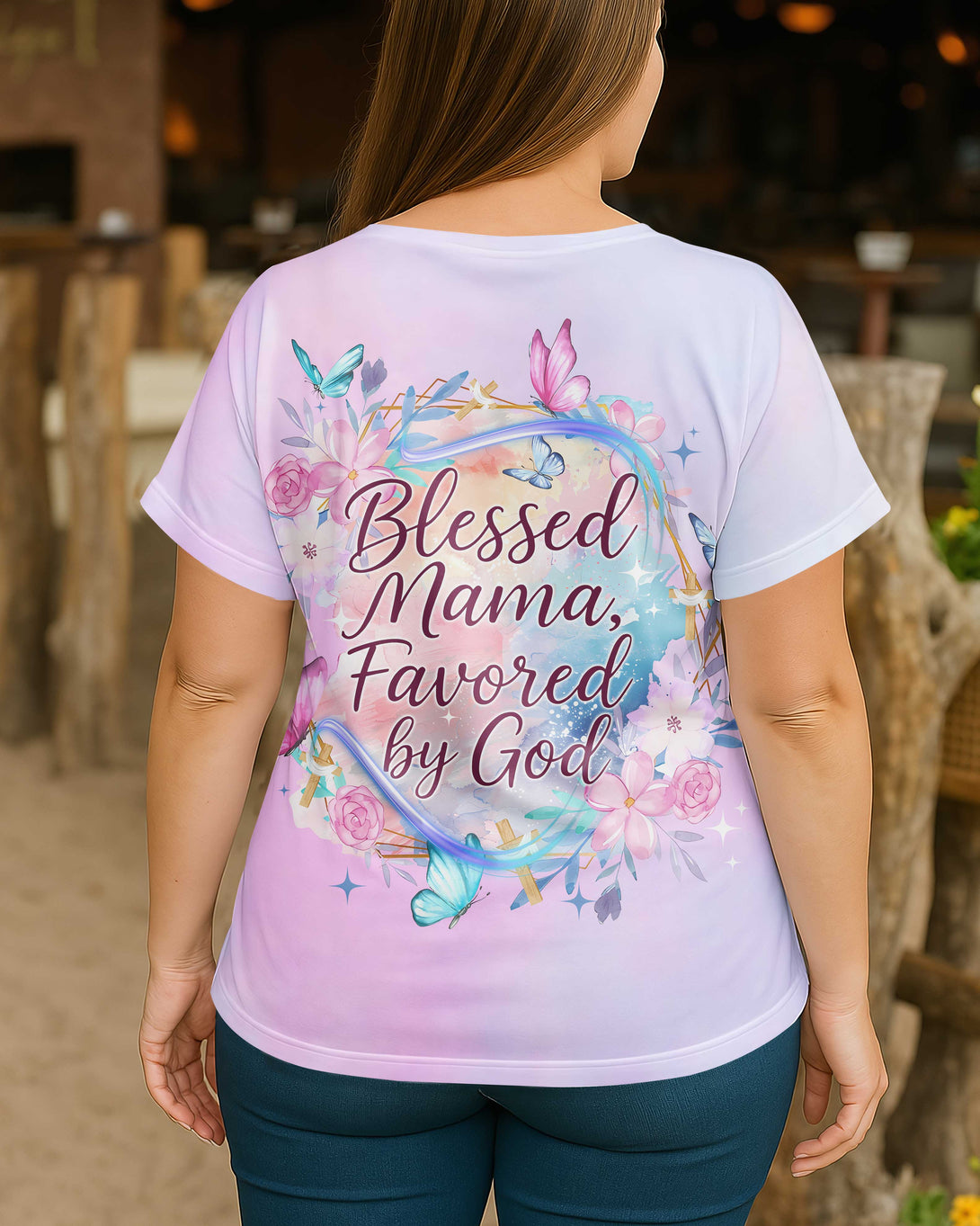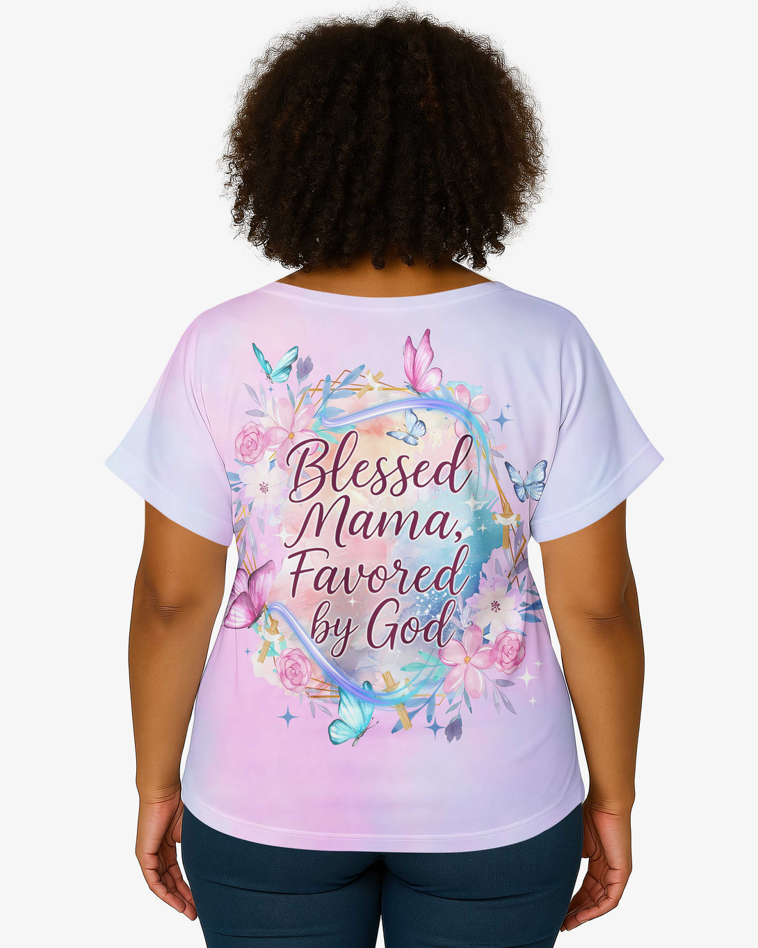 Blessed Mama, Favored by God All Over Print V-Neck Dolman Sleeves Shirt