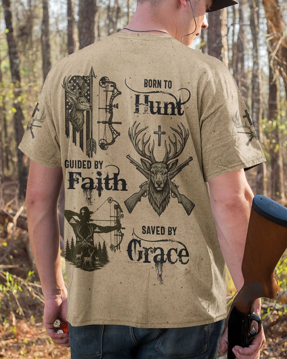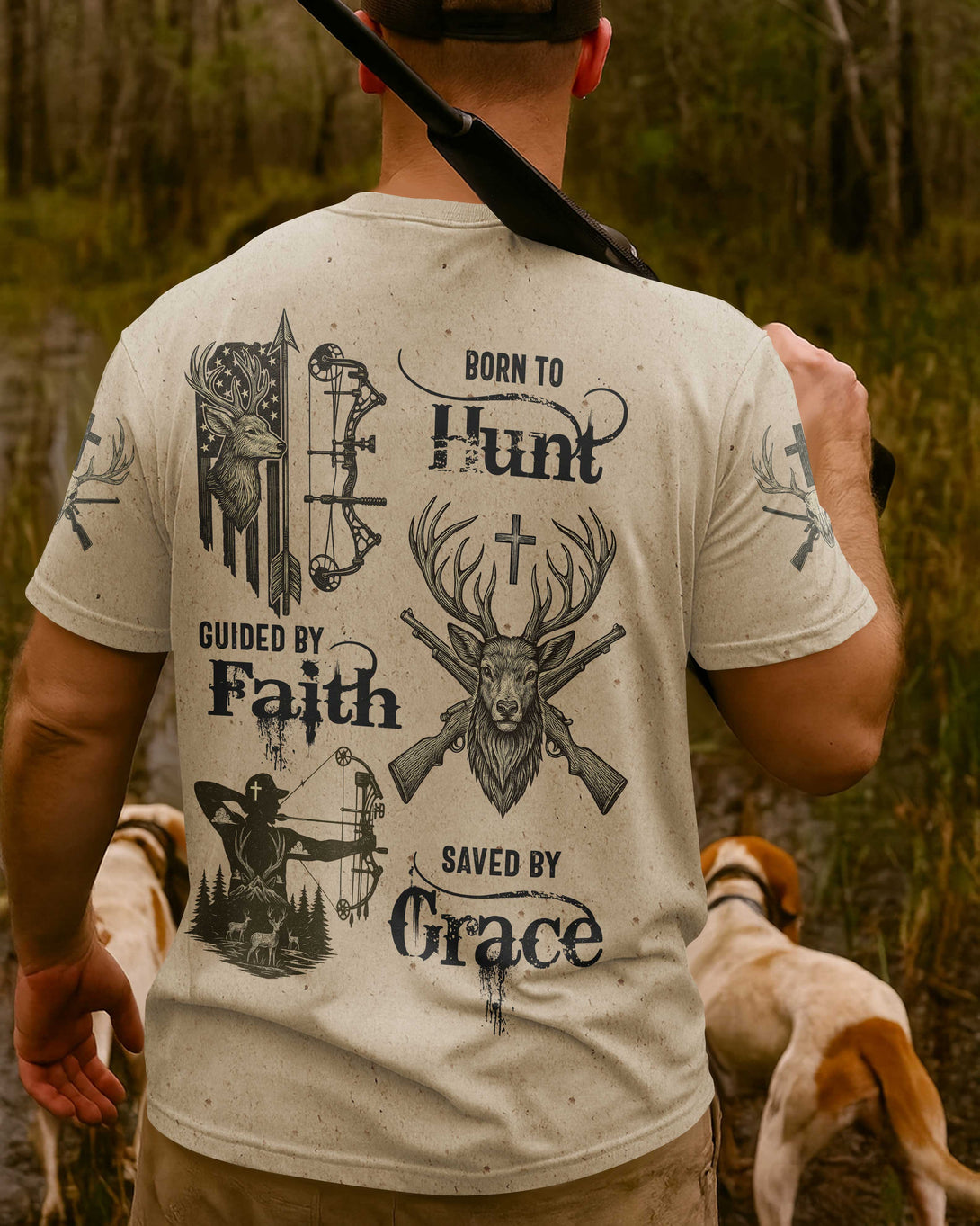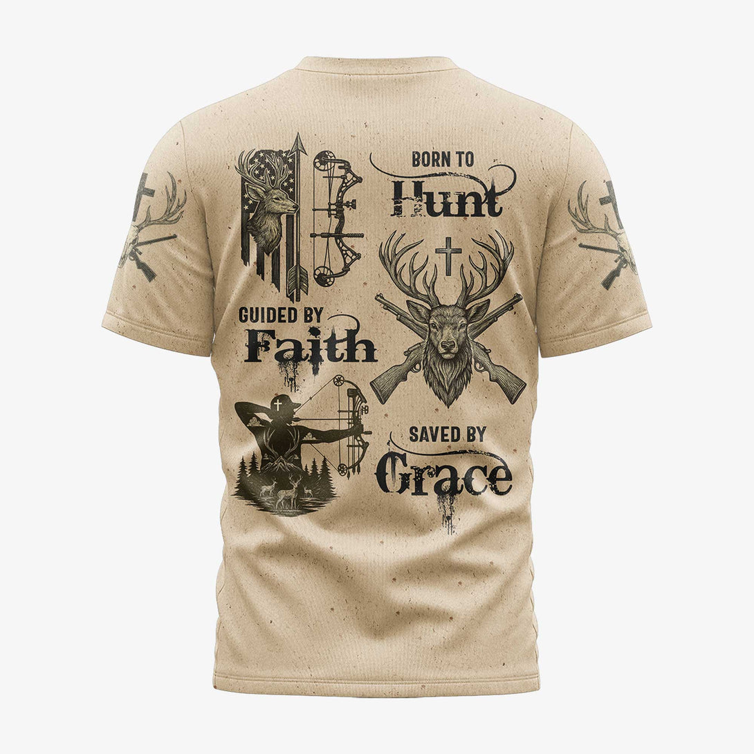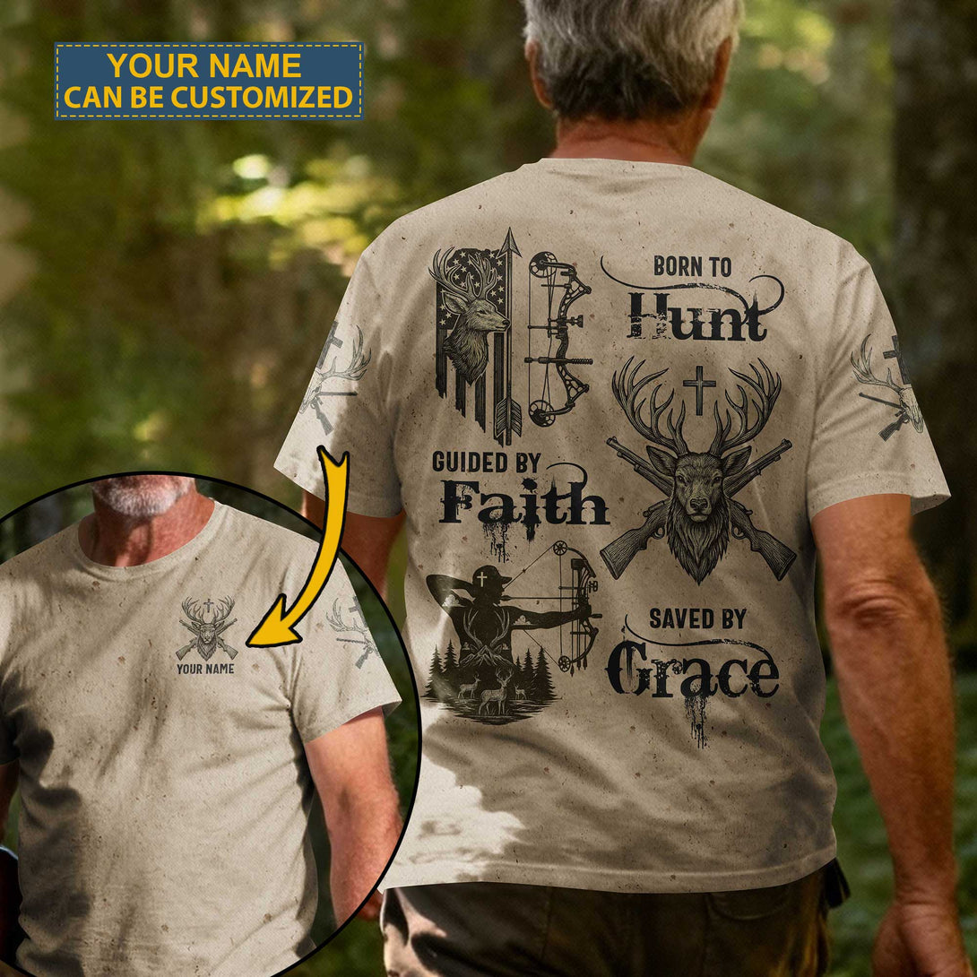 Born To Hunt Guided By Faith Saved By Grace Custom Name T-Shirt
