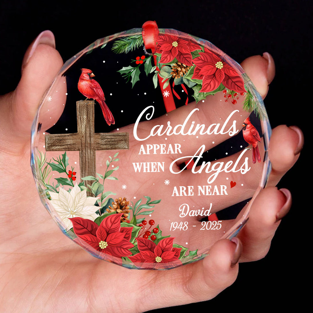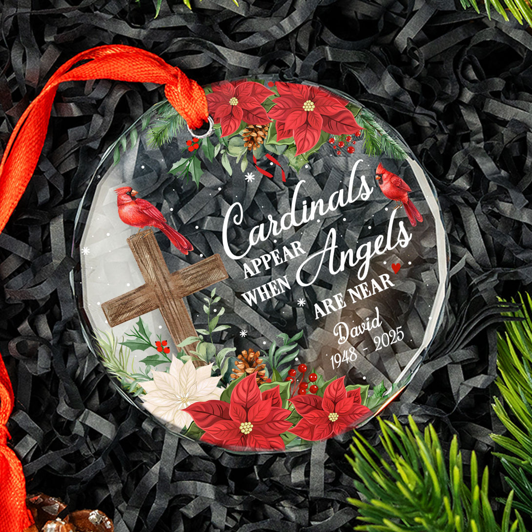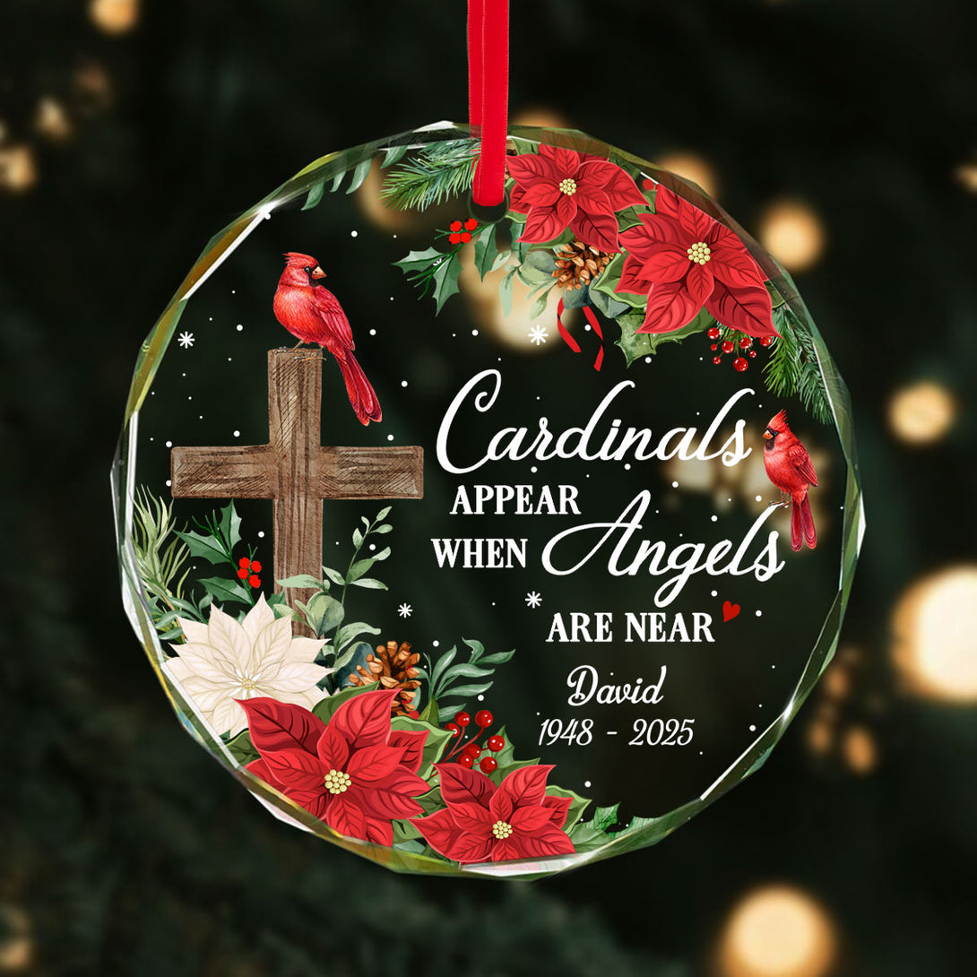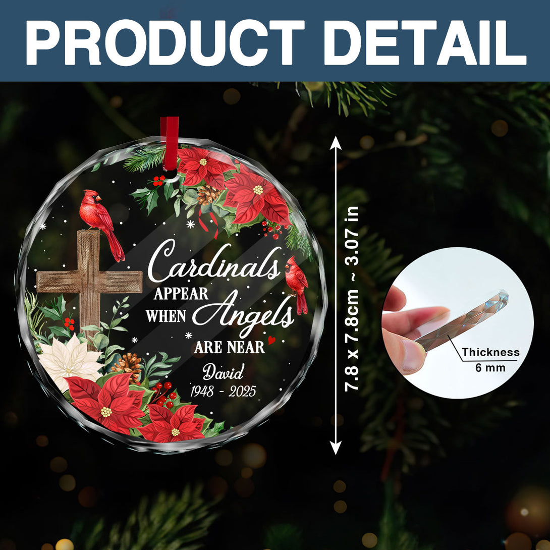 Cardinals Appear When Angels Are Near Personalized Glass Ornament, Custom Name and Year