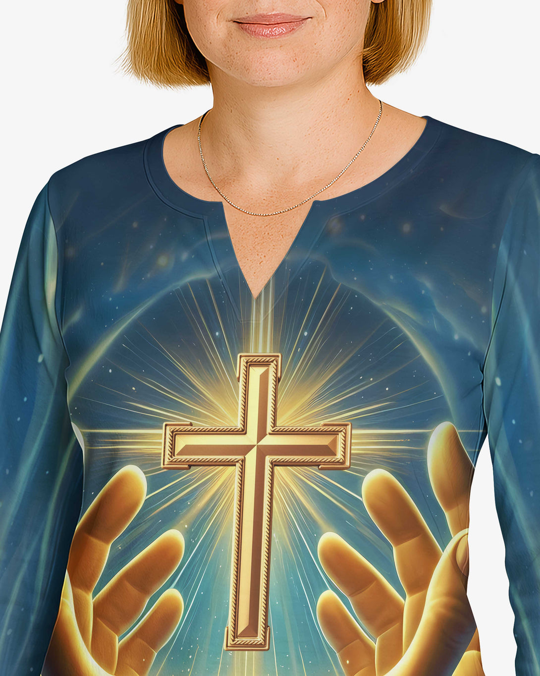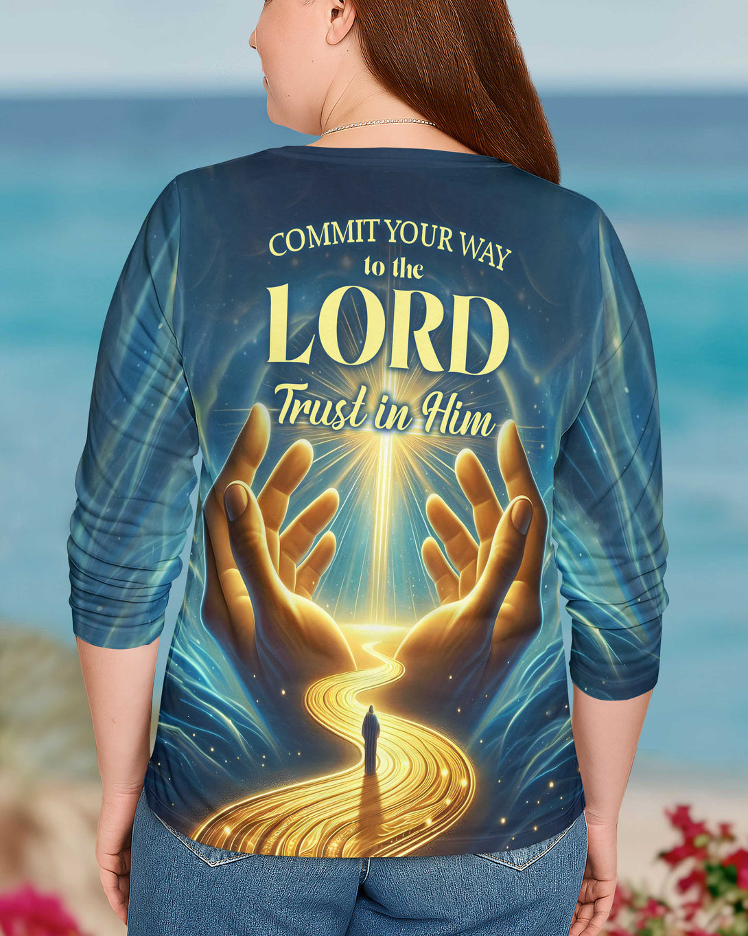 Commit Your Way To The Lord Trust In Him All Over Print V-neck Long Sleeves Shirt