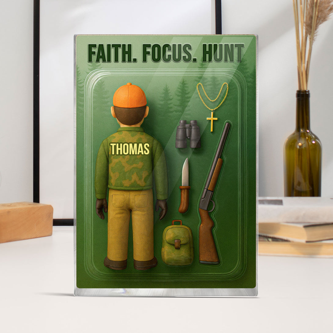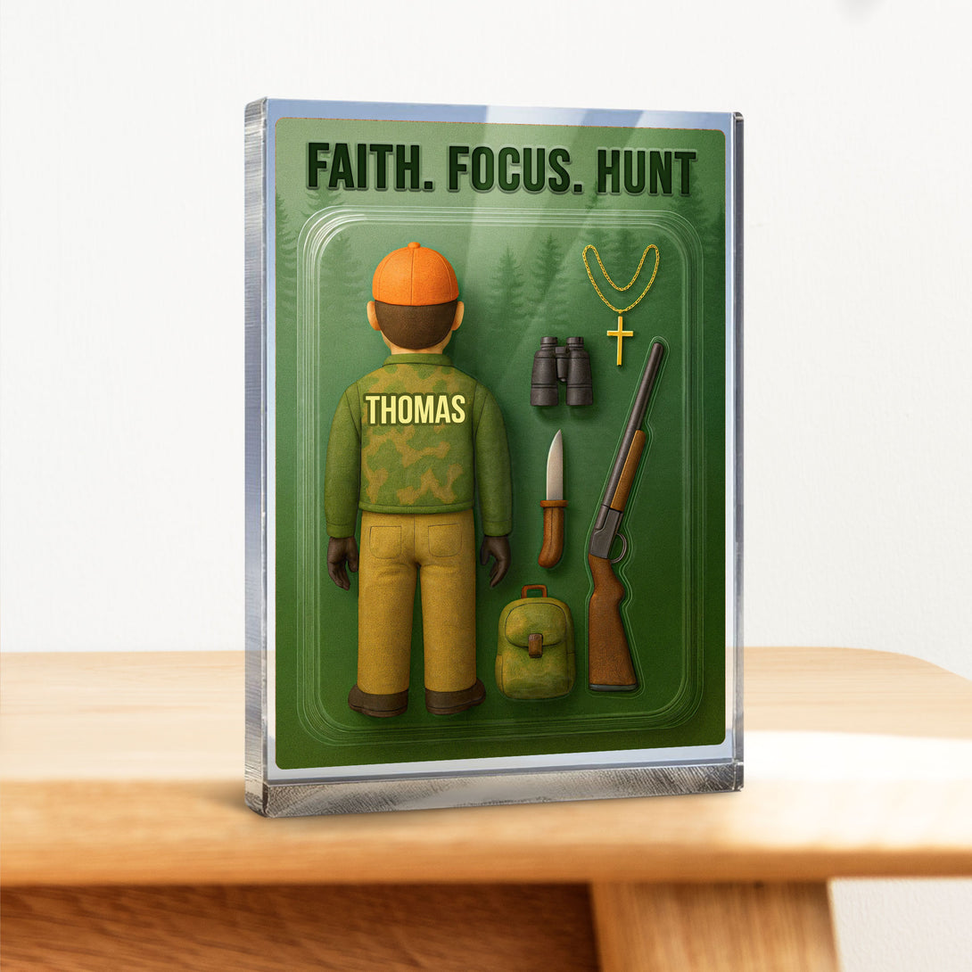 Faith Focus Hunt Personalized Acrylic Block, Custom Name Hunting Gift