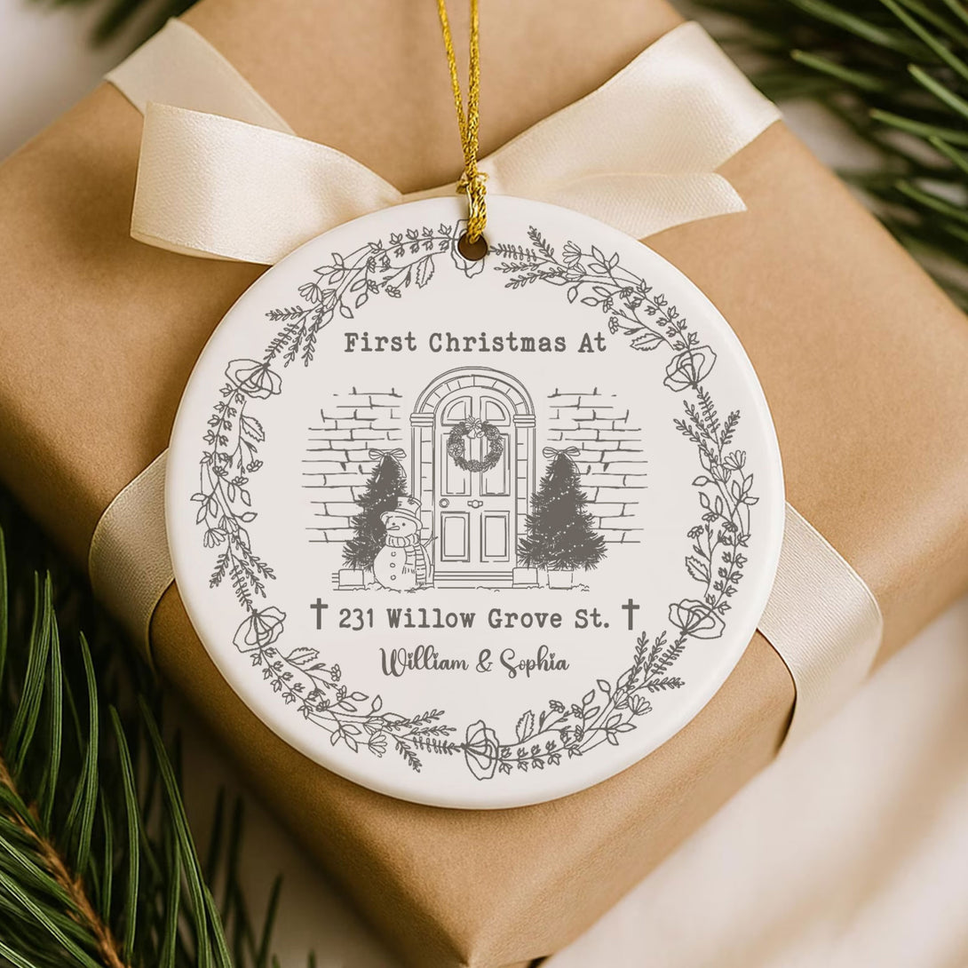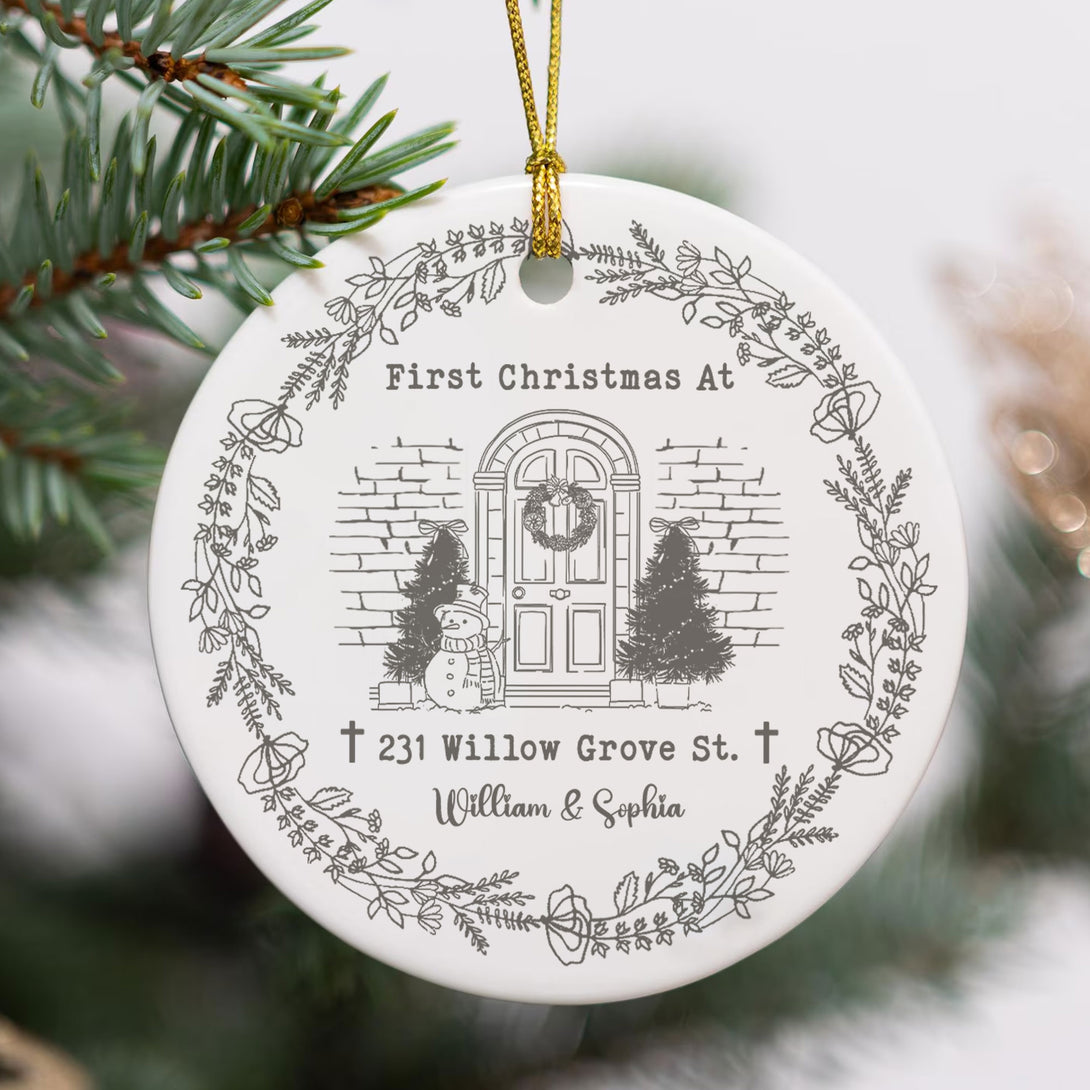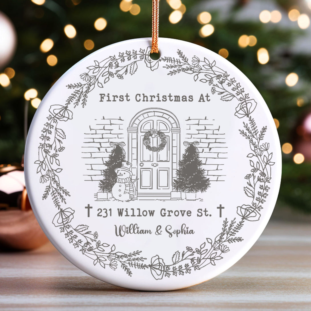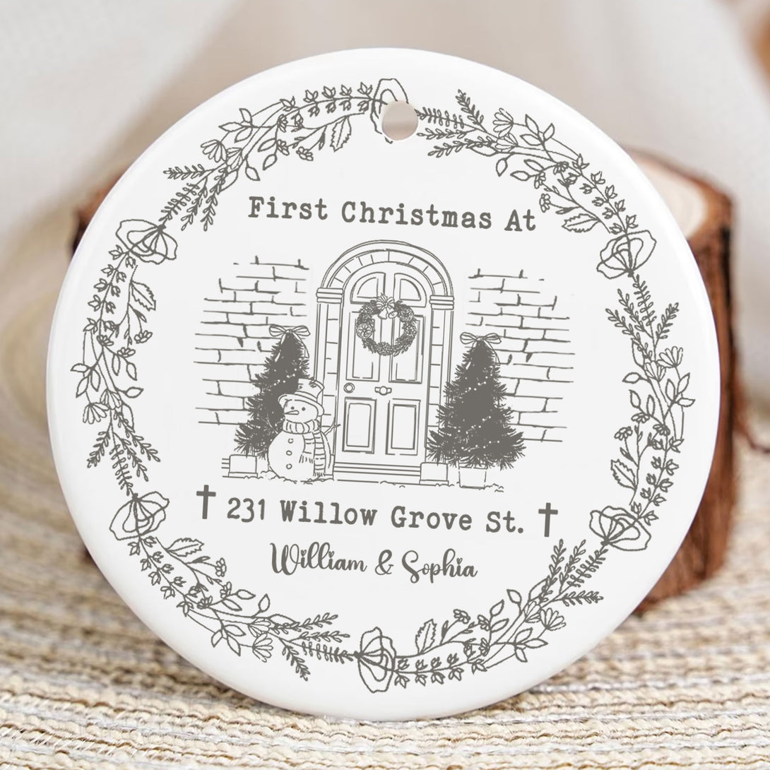 First Christmas At This House Personalized Ceramic Ornament, Custom Name