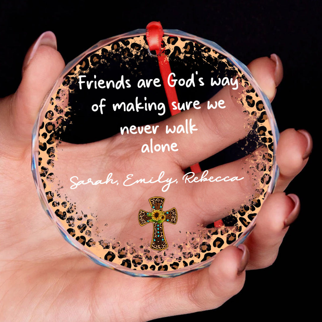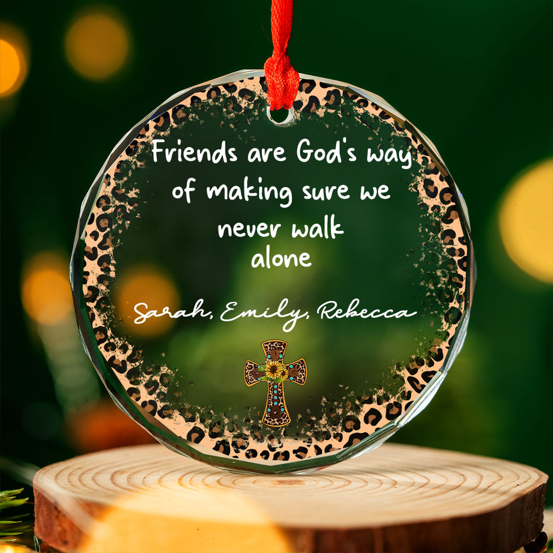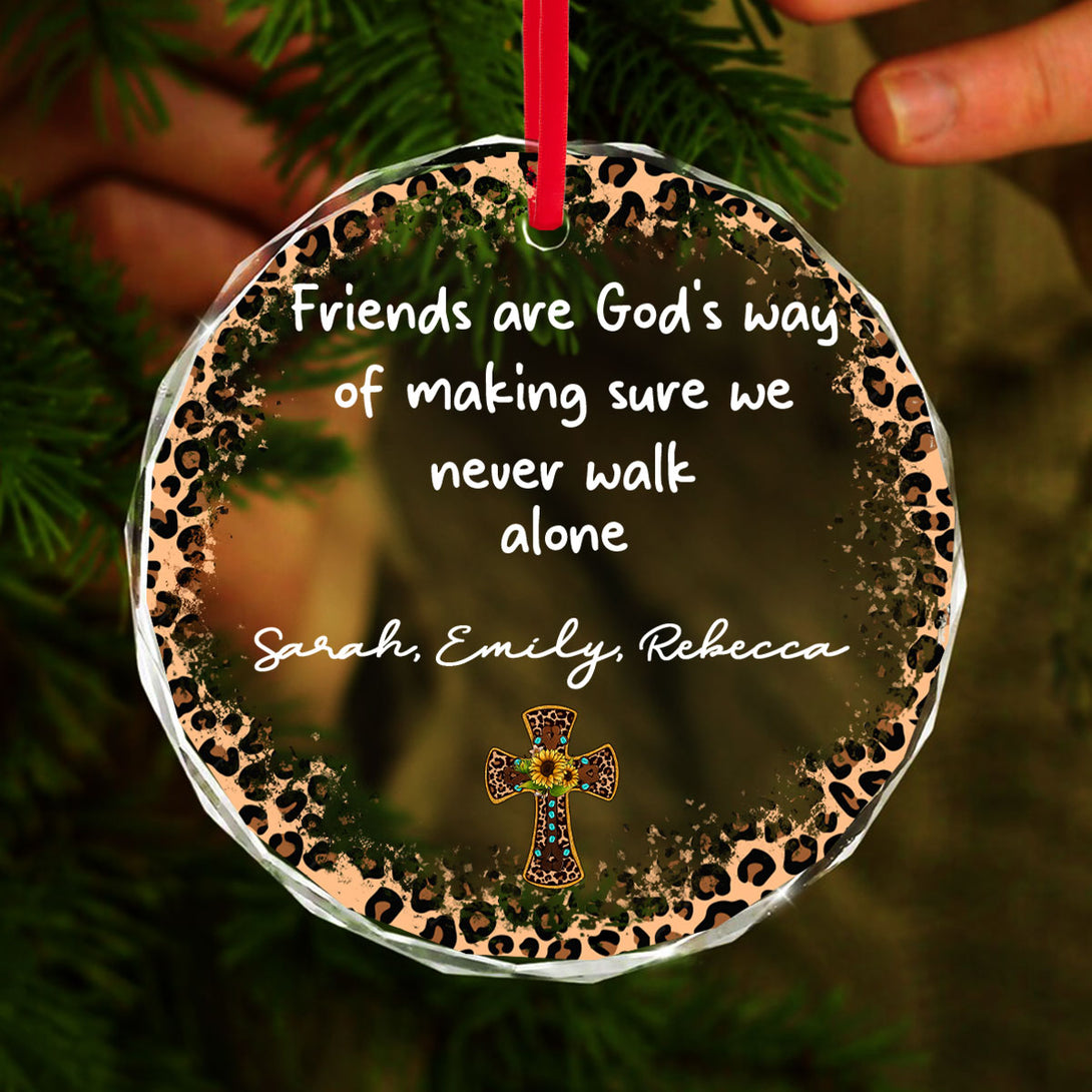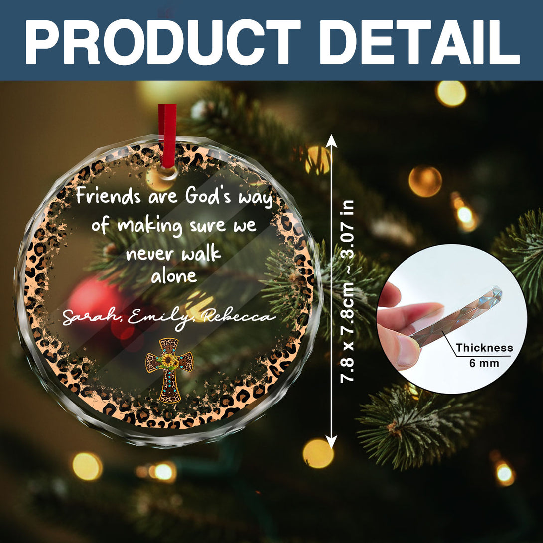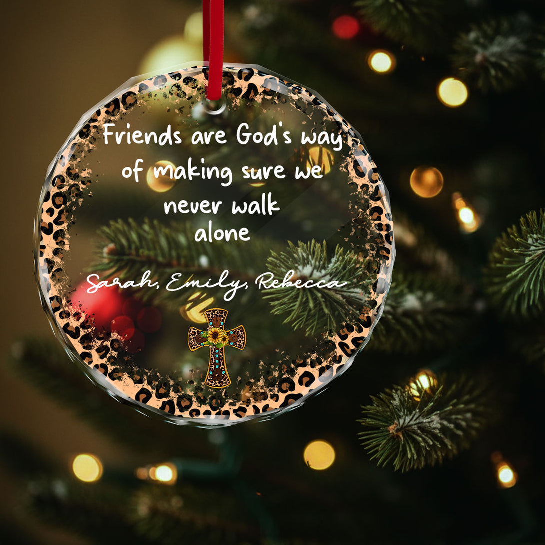 Friends Are God's Way Of Making Sure We Never Walk Alone Personalized Glass Ornament, Custom Name