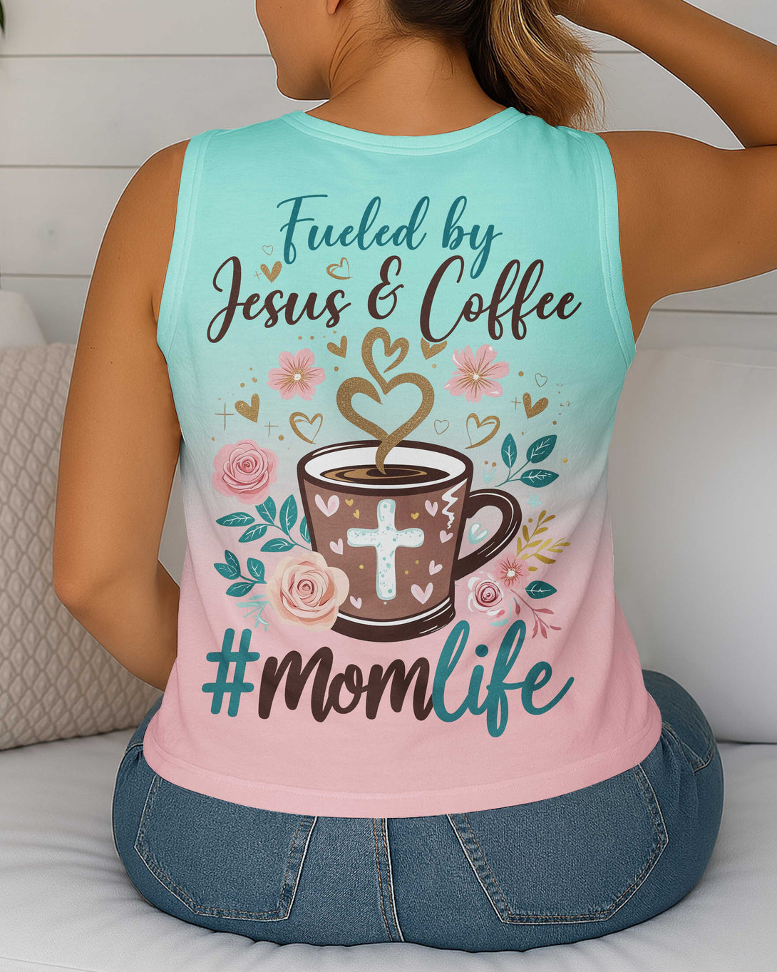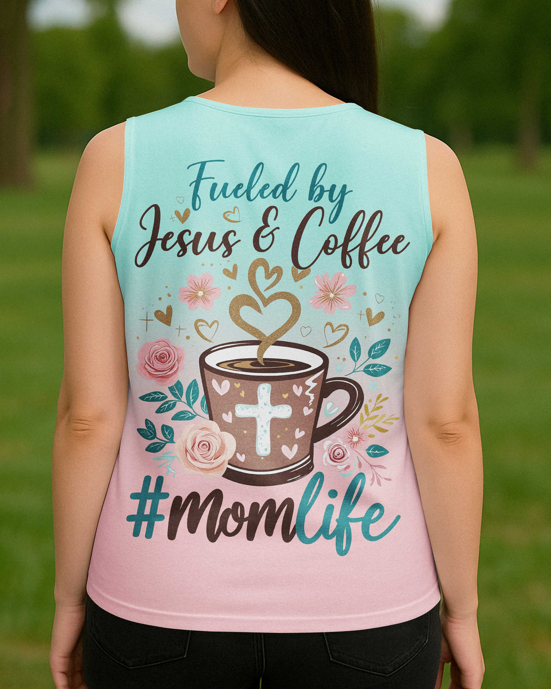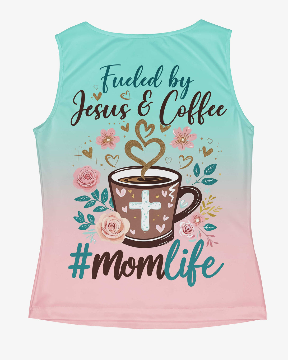 Fueled by Jesus & Coffee #MomLife All Over Print V-neck Tank Top