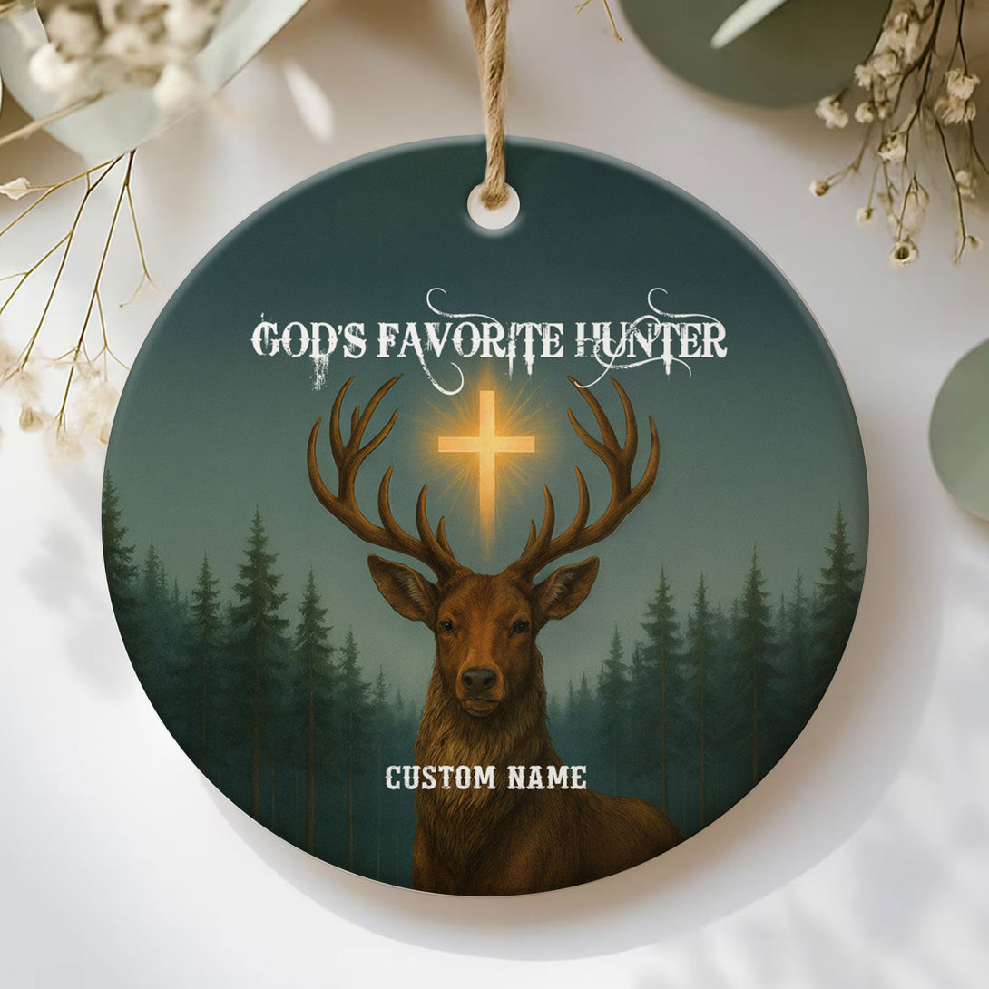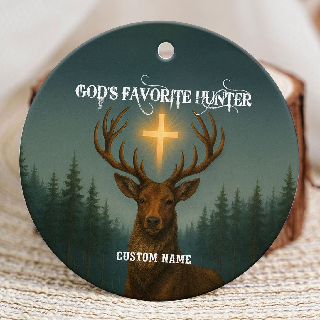 God Favorite Hunter Personalized Ceramic Ornament, Custom Name