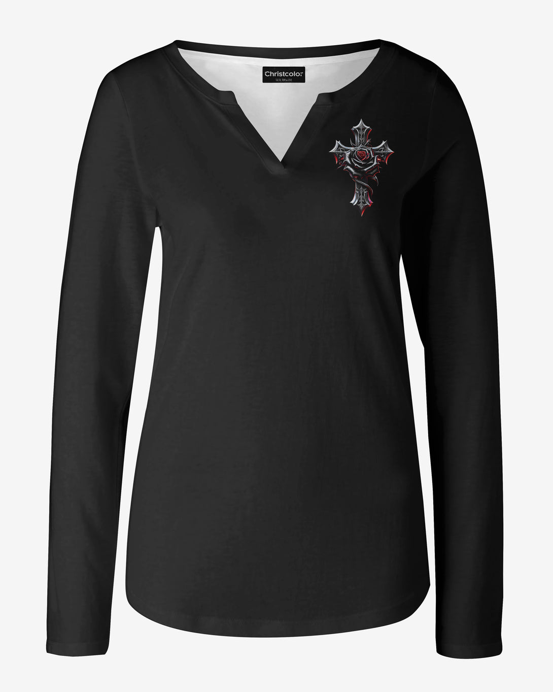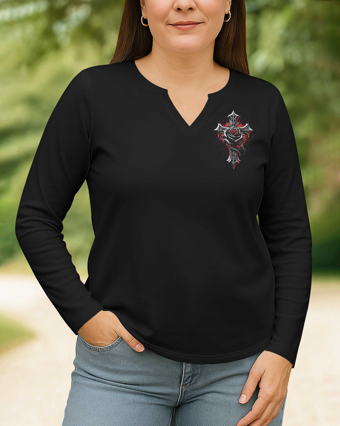 God Is My Strength All Over Print V-neck Long Sleeves Shirt