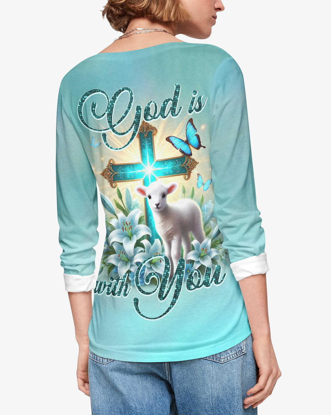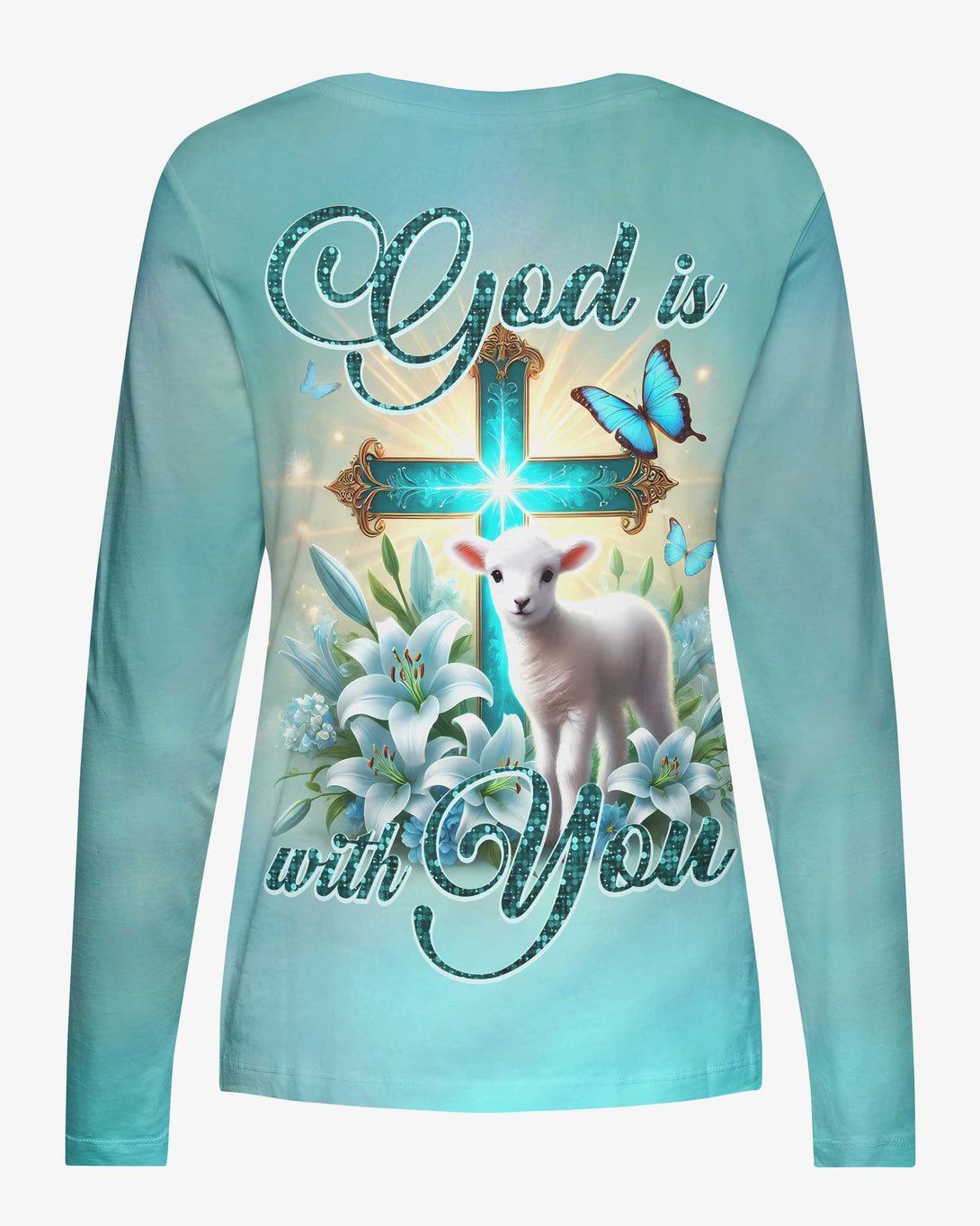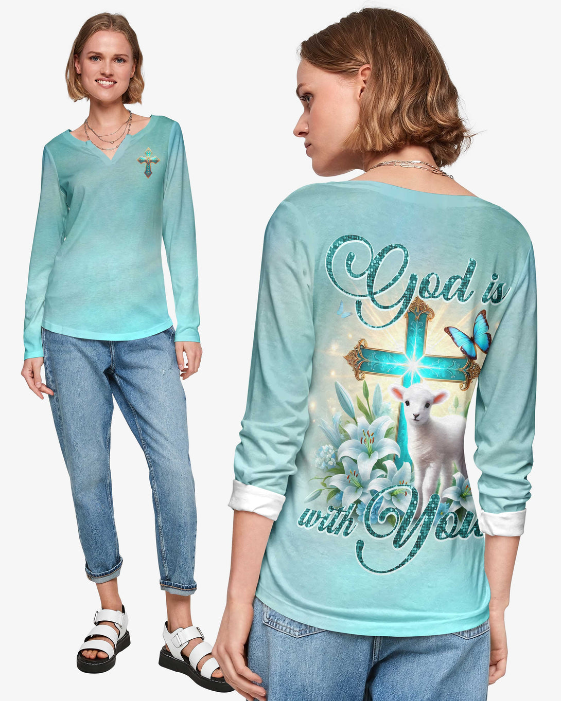 God Is With You All Over Print V-neck Long Sleeves Shirt