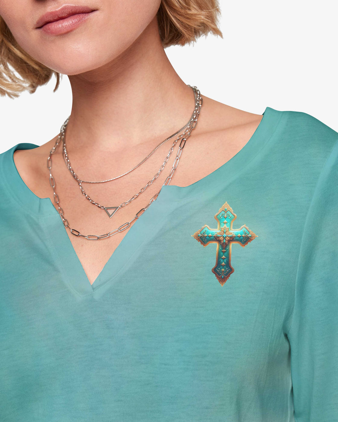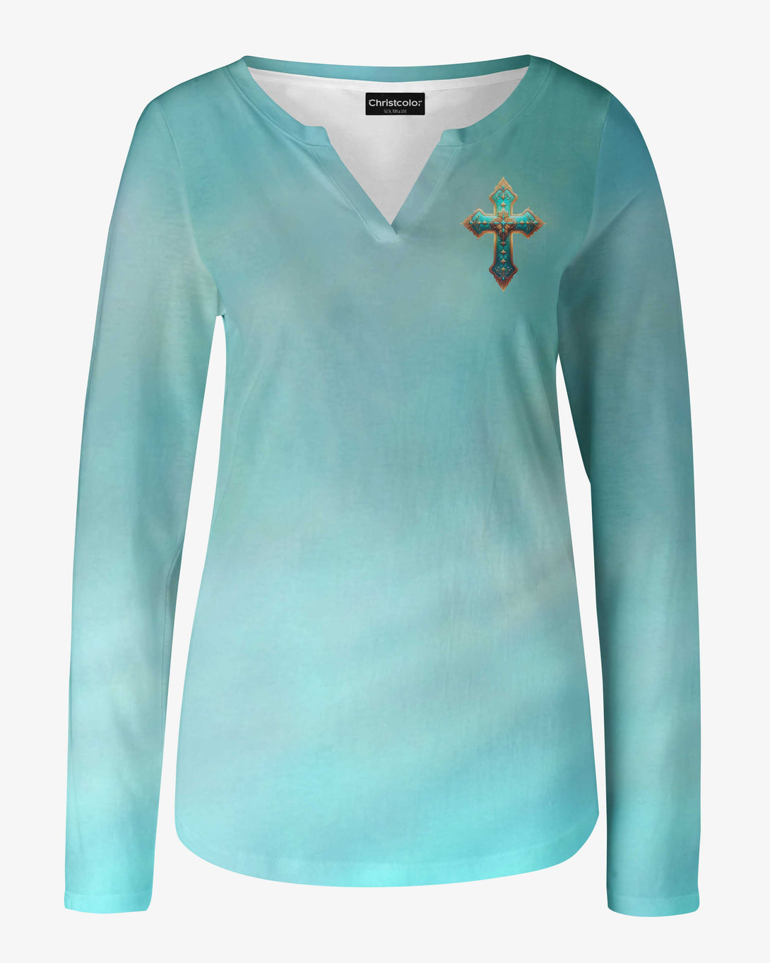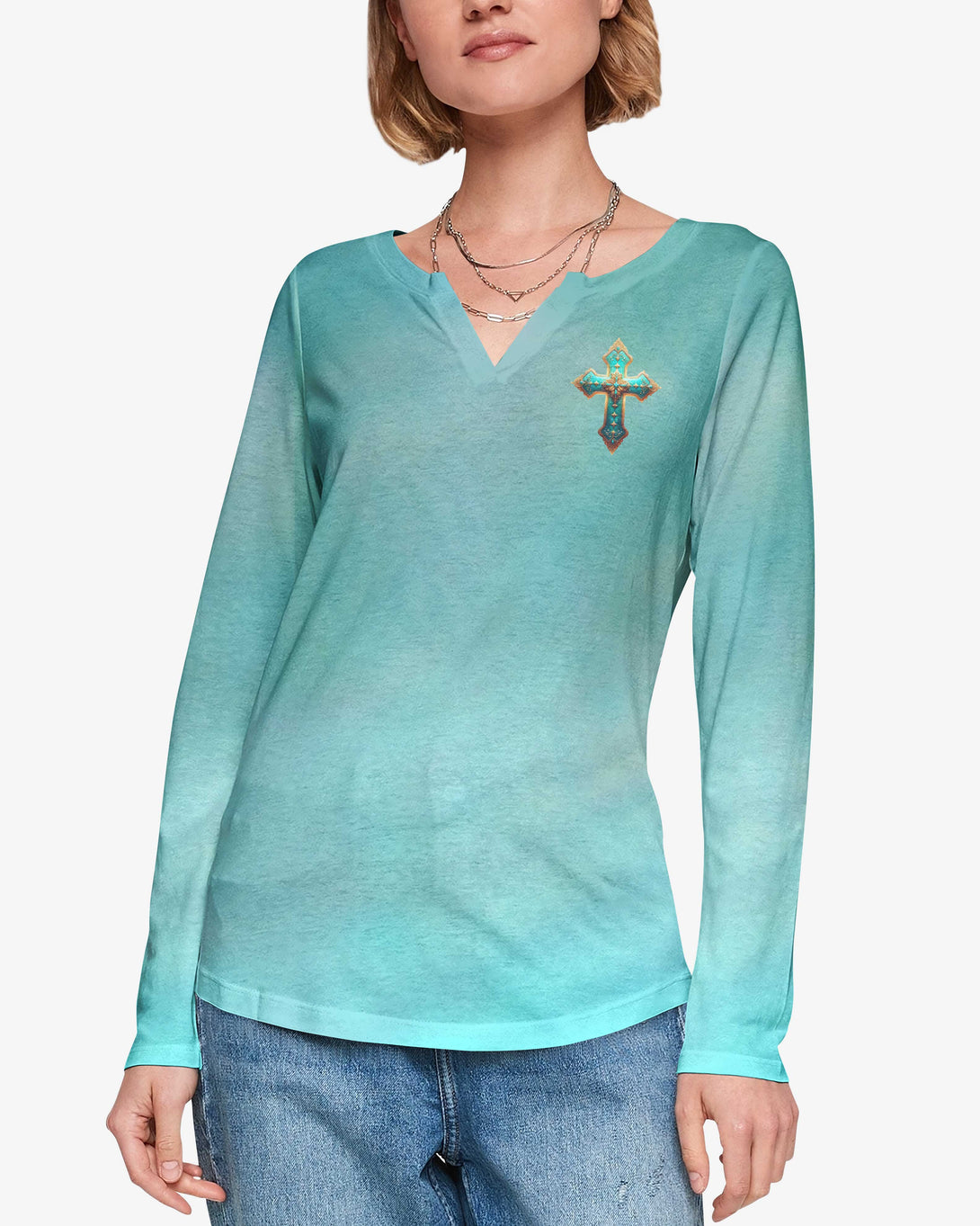 God Is With You All Over Print V-neck Long Sleeves Shirt