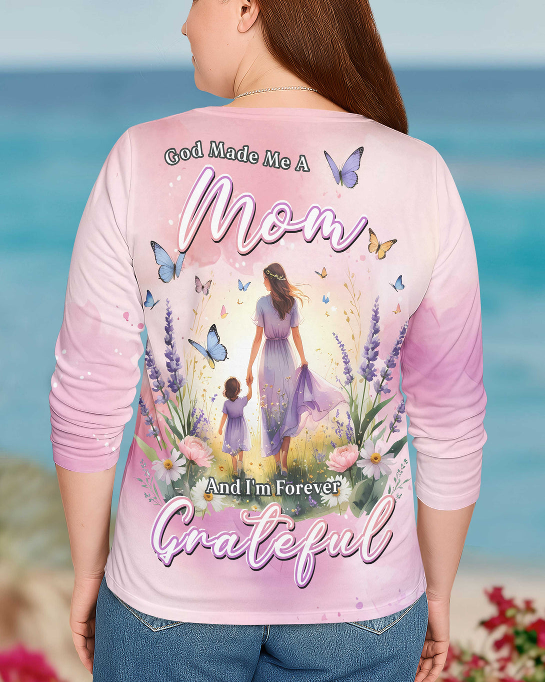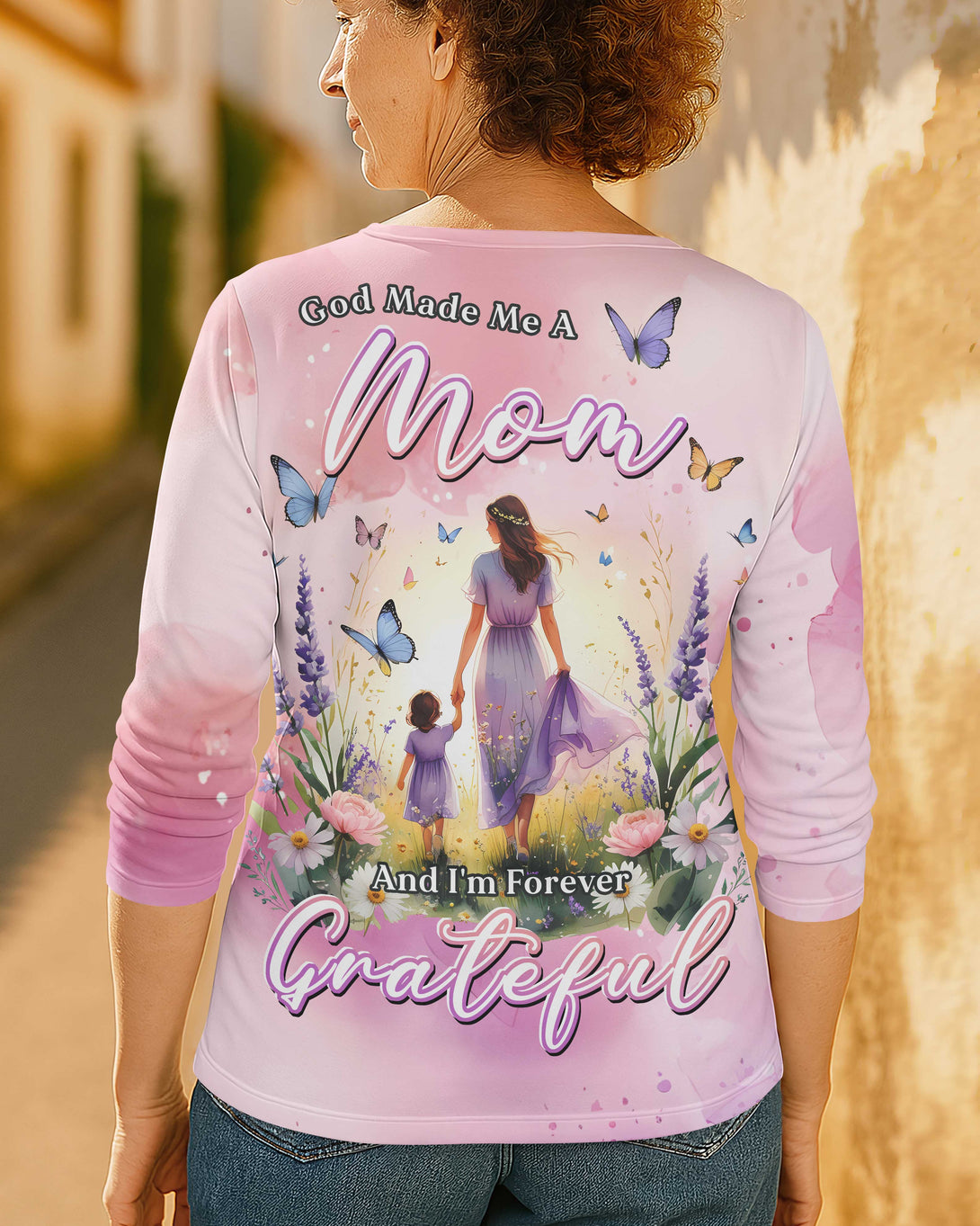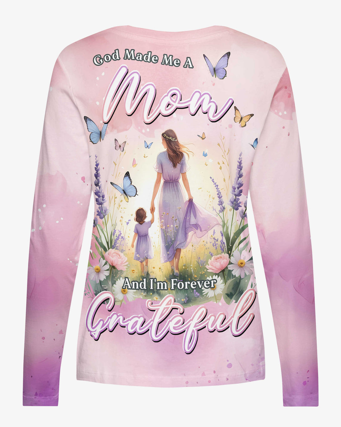 God Made Me a Mom and I'm Forever Grateful All Over Print V-neck Long Sleeves Shirt