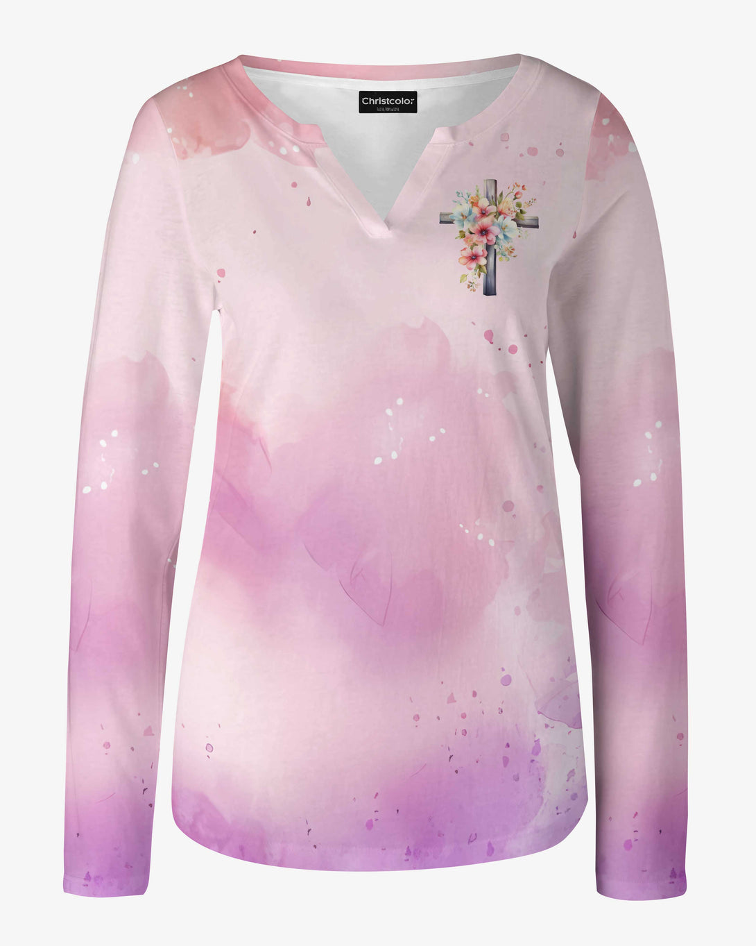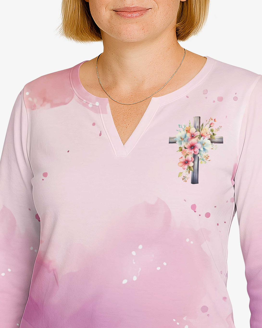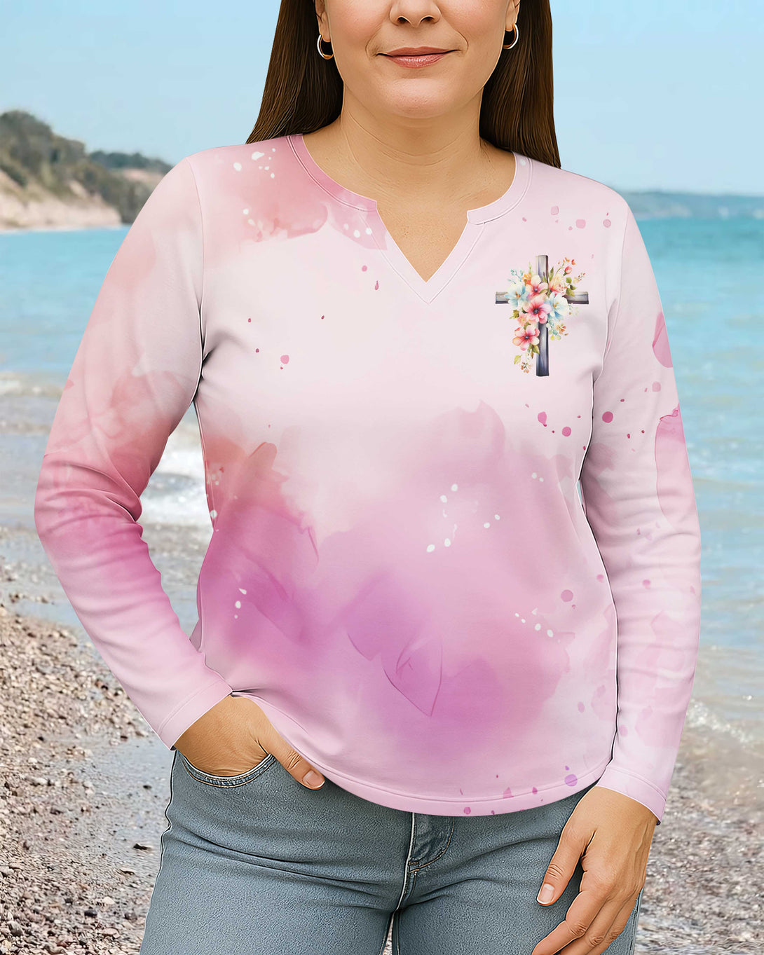 God Made Me a Mom and I'm Forever Grateful All Over Print V-neck Long Sleeves Shirt