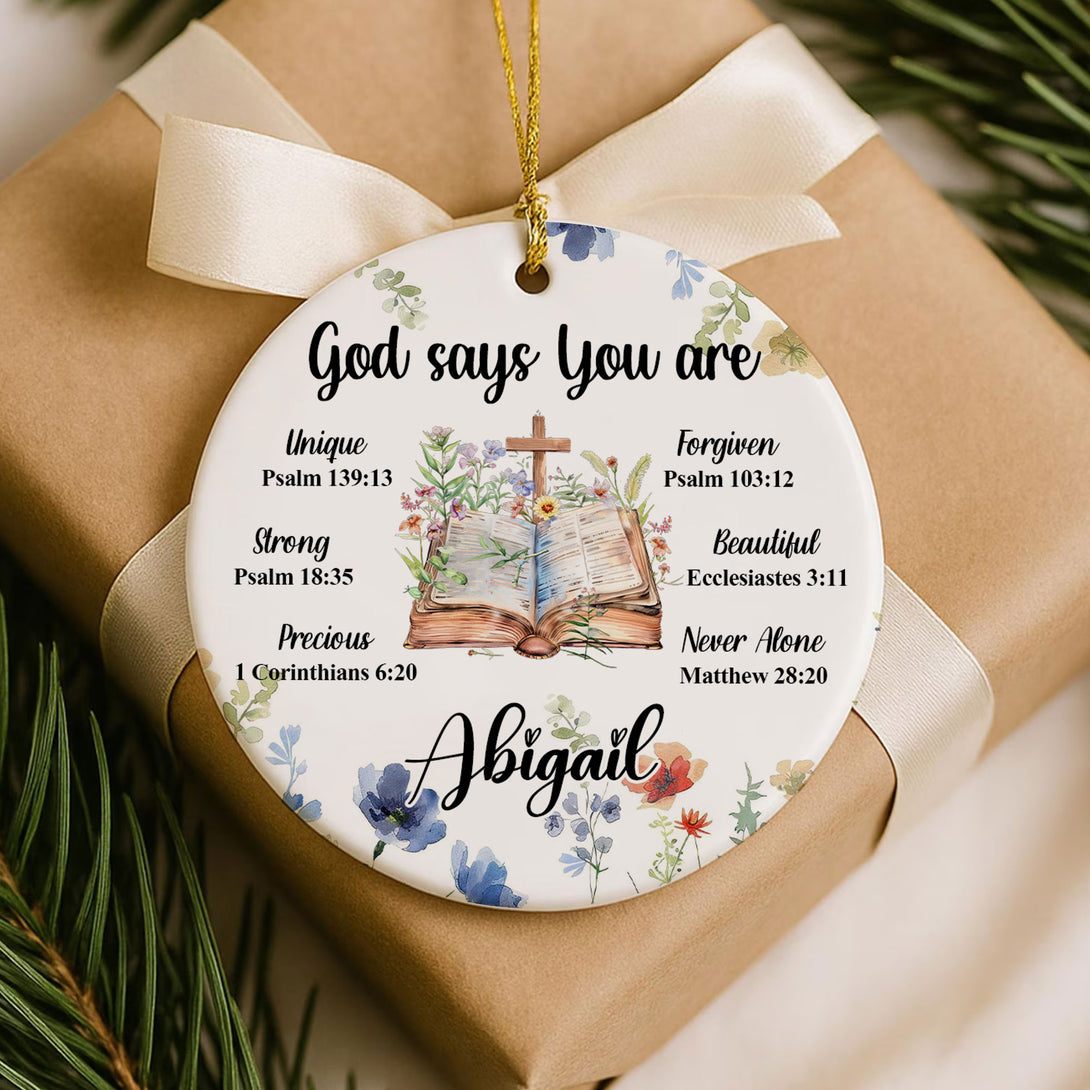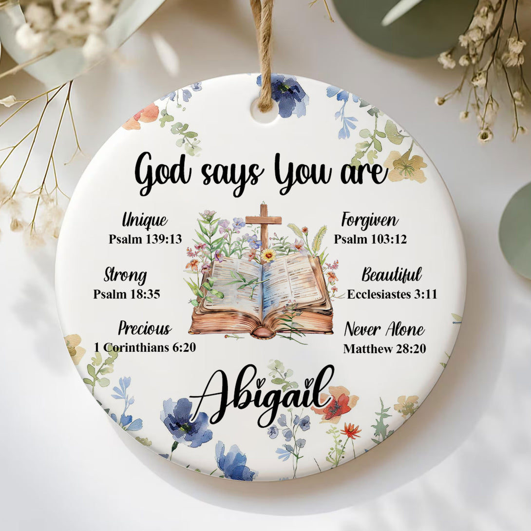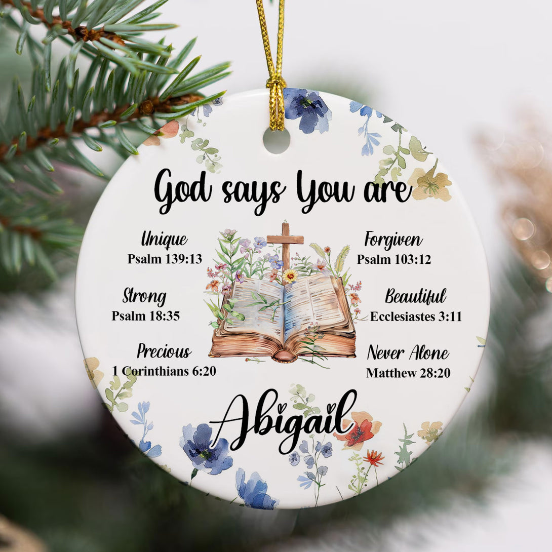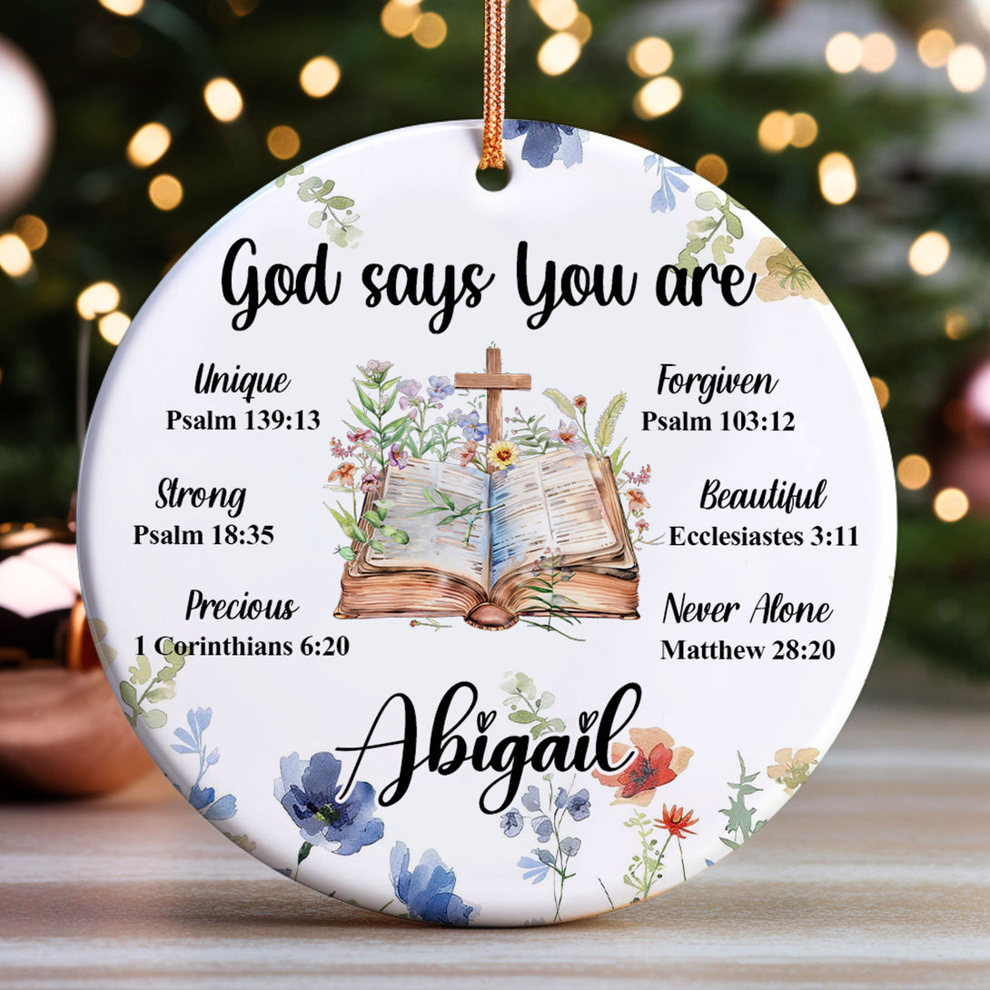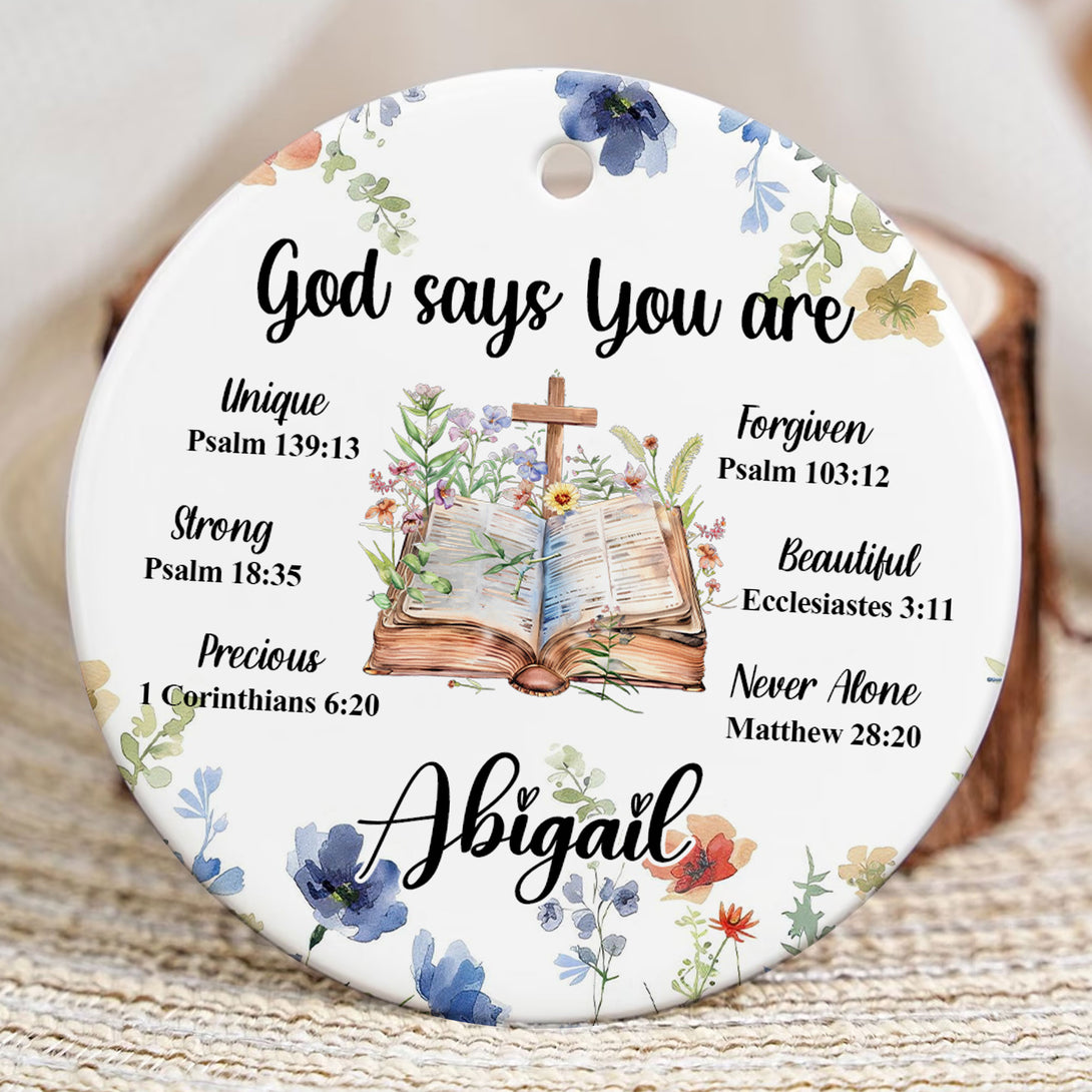 God Says You Are Personalized Ceramic Ornament, Custom Name