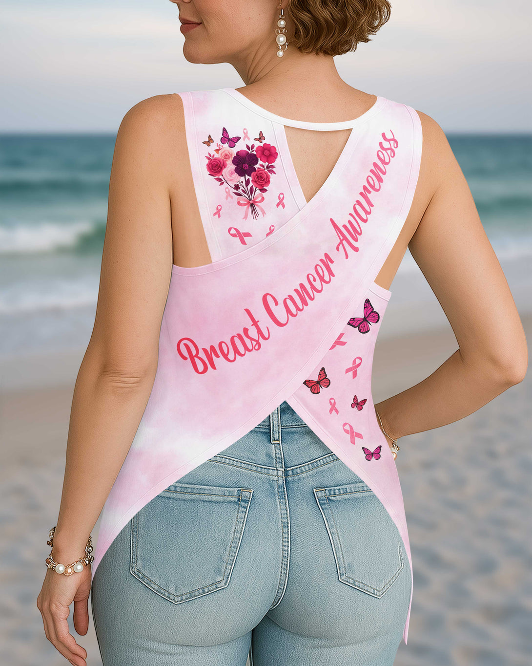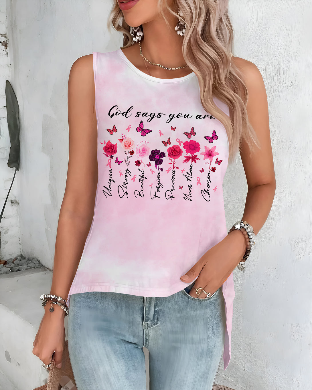 God Says You Are Unique All Over Print Crop Out Wrap Back Tank Top