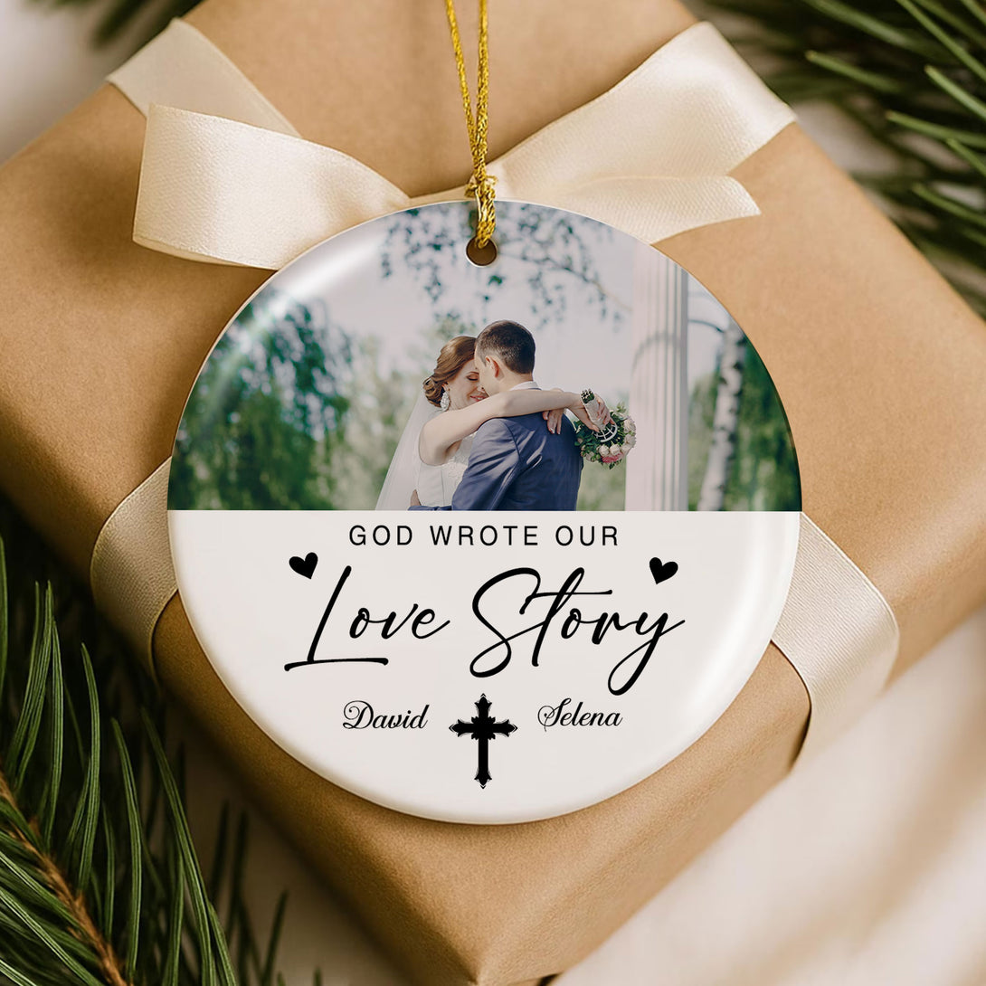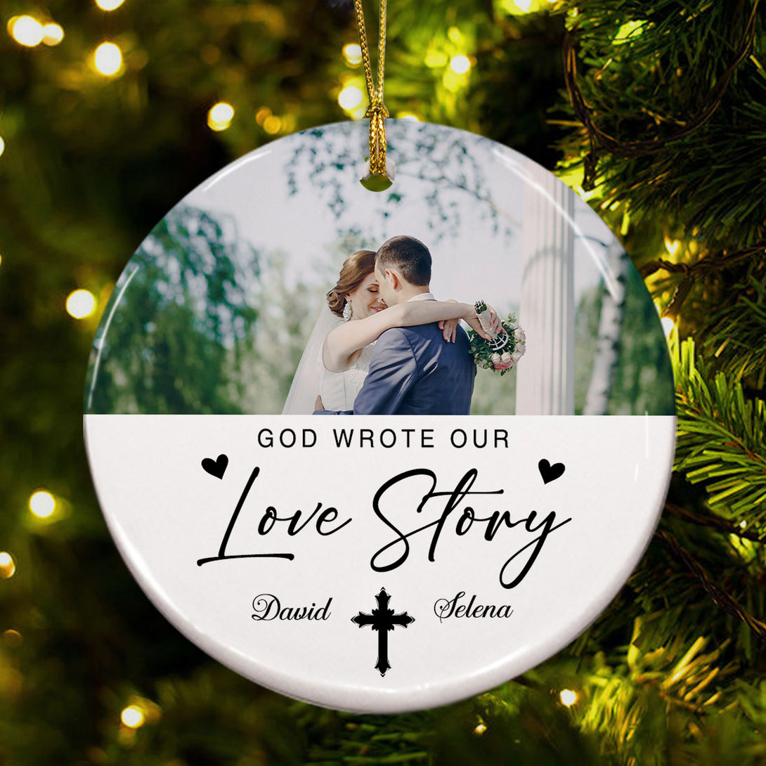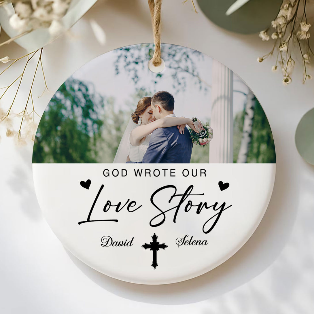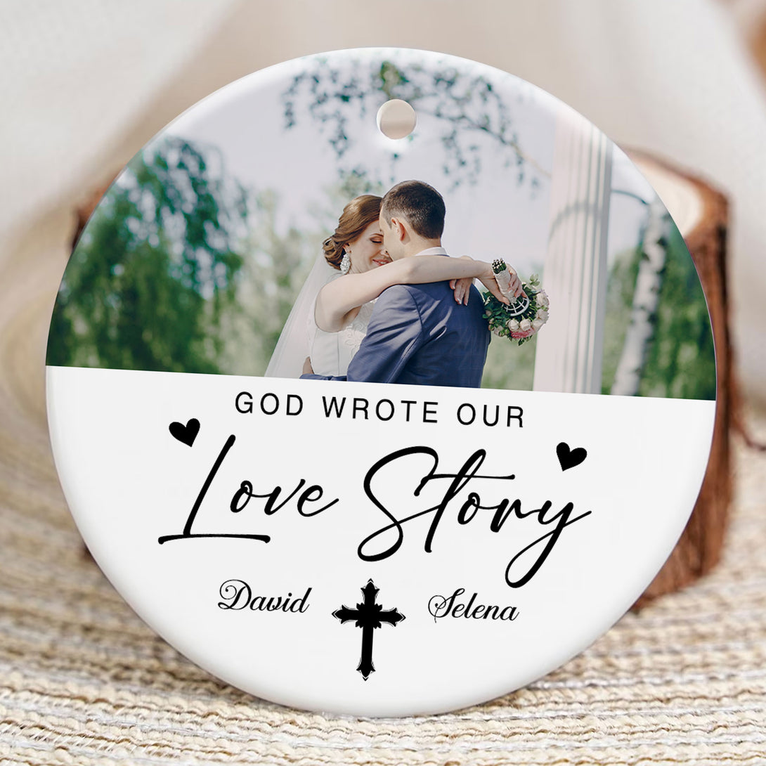 God Wrote Our Love Story Personalized Ceramic Ornament, Custom Couple Name