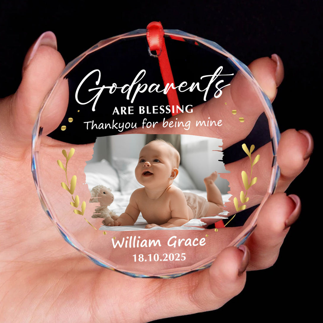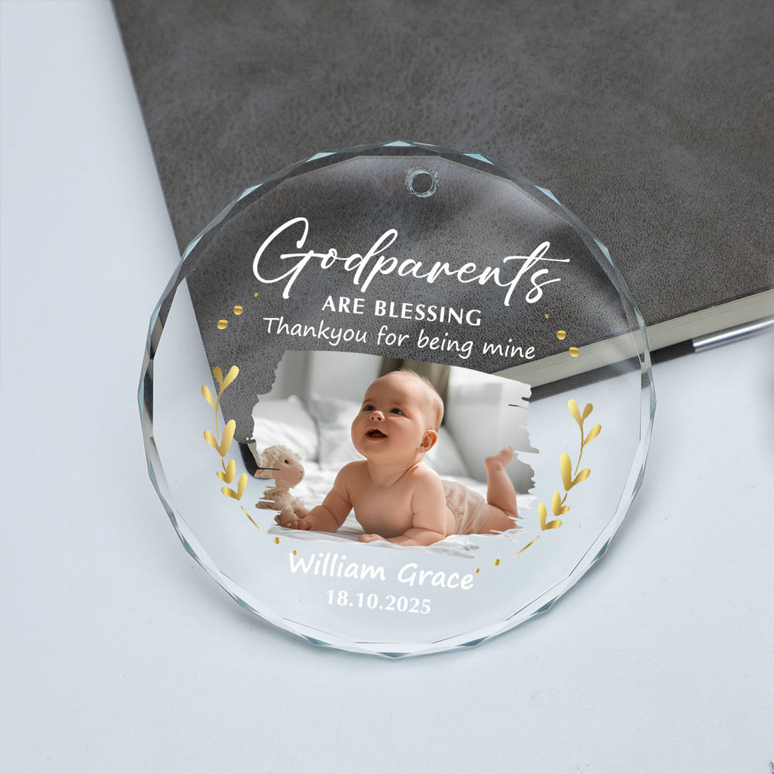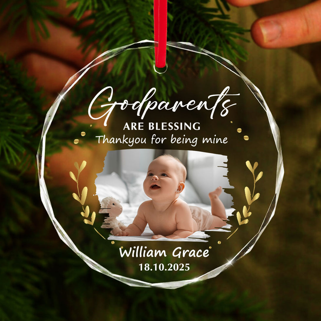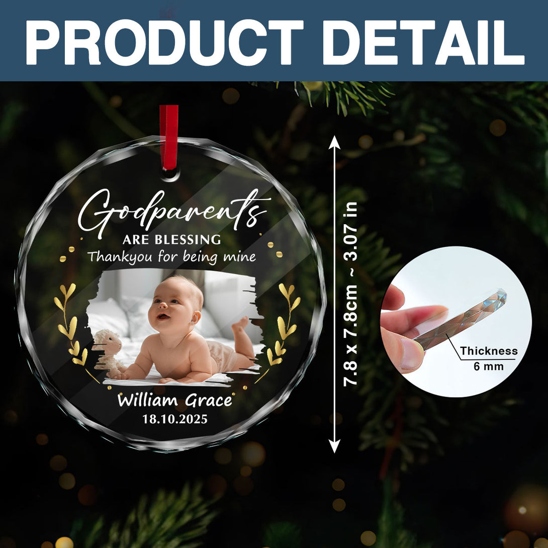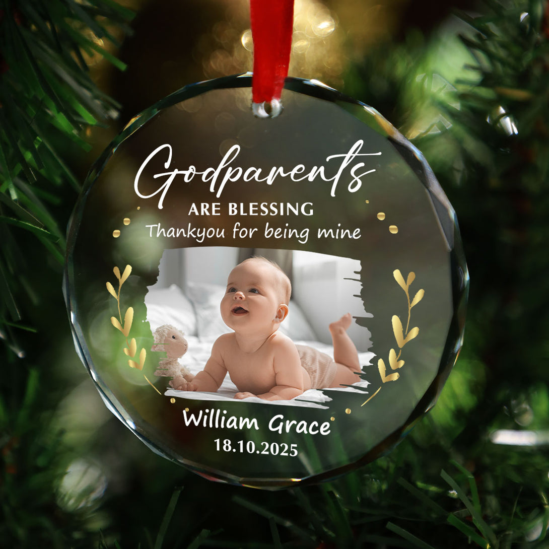 Godparents Are Blessing Personalized Glass Ornament, Custom Baby Name and Birth Year