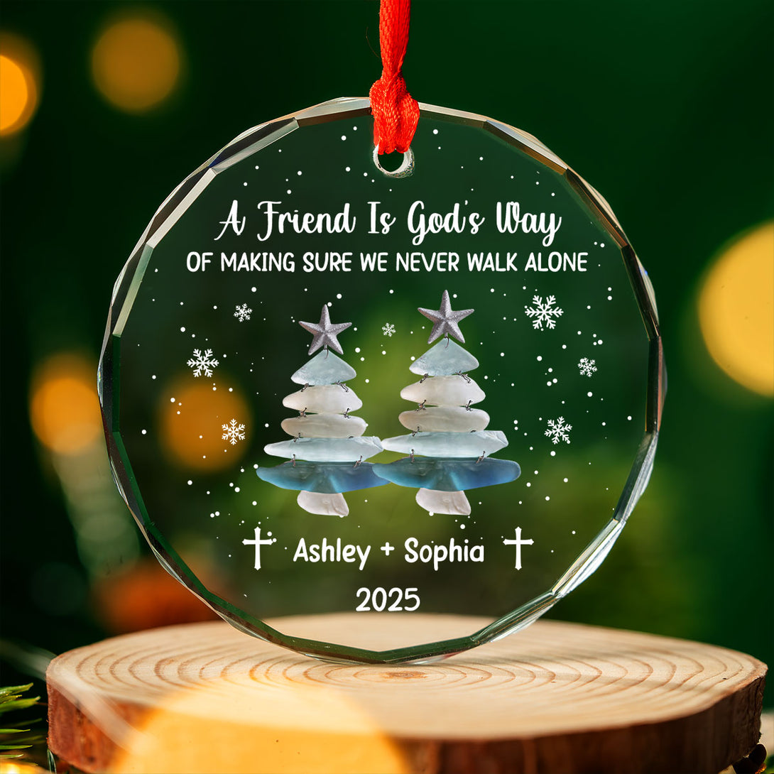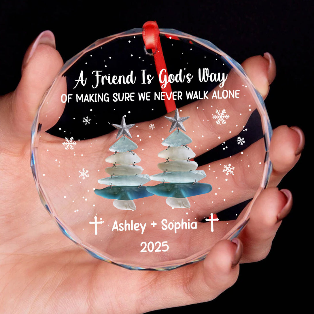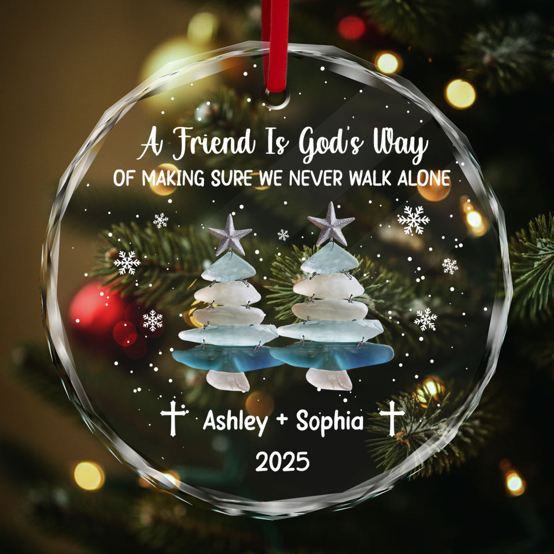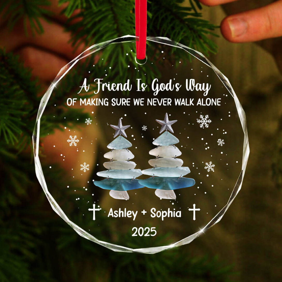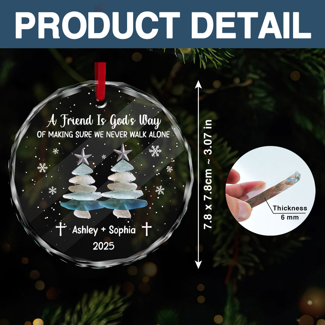 God's Way Of Making Sure We Never Walk Alone Personalized Glass Ornament, Custom Friend Name