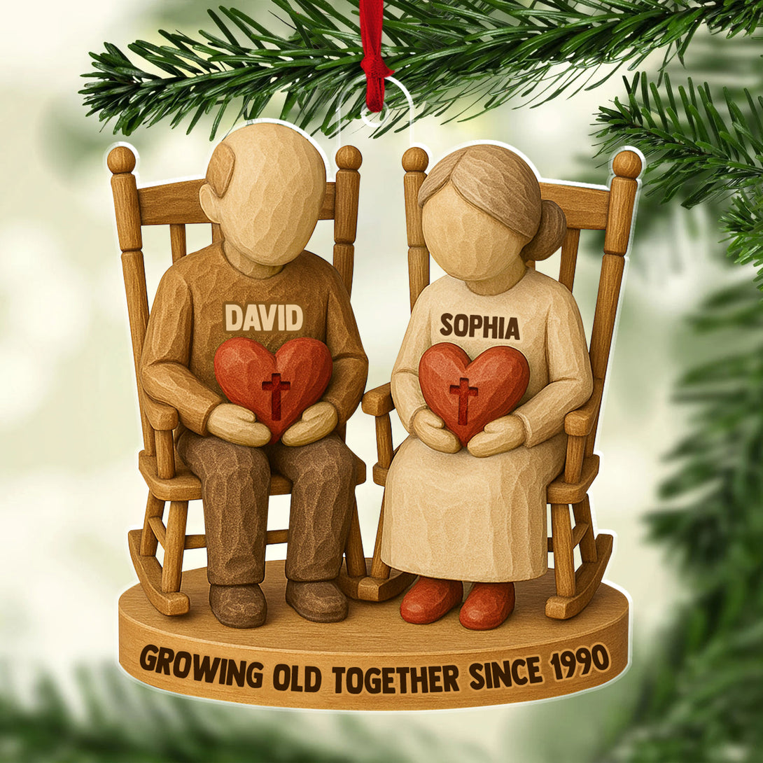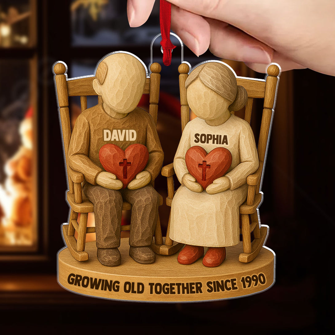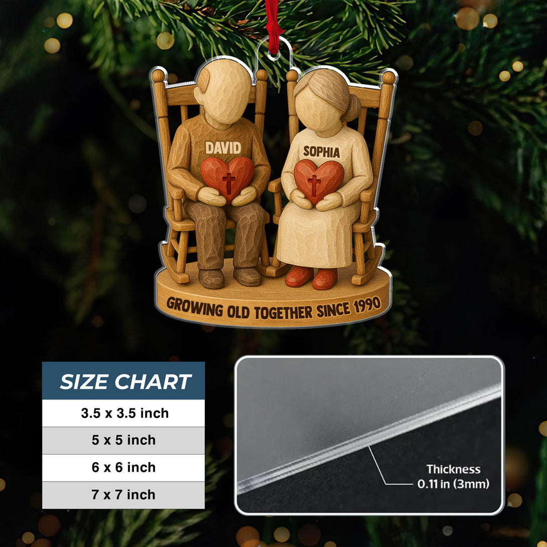 Growing Old Together Two Christian Heart Couple Personalized Acrylic Ornament