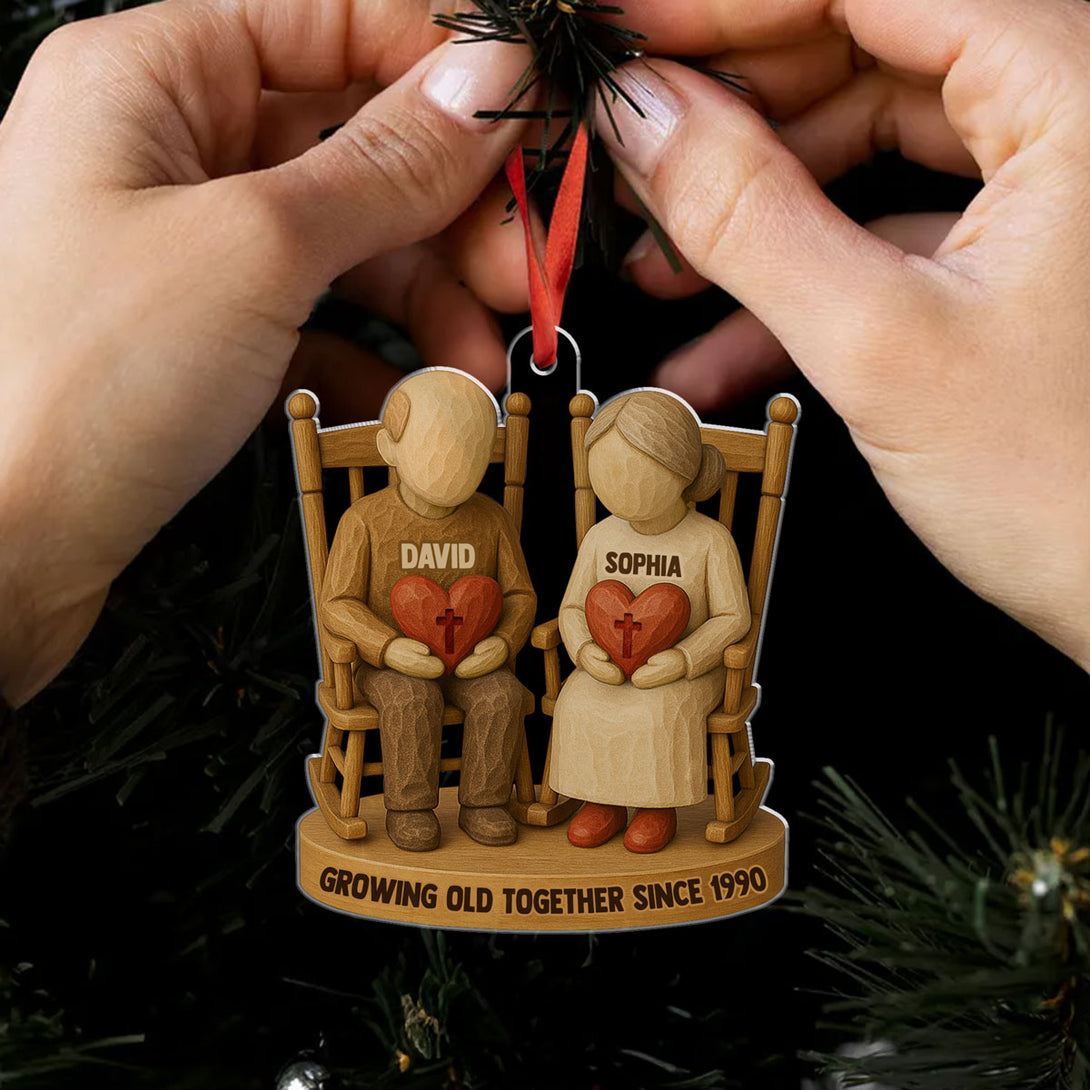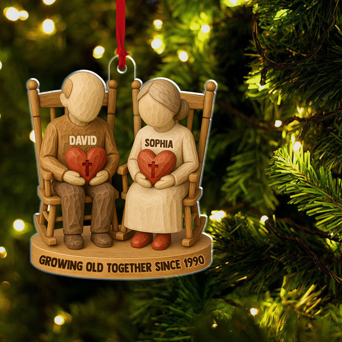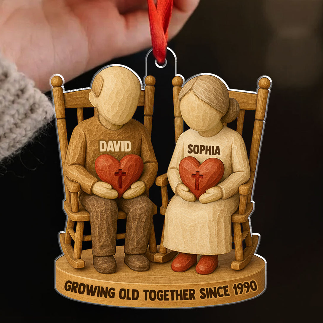Growing Old Together Two Christian Heart Couple Personalized Acrylic Ornament
