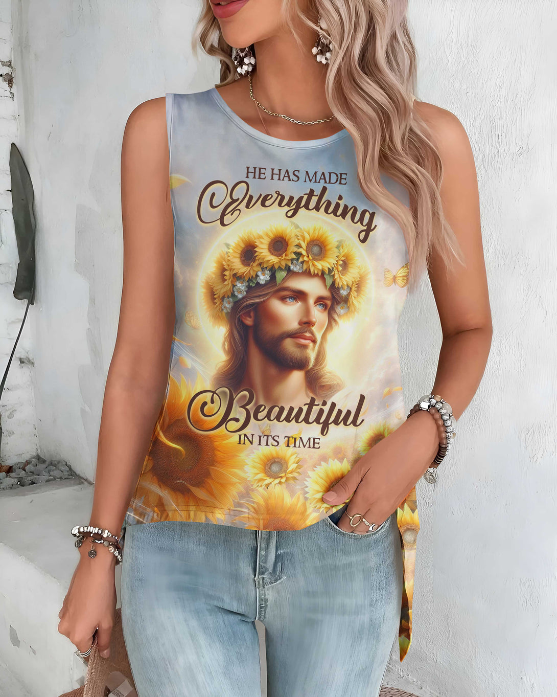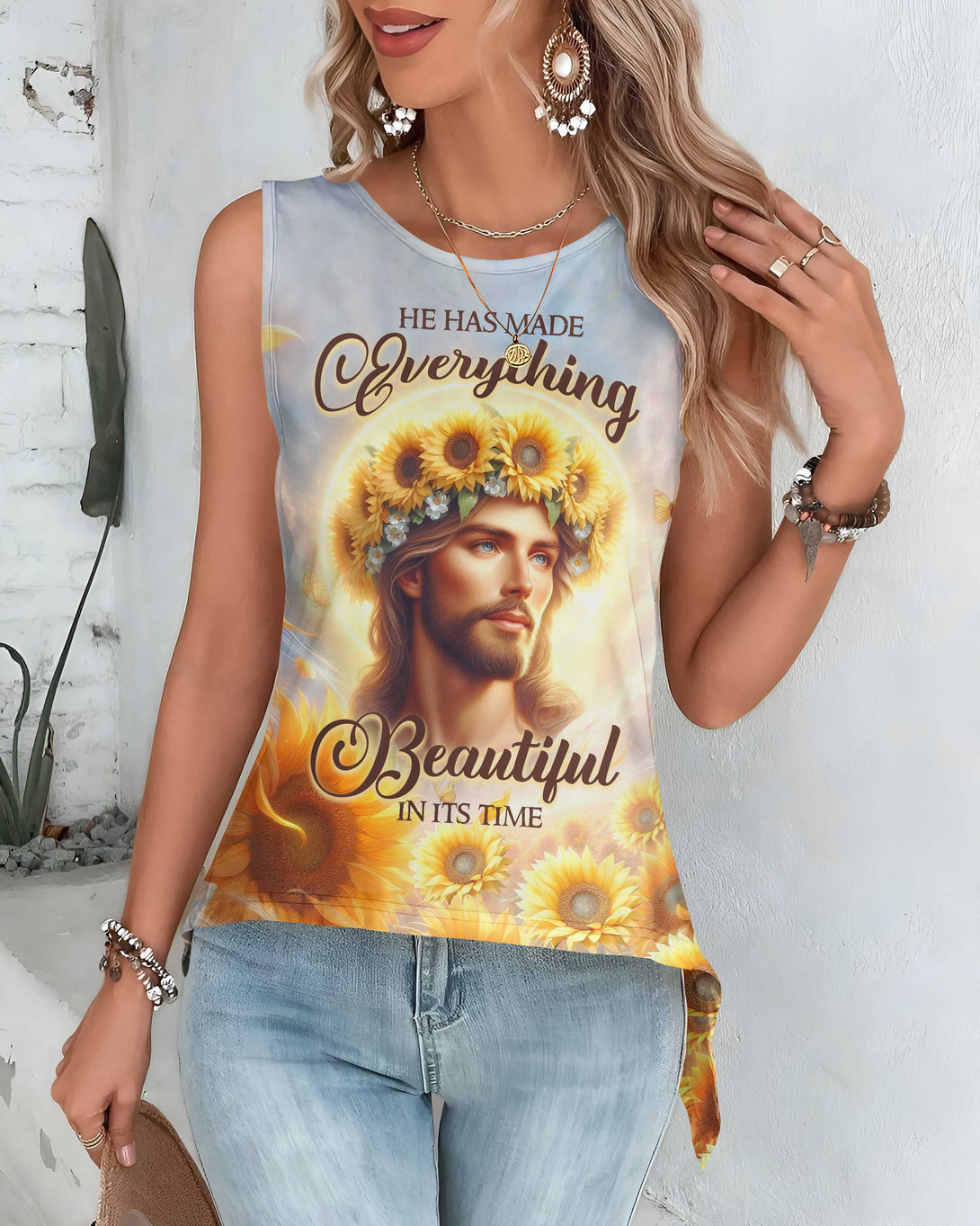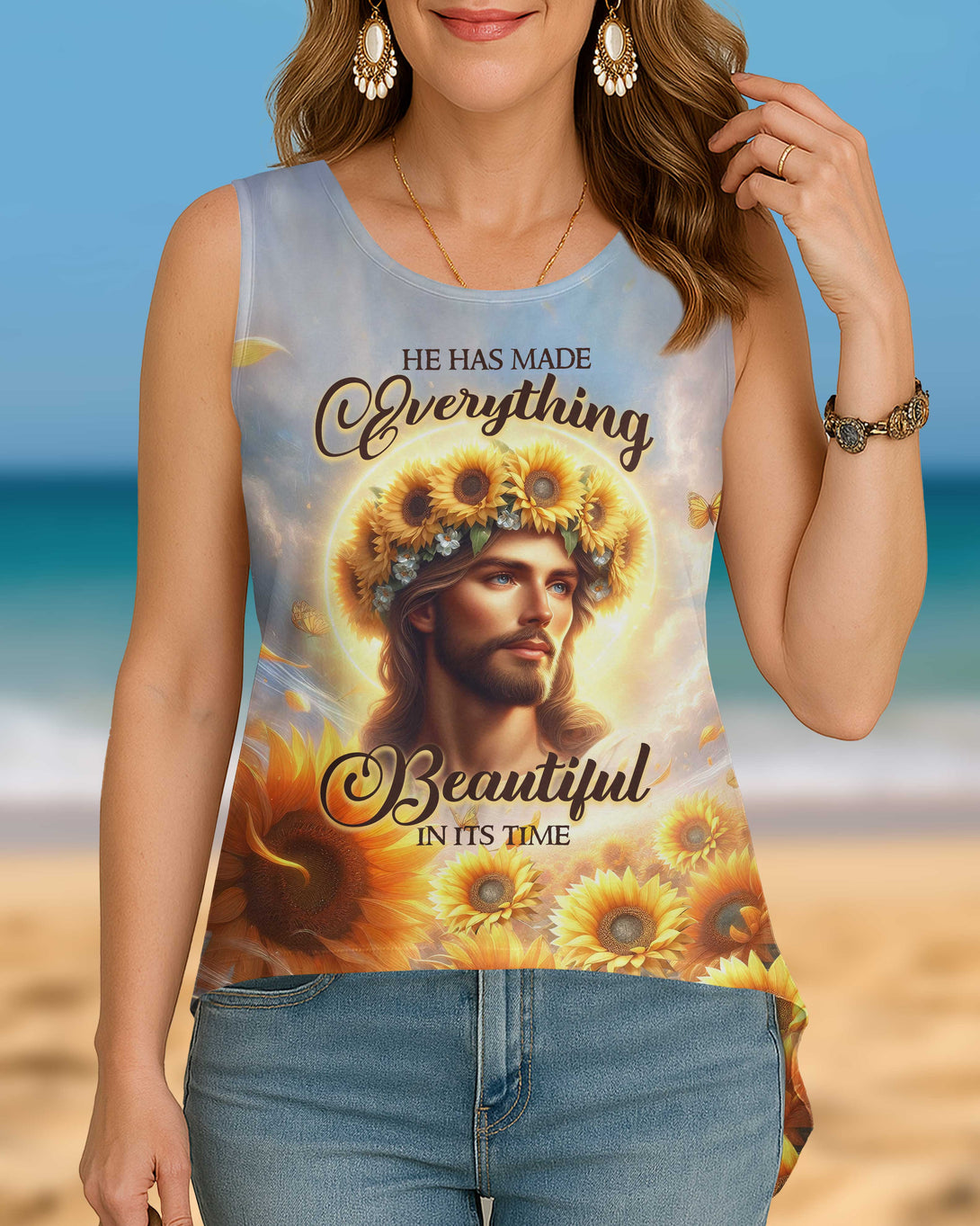 He Has Made Everything Beautiful In Its Time All Over Print Cut Out Wrap Back Tank Top