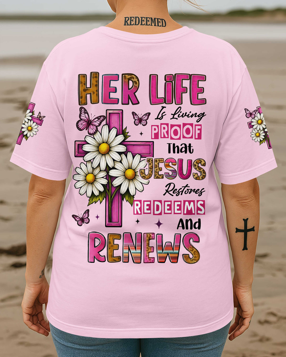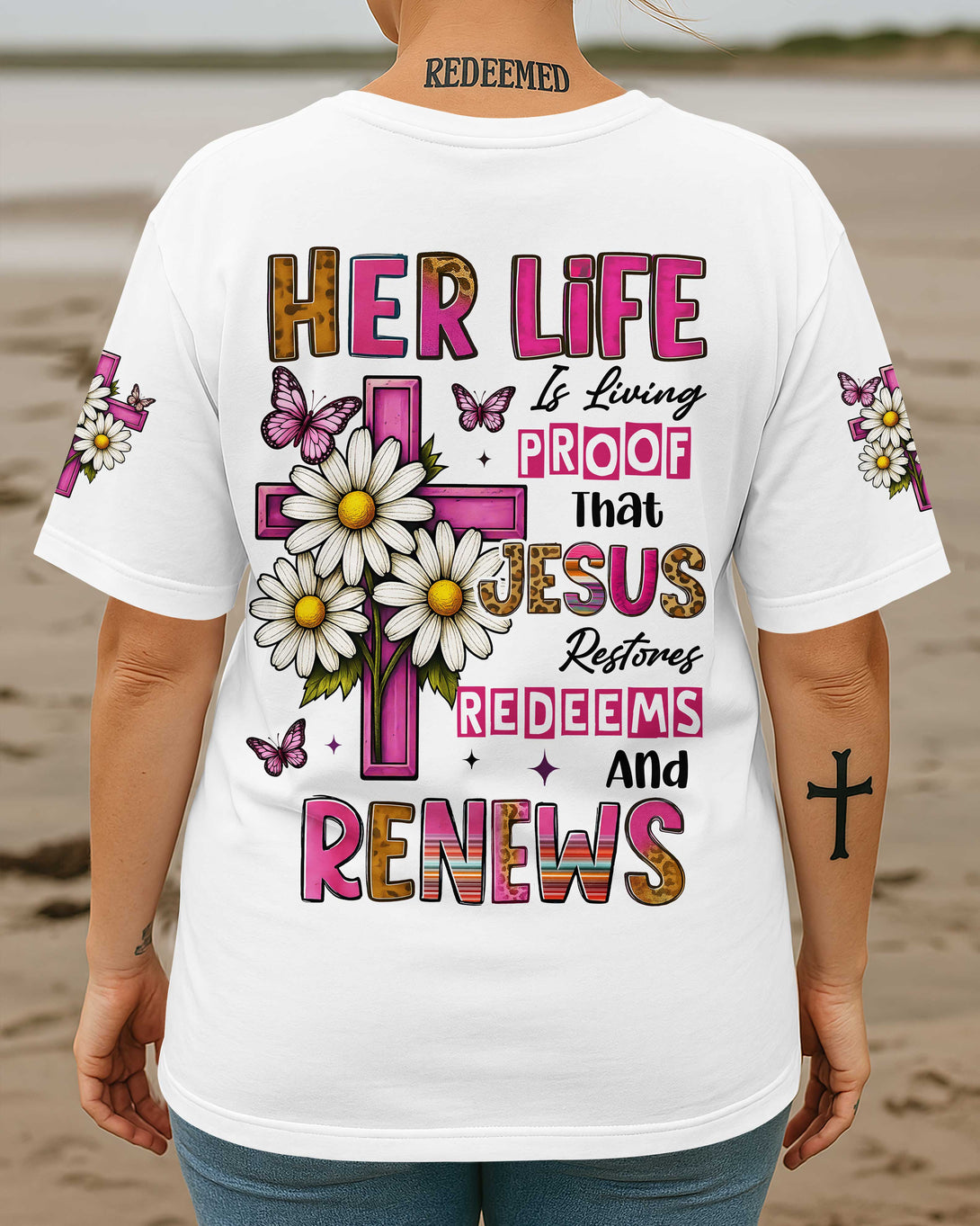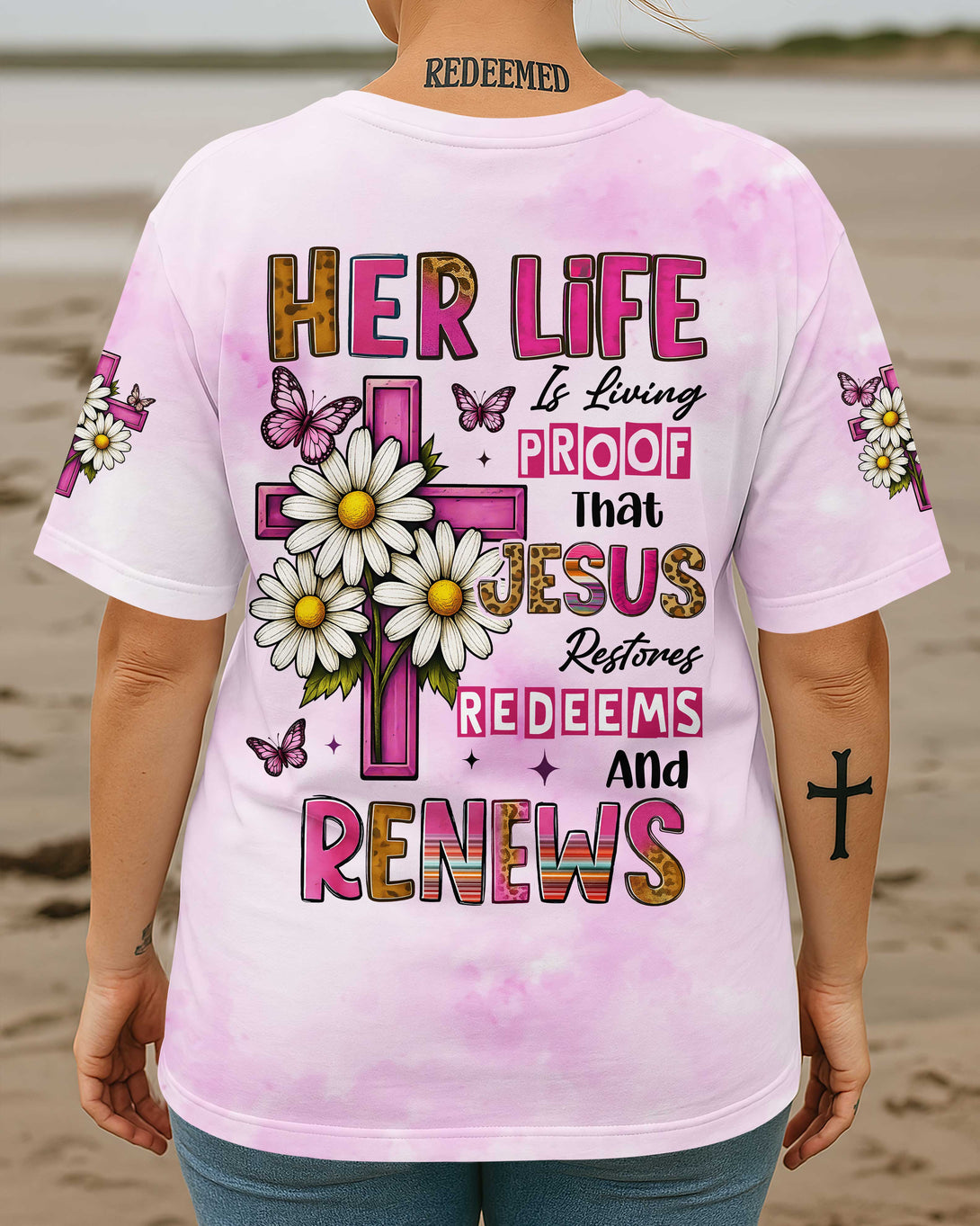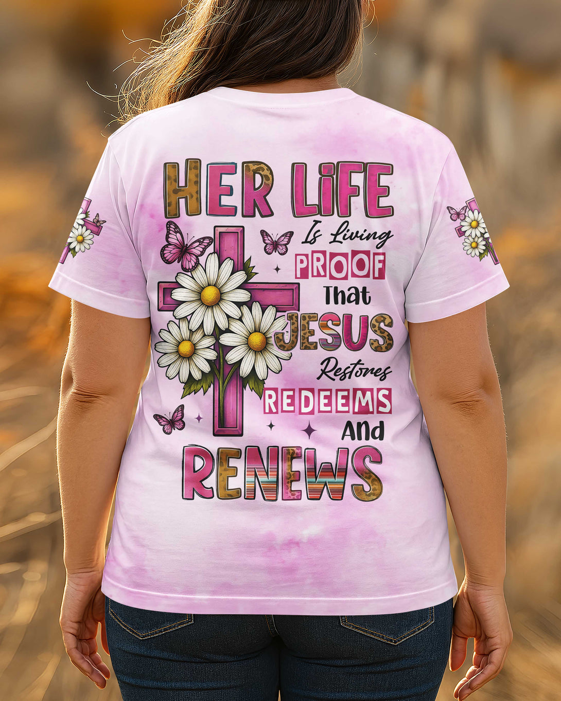 Her Life Is Living Proof That Jesus Restores Redeems And Renews T-Shirt