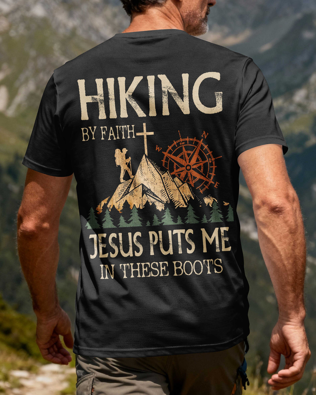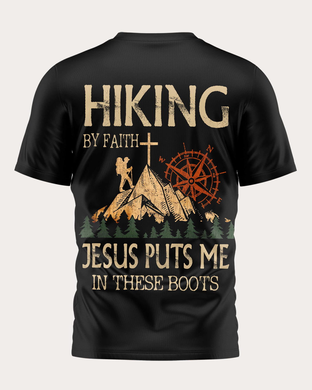 Hiking By Faith Jesus Puts Me In These Boots All Over Print T-Shirt
