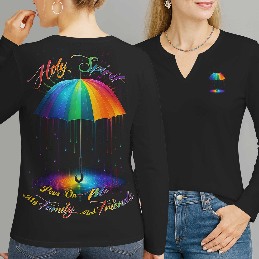 Holy Spirit Pour On Me My Family And Friends All Over Print V-neck Long Sleeves Shirt