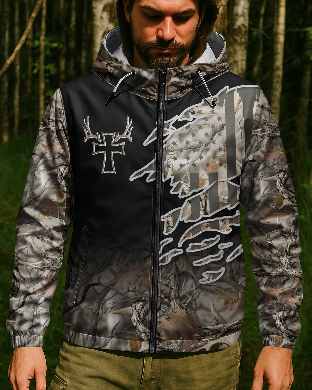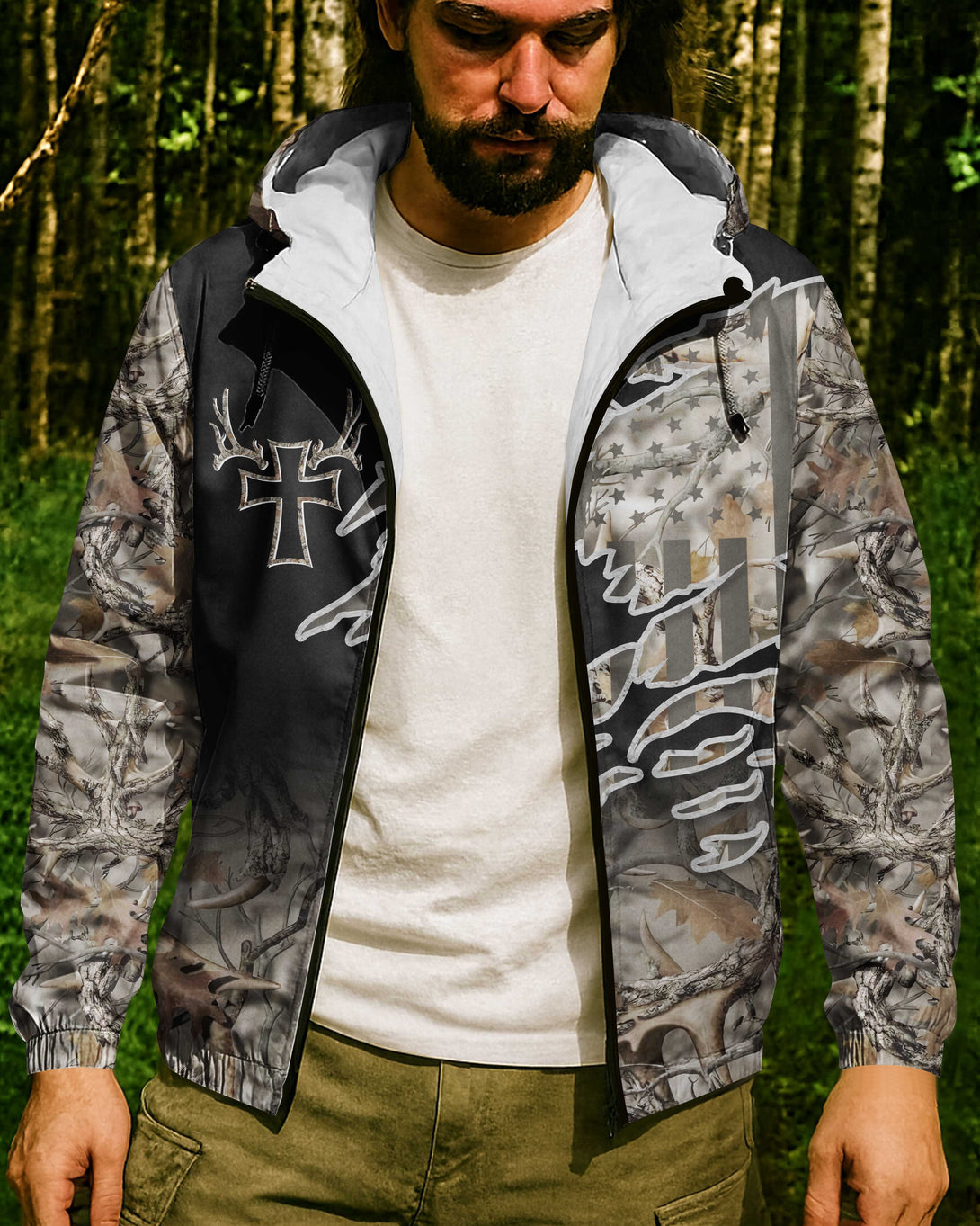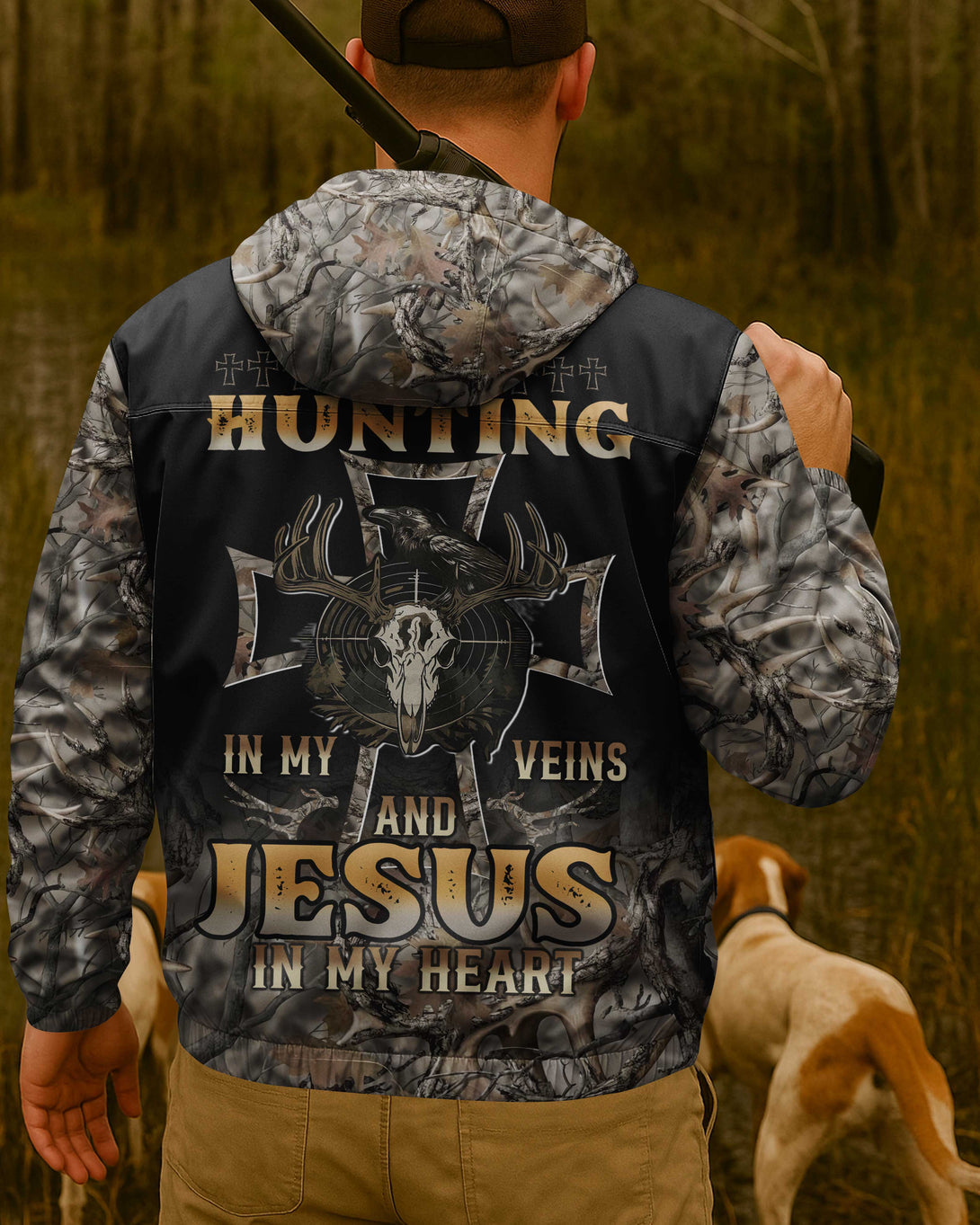 Hunting In My Veins And Jesus In My Heart All Over Print Outdoor Jacket