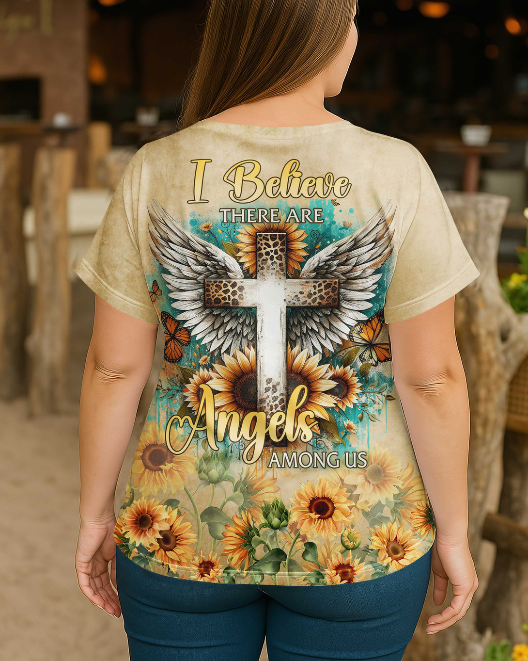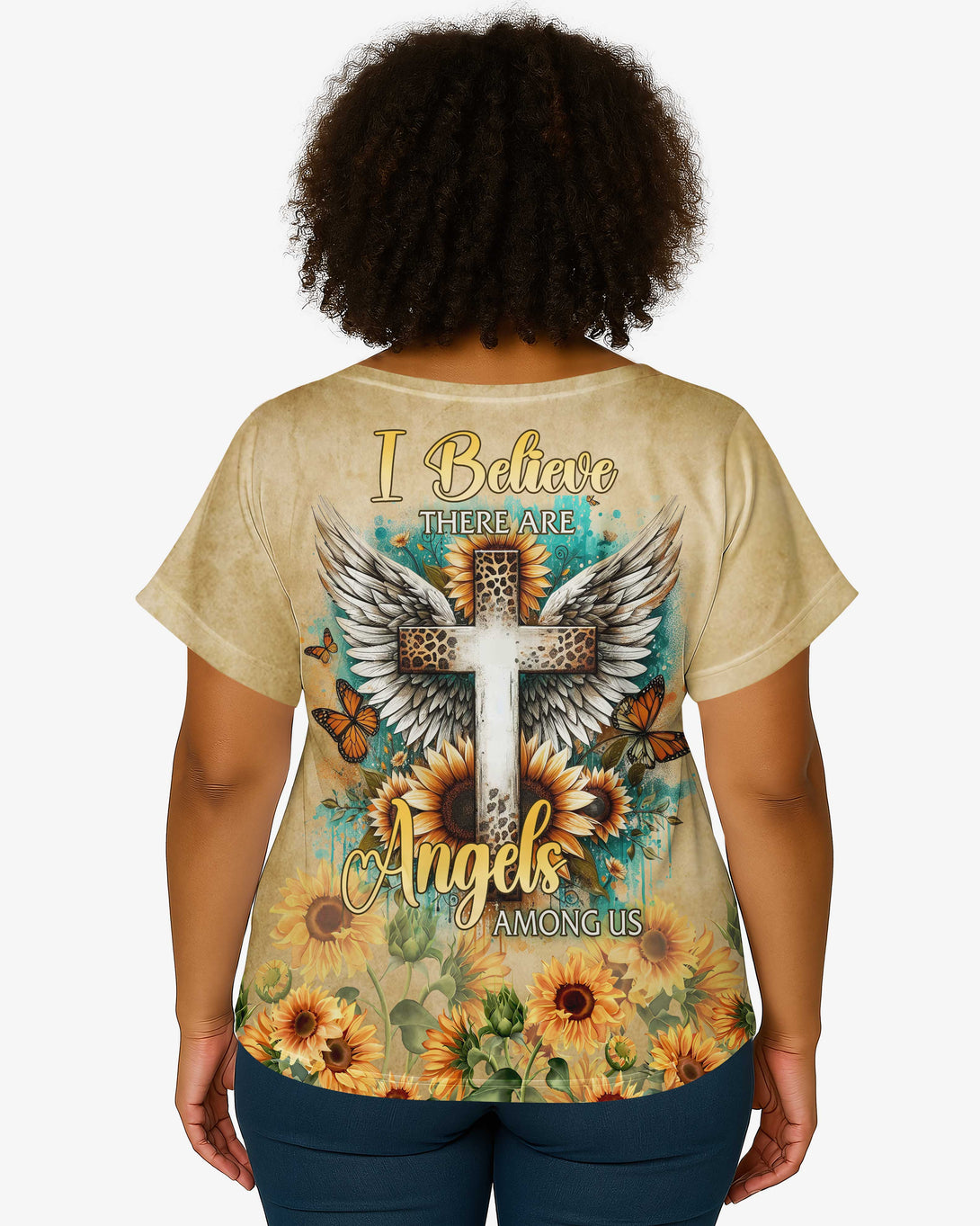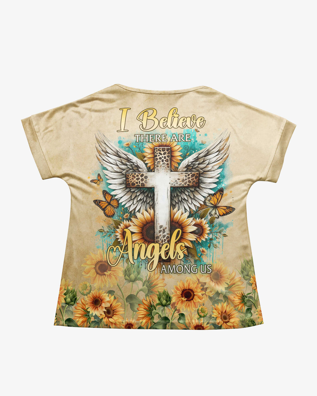 I Believe There Are Angels Among Us All Over Print V-neck Dolman Sleeves Shirt