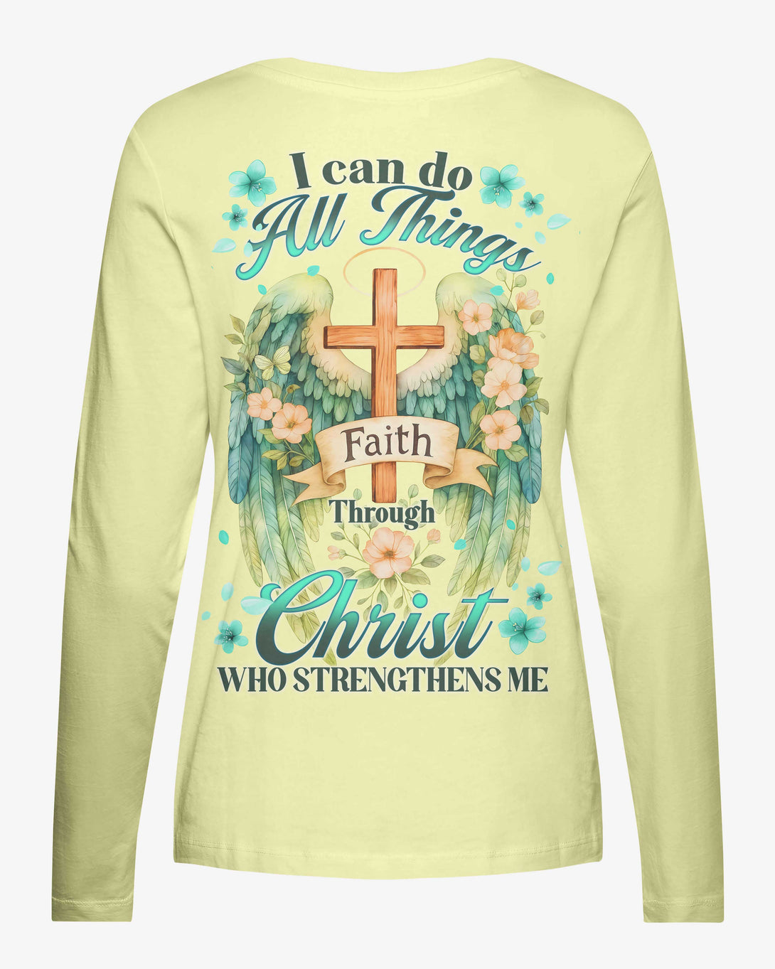 I Can Do All Things Faith Through Christ V-neck Long Sleeves Shirt