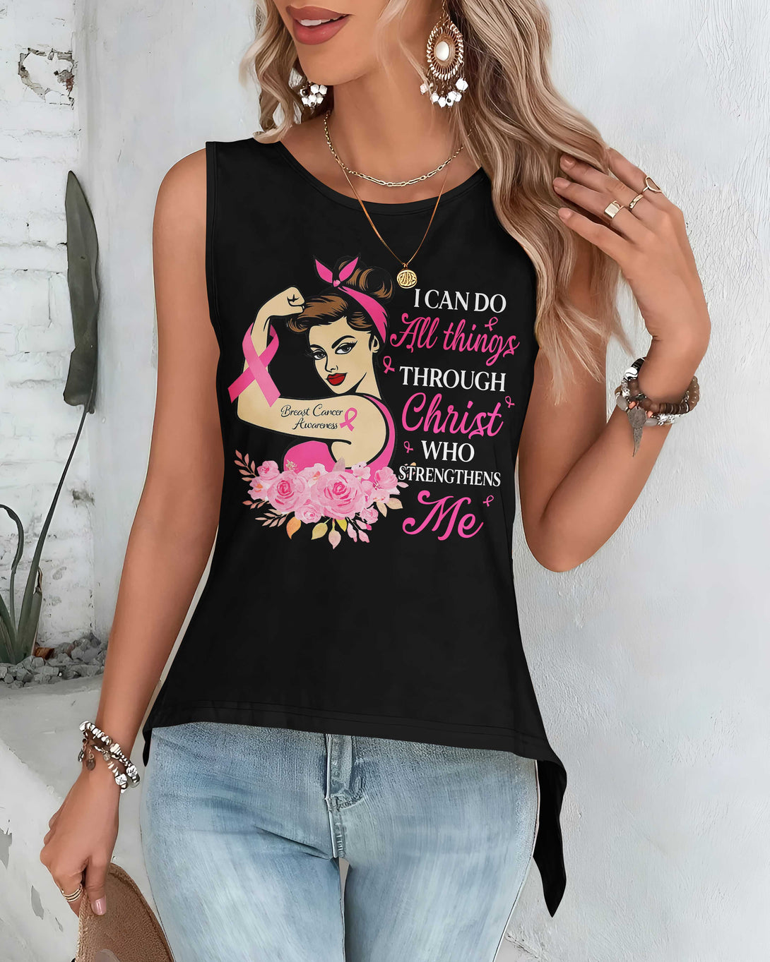 I Can Do All Things Through Christ Crop Out Wrap Back Tank Top