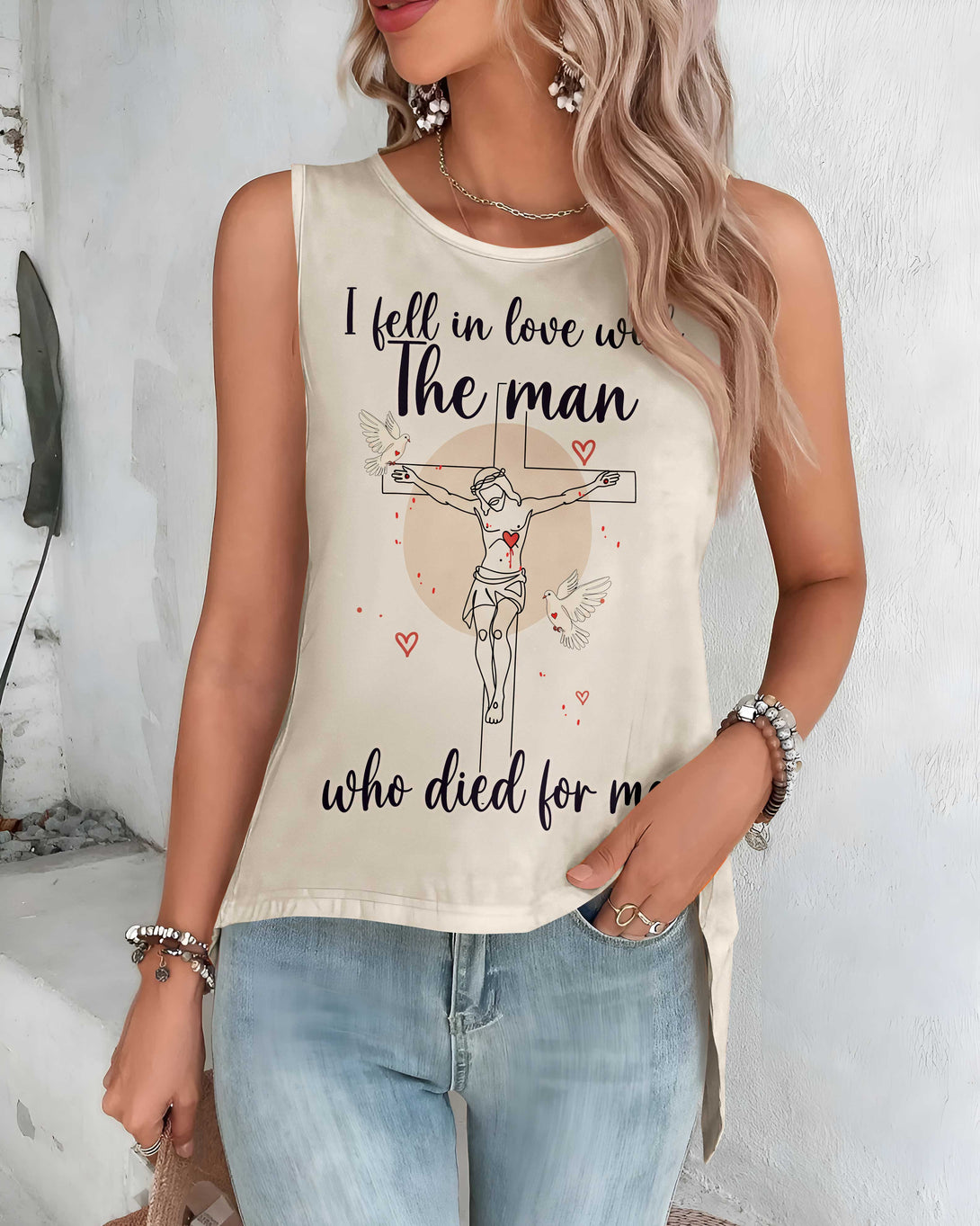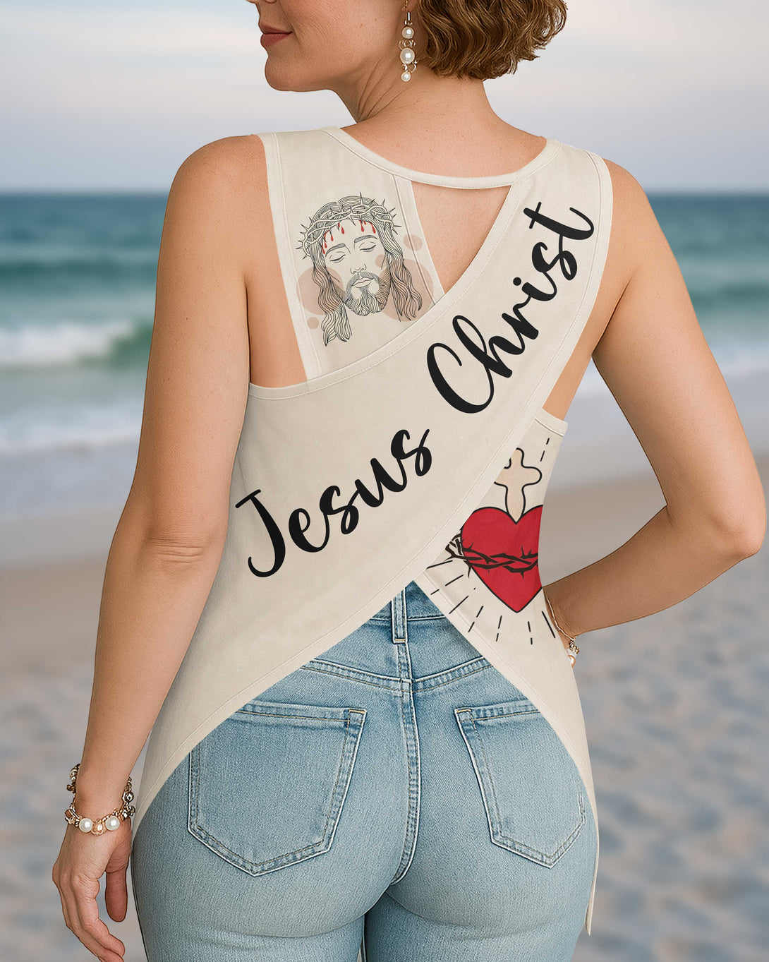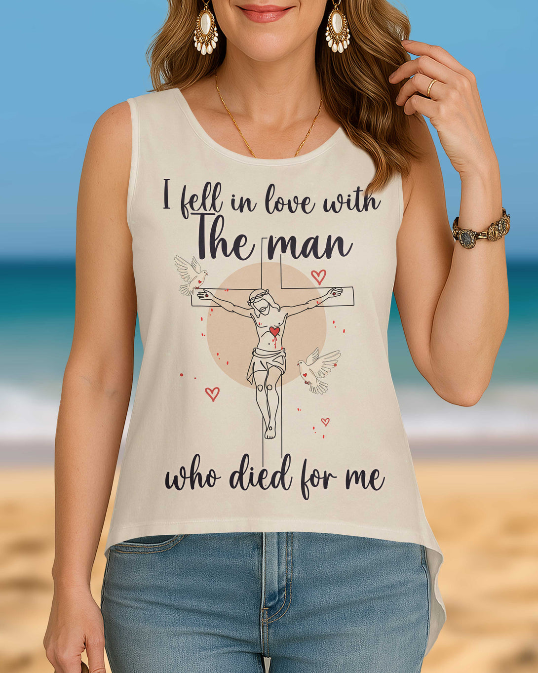I Fell In Love With The Man Who Died For Me All Over Print Crop Out Wrap Back Tank Top
