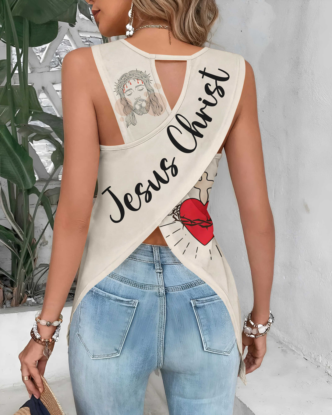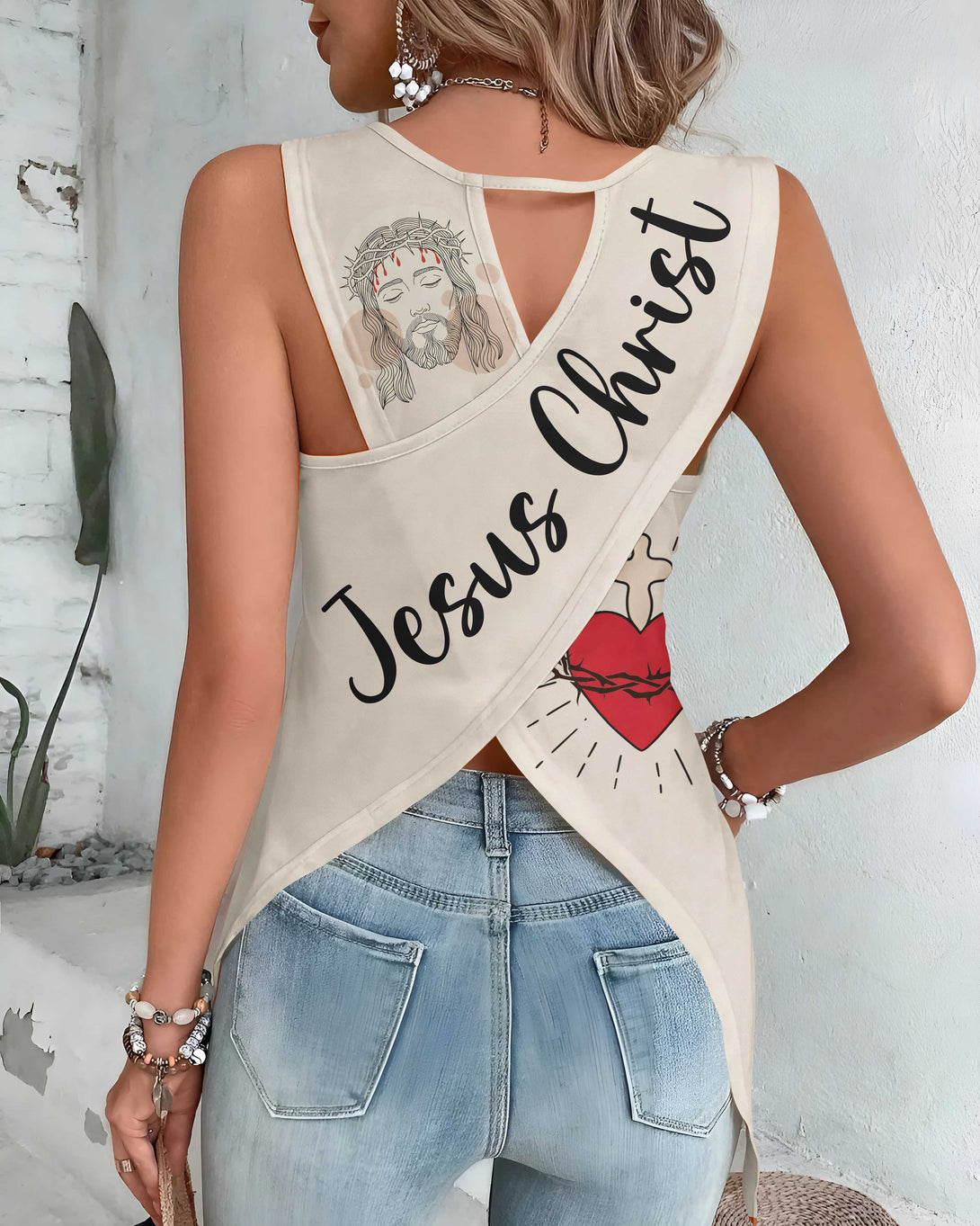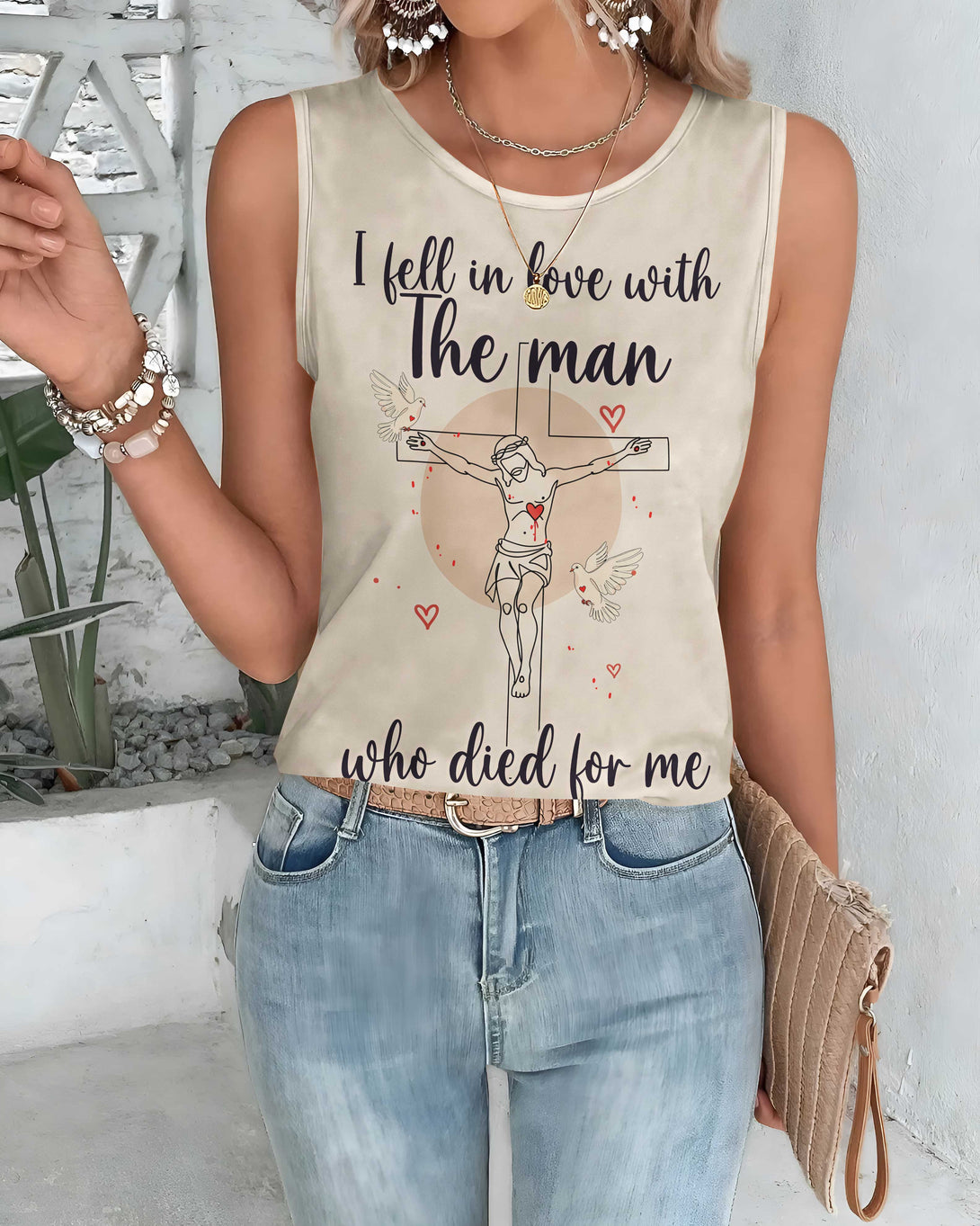 I Fell In Love With The Man Who Died For Me All Over Print Crop Out Wrap Back Tank Top