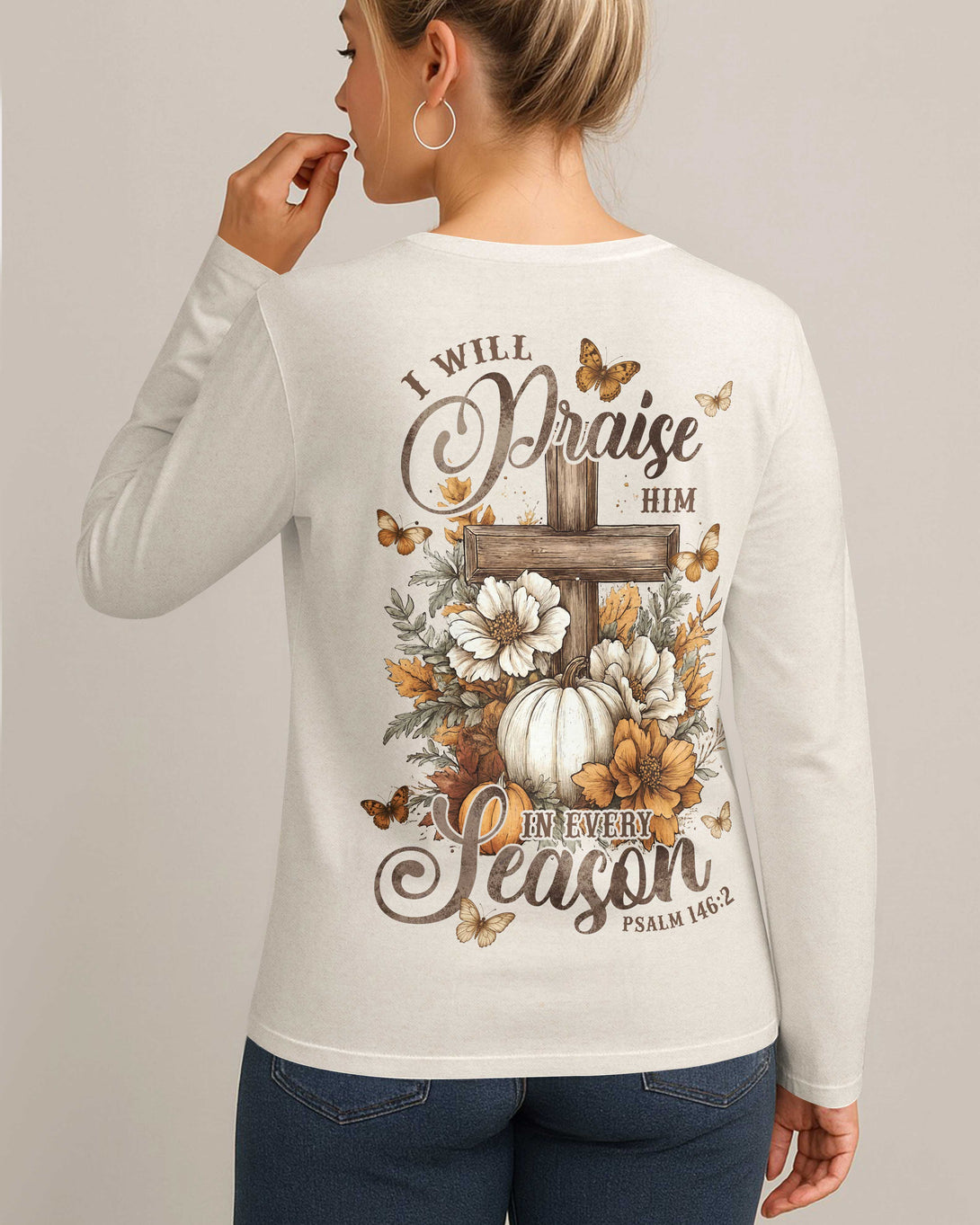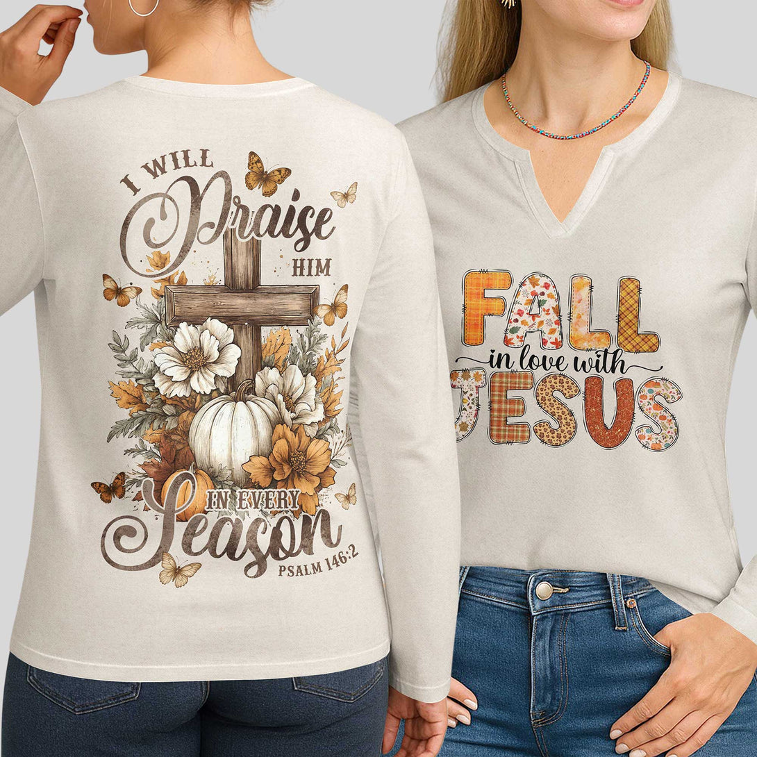 I Will Praise Him In Every Season V-neck Long Sleeves Shirt