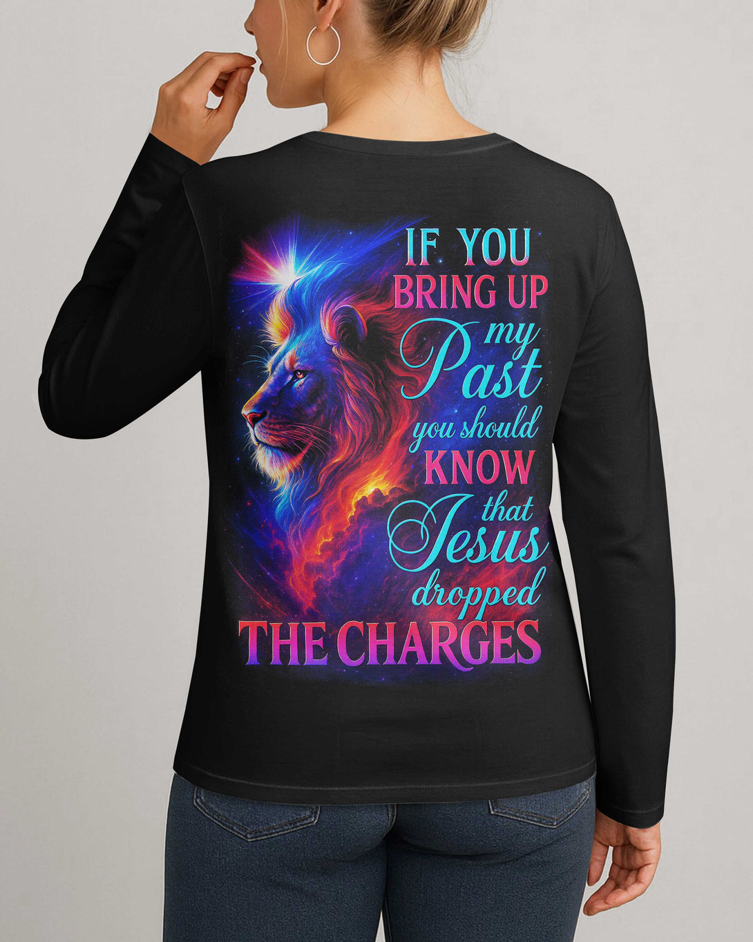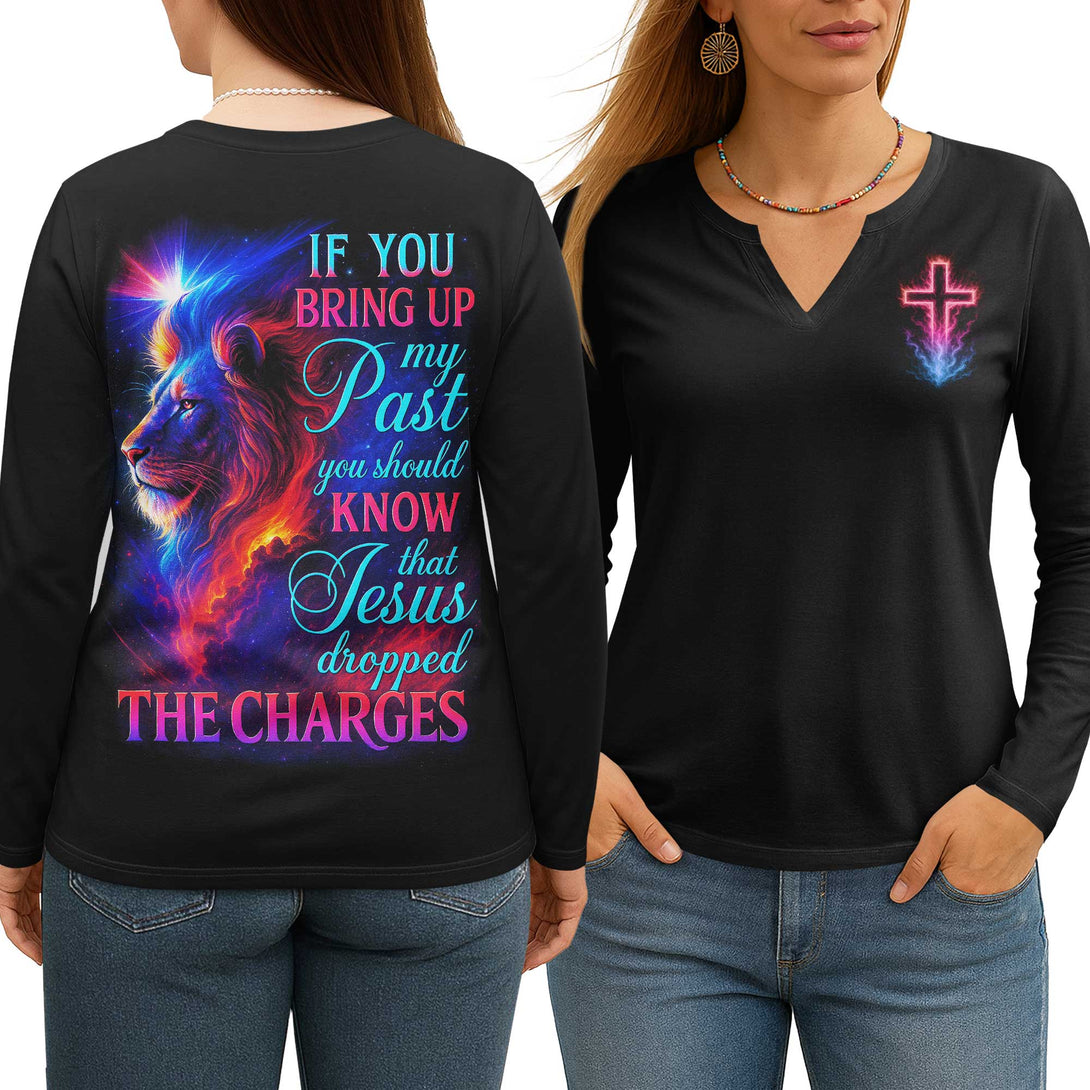 If You Bring Up My Past You Should Know That Jesus Dropped The Charges All Over Print V-neck Long Sleeves Shirt