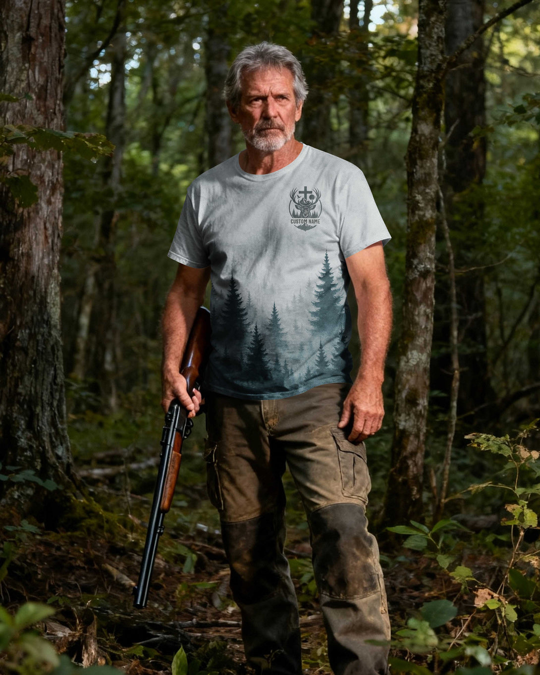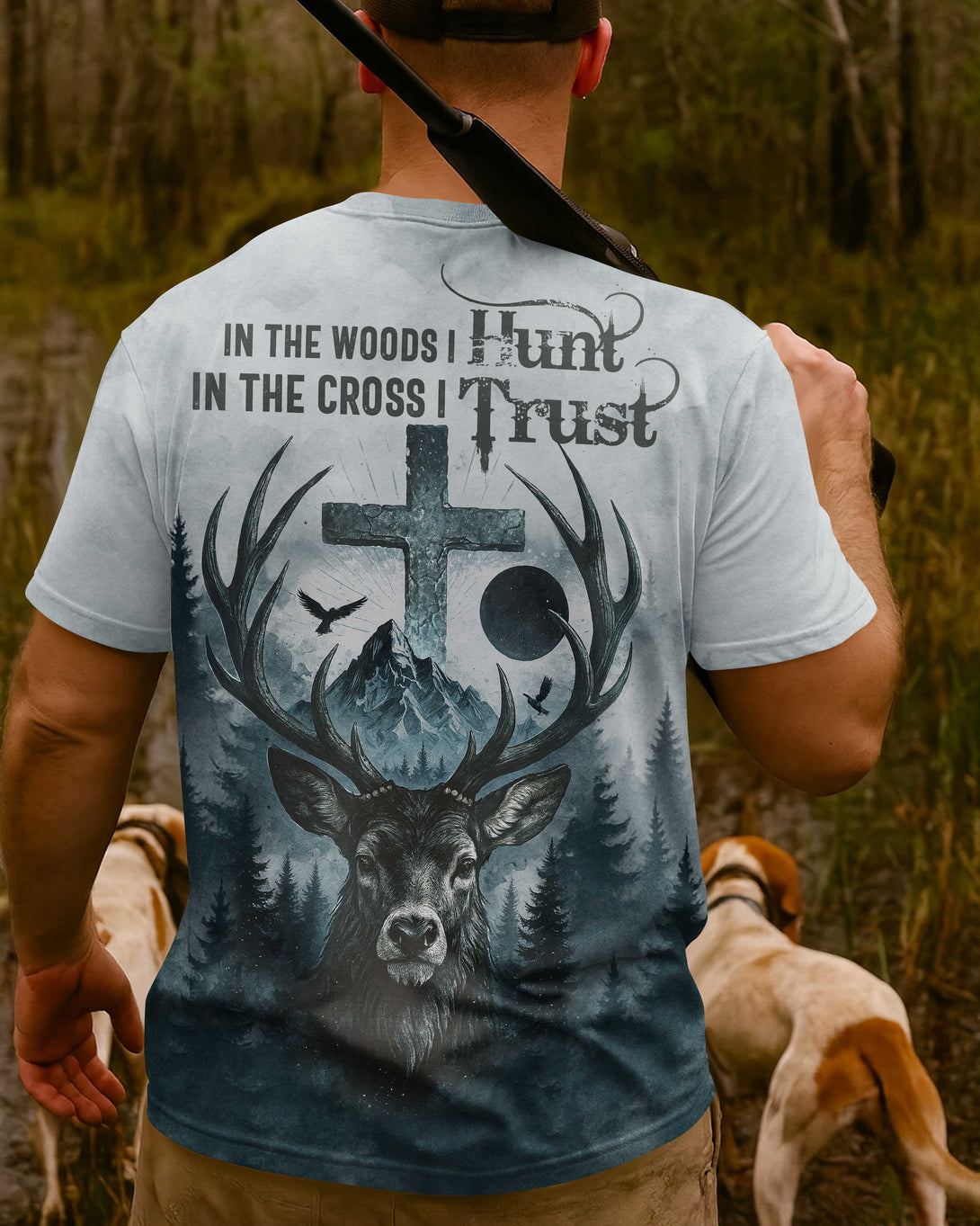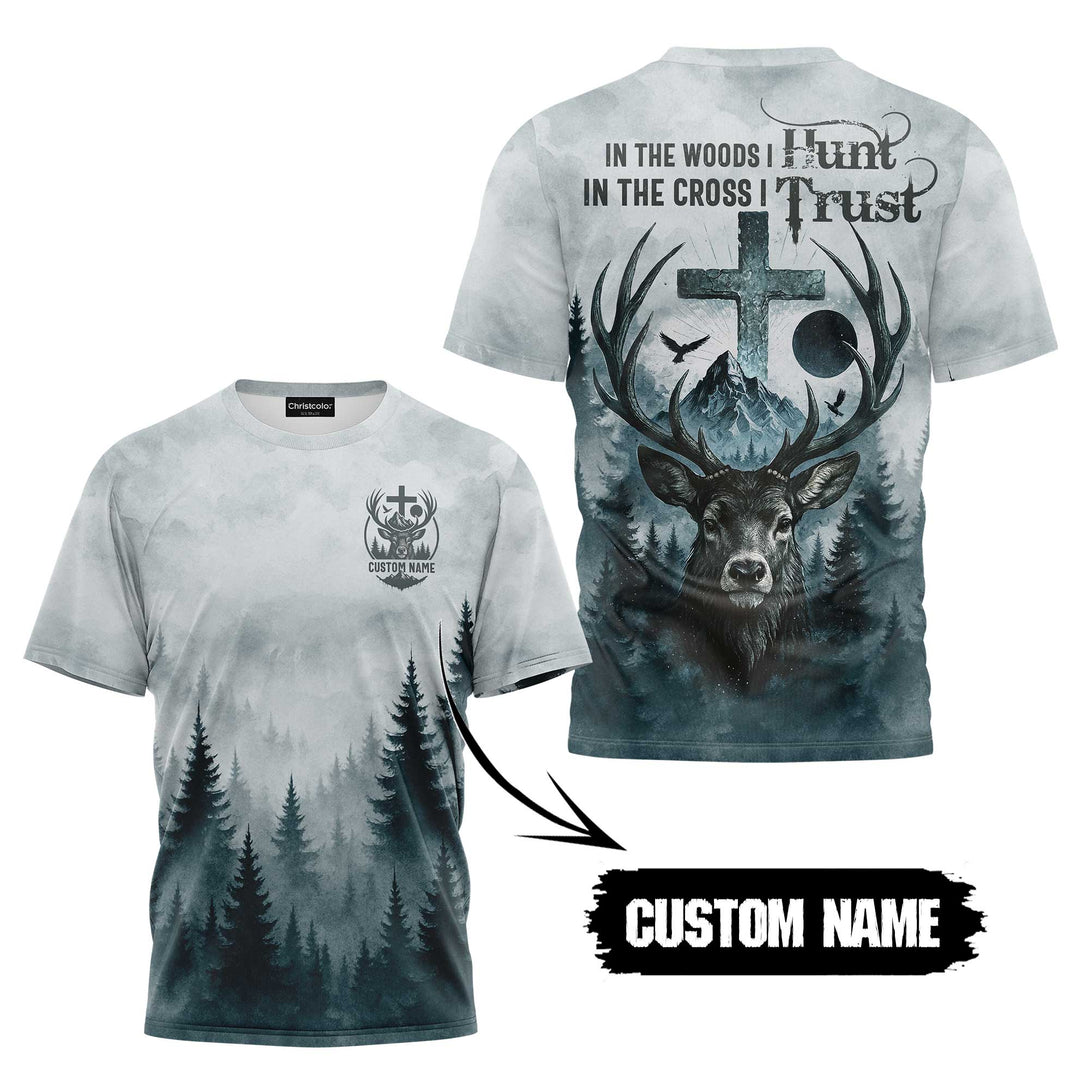 In the Woods I Hunt In the Cross I Trust Custom Name Custom Name T-Shirt