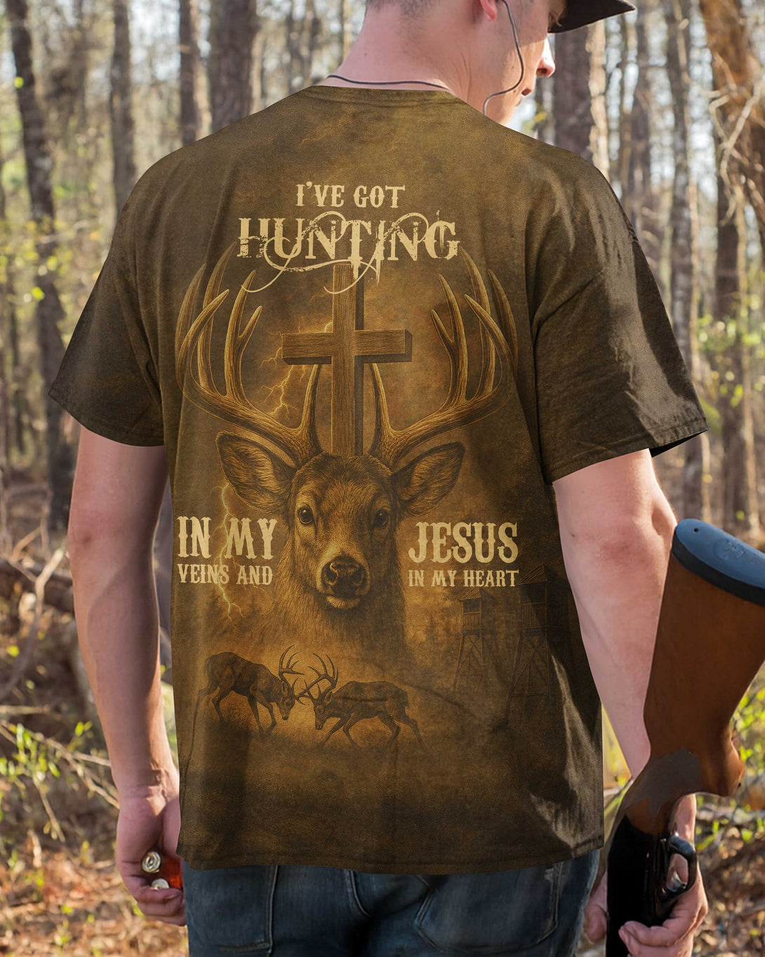 I've Got Hunting In My Veins And Jesus In My Heart All Over Print T-Shirt