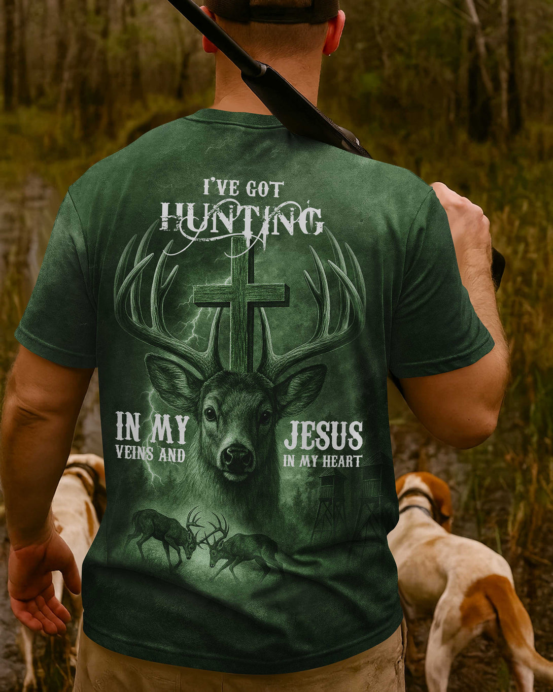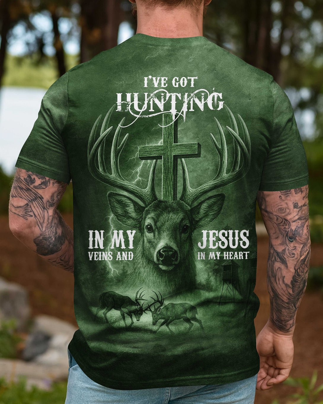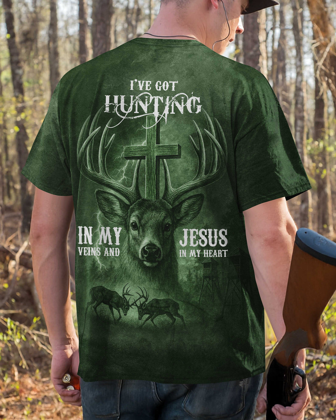 I've Got Hunting In My Veins And Jesus In My Heart Green Shirt