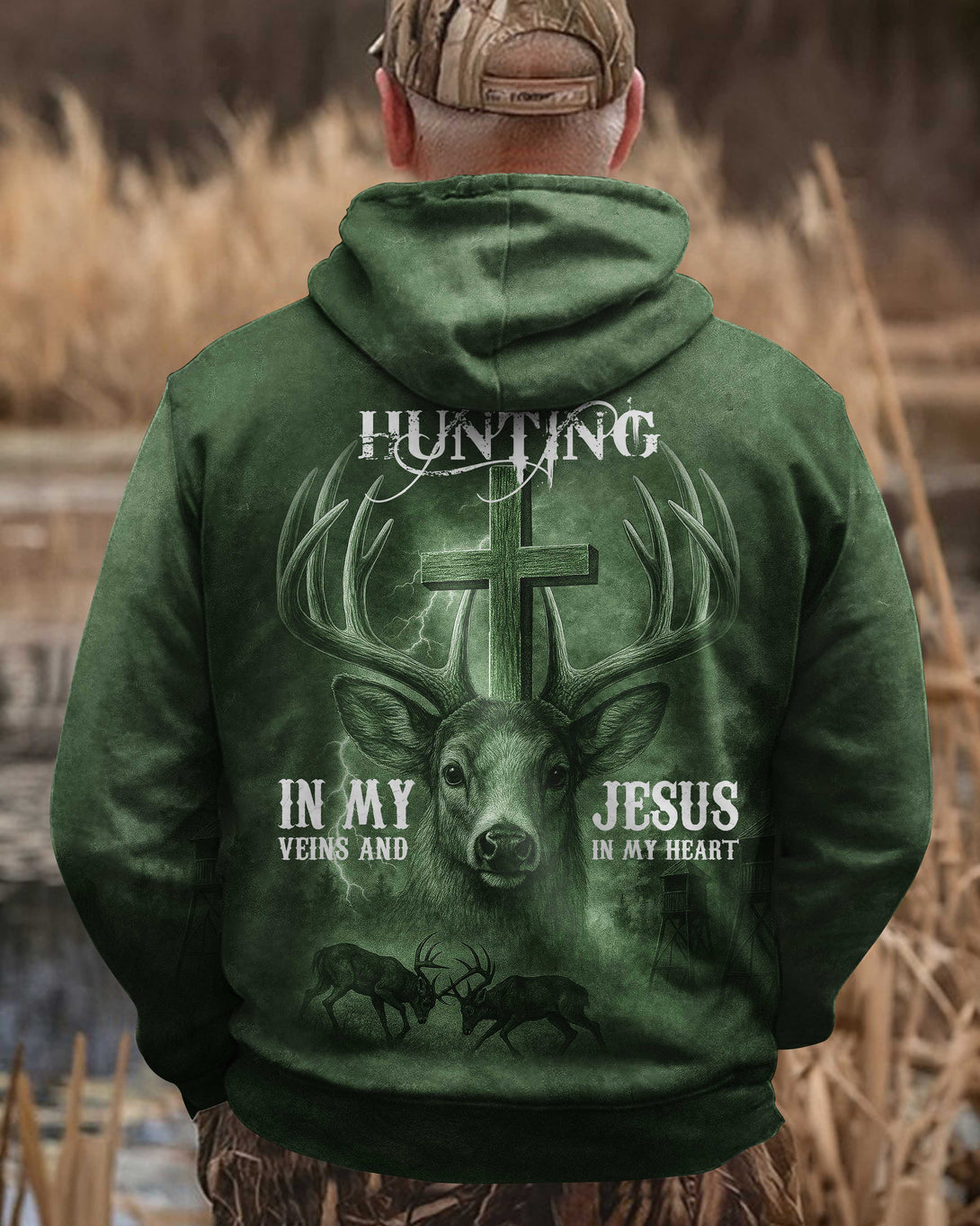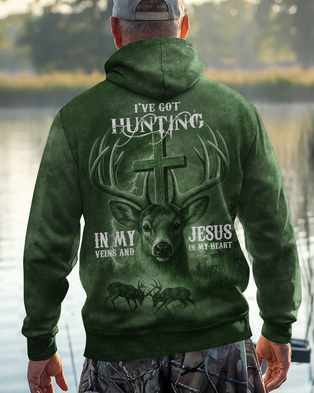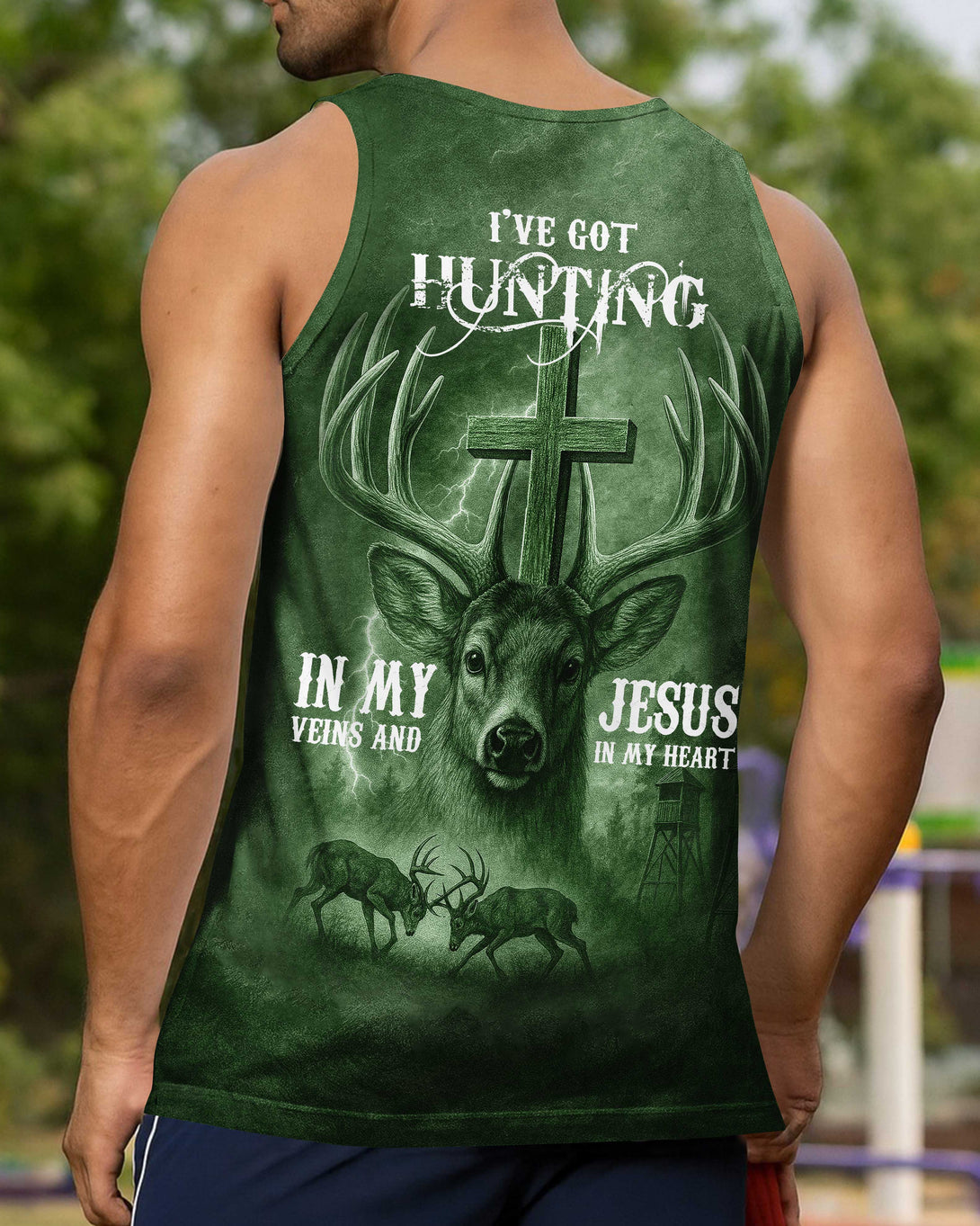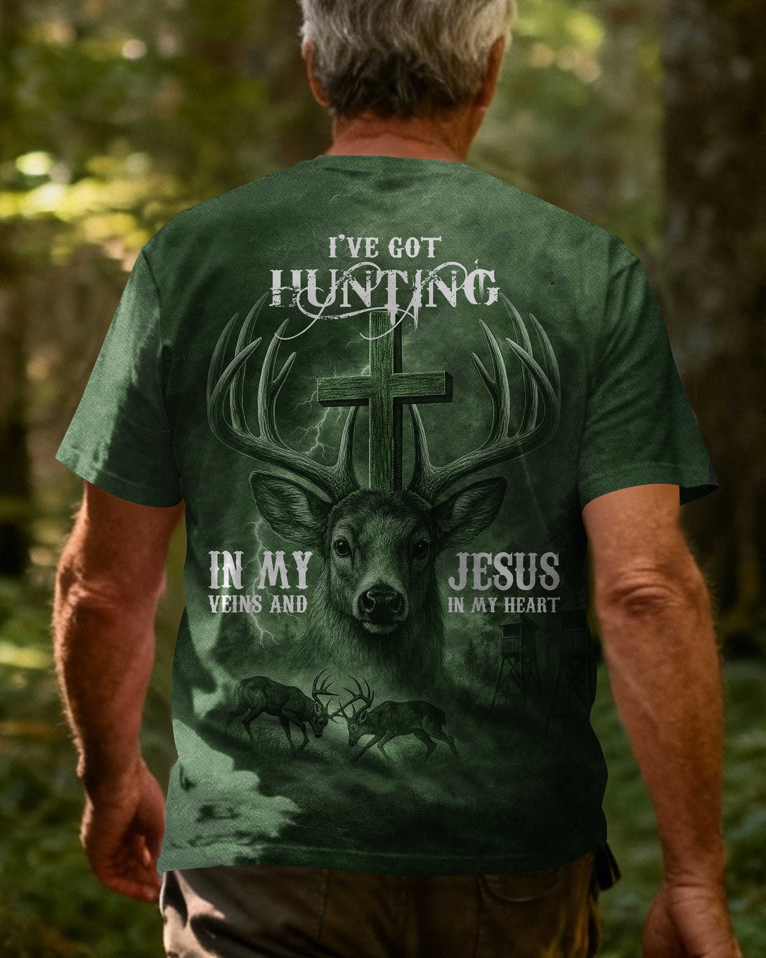 I've Got Hunting In My Veins And Jesus In My Heart Green Shirt