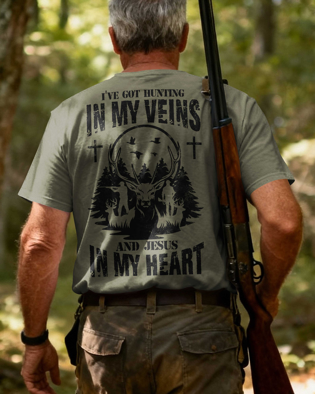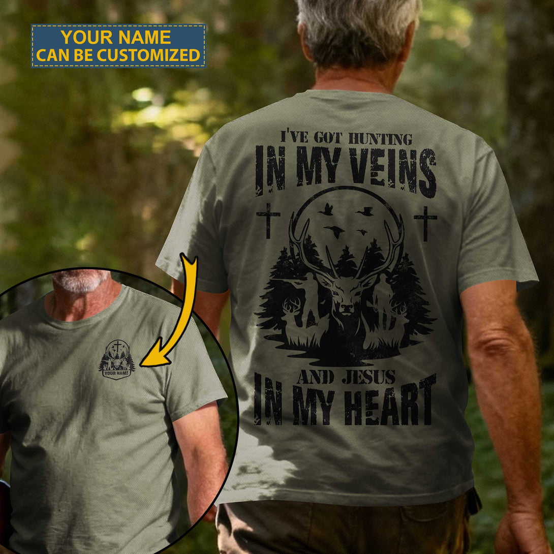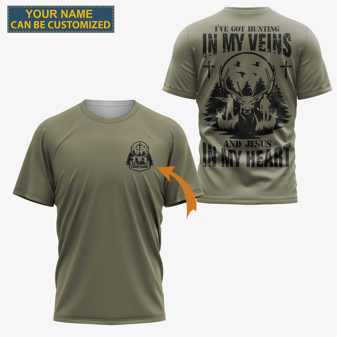 I've Got Hunting In My Veins And Jesus In My Heart Custom Name T-Shirt