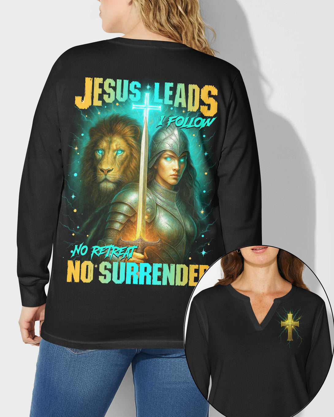 Jesus Leads I Follow All Over Print V-neck Long Sleeves Shirt