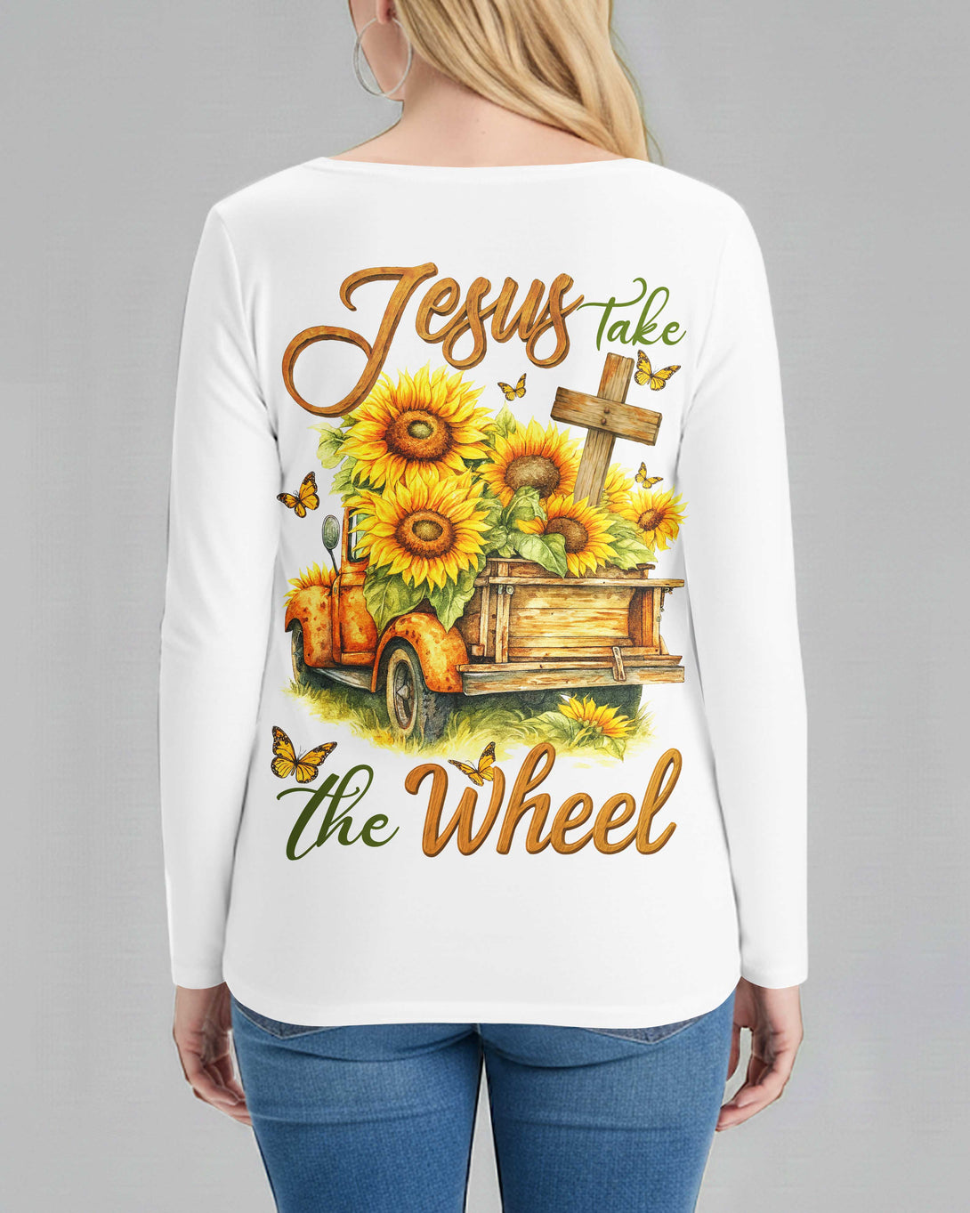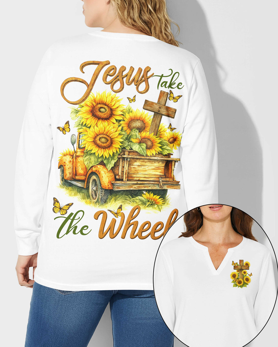 Jesus Take The Wheel All Over Print V-neck Long Sleeves Shirt