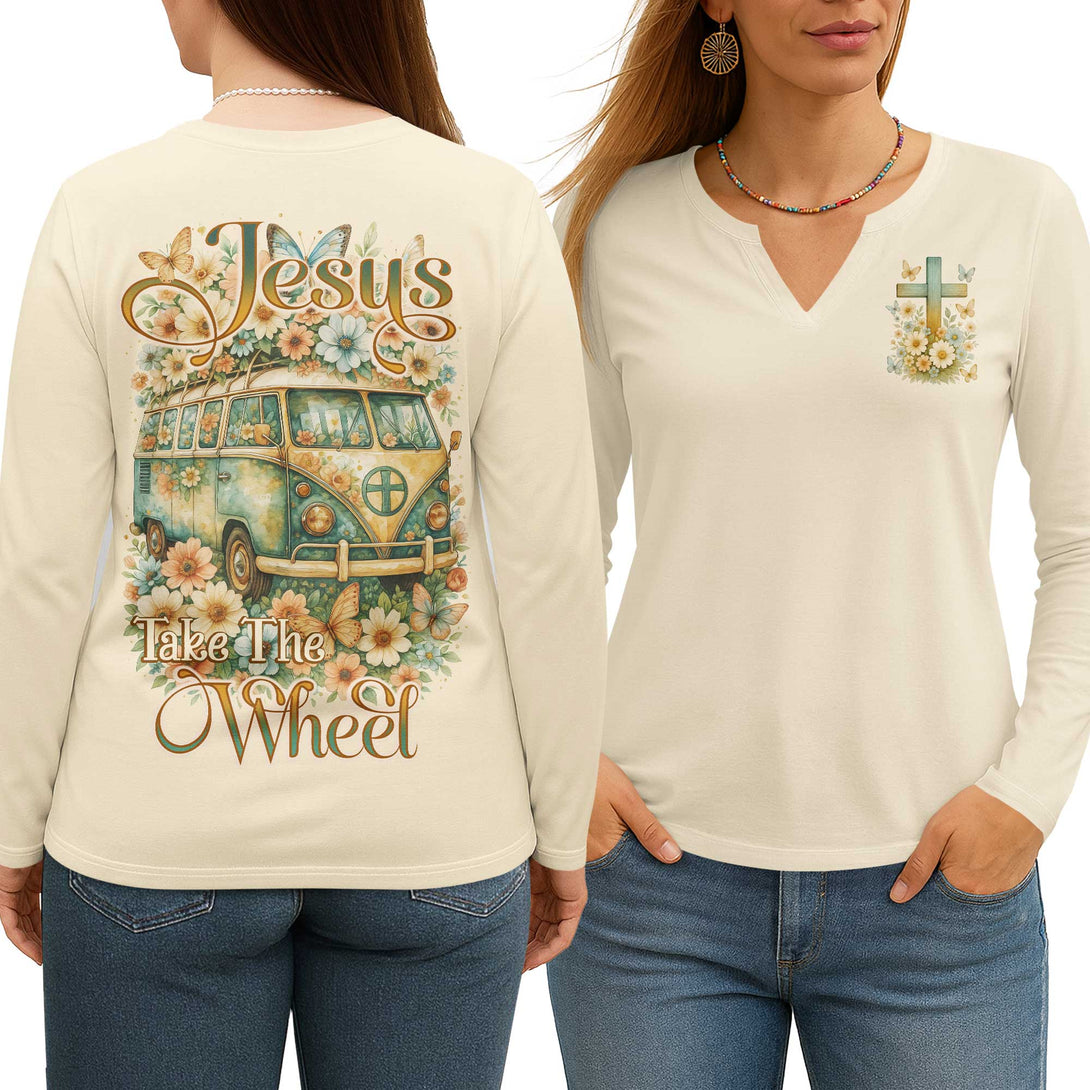 Jesus Take The Wheel All Over Print V-neck Long Sleeves Shirt