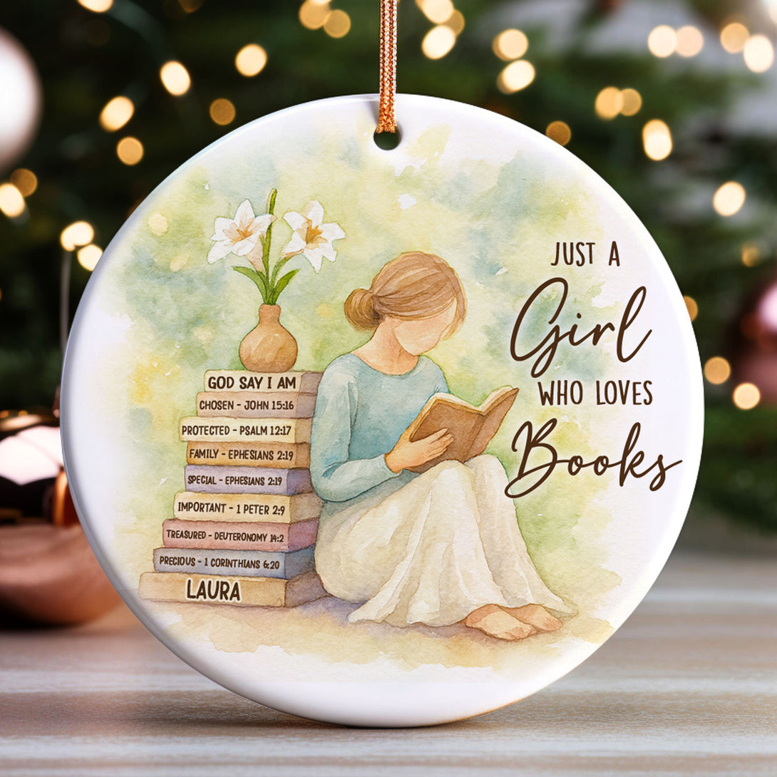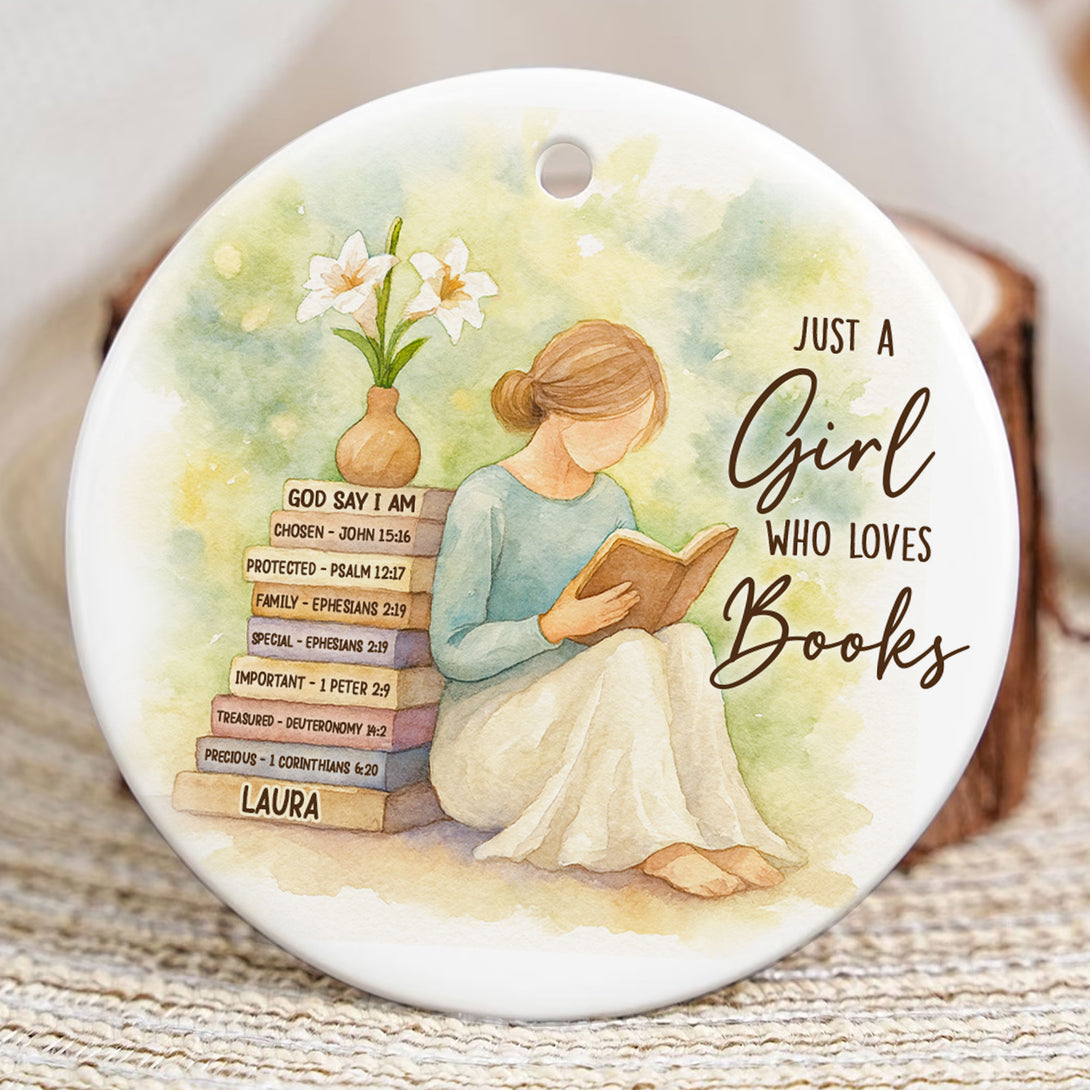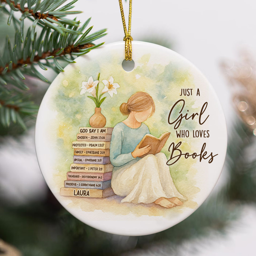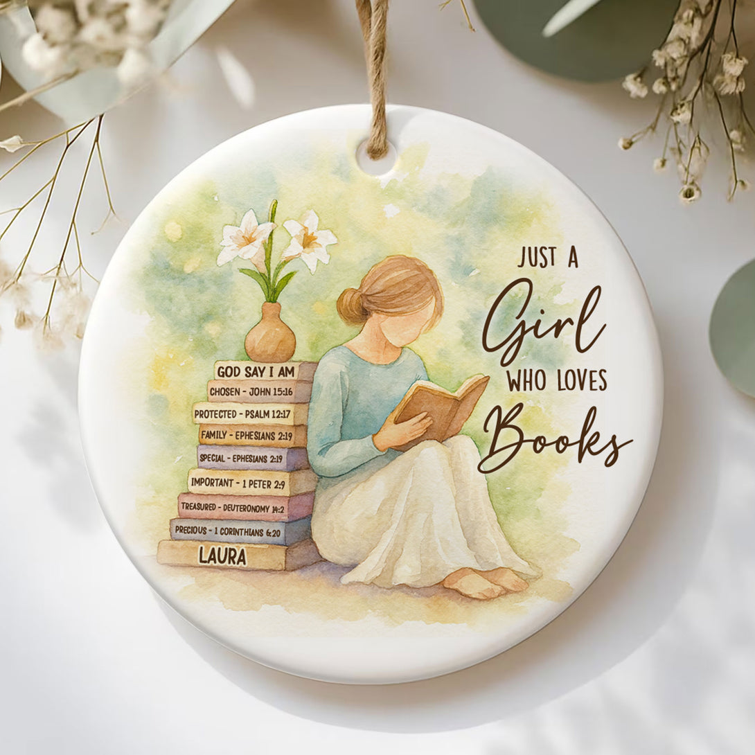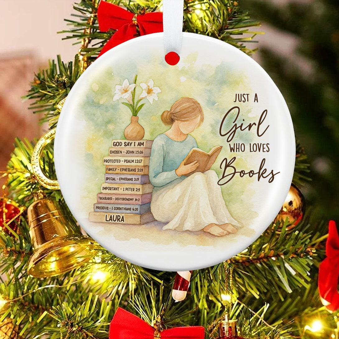 Just A Christian Girl Who Loves Books Personalized Ceramic Ornament, Custom Name Gift